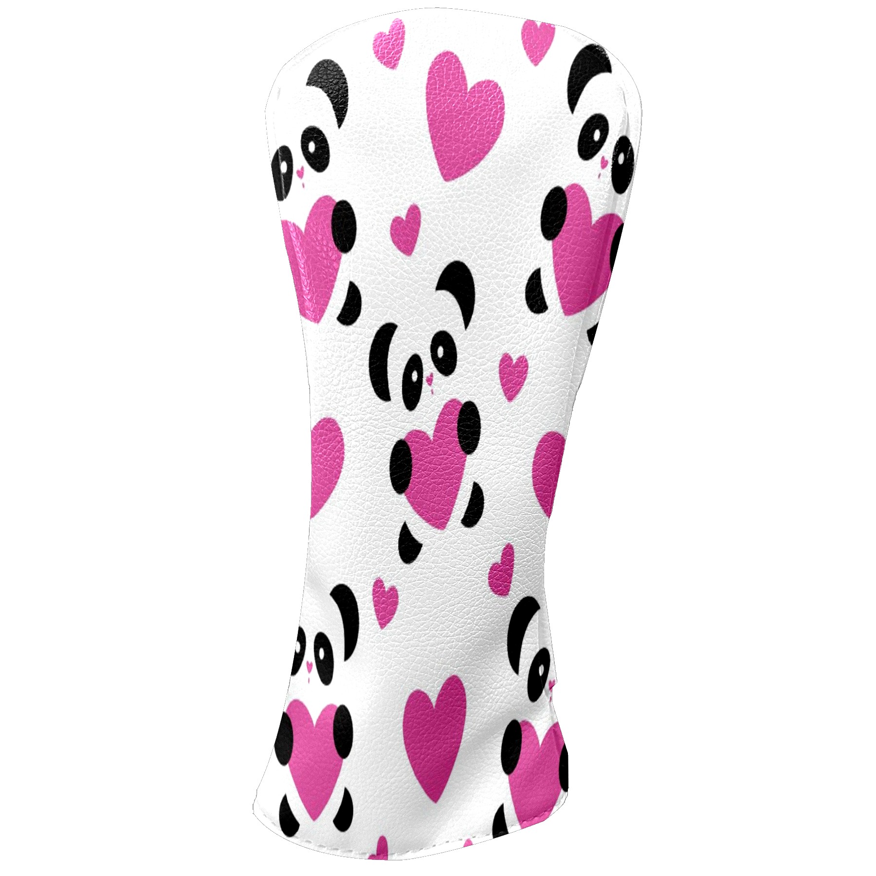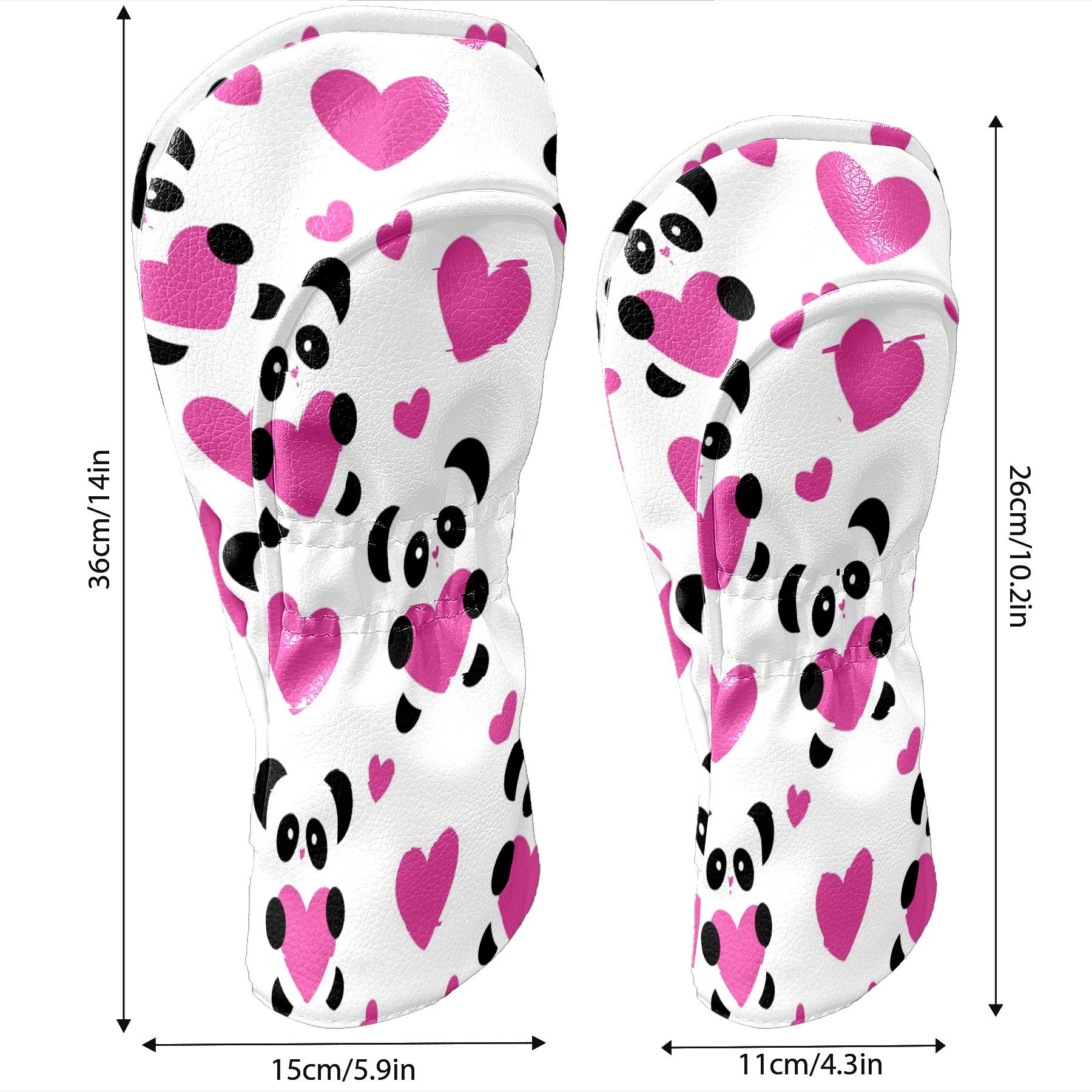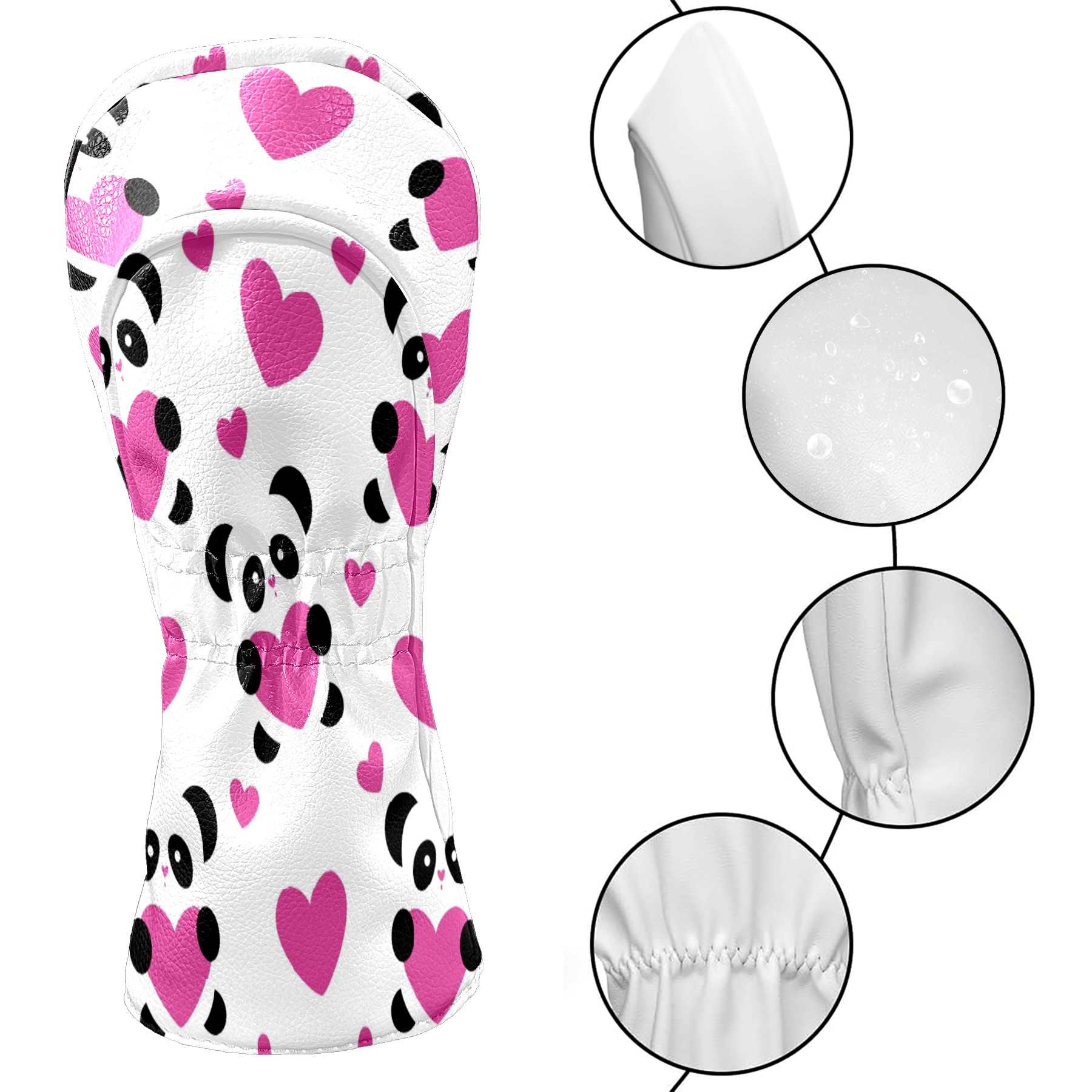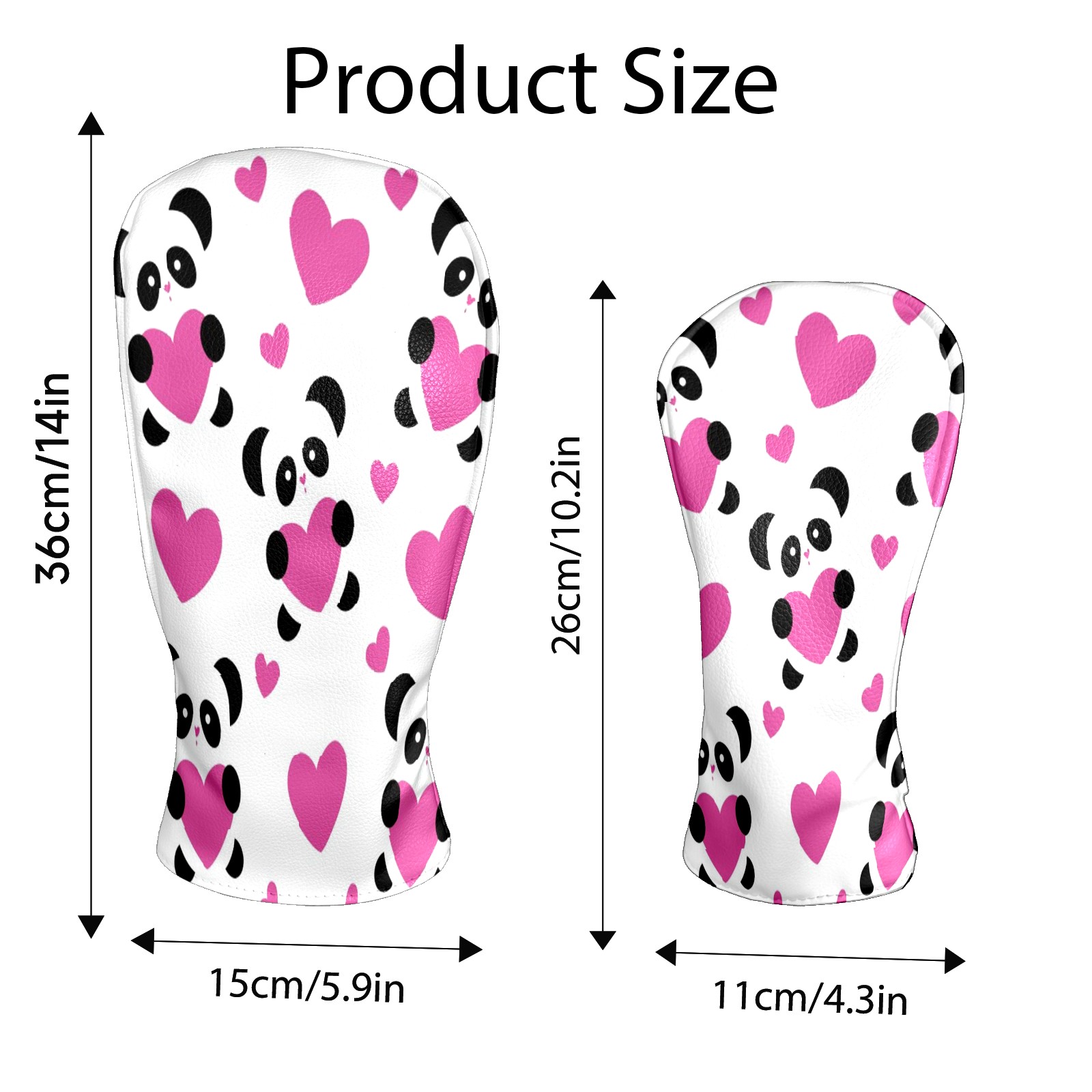 Golf Head Covers Driver Club Head Cover for Drivers Fairway Woods and Hybrid Clubs, PU Leather Golf Club Head Covers for Men and Women Cartoon Panda Red Love Heart