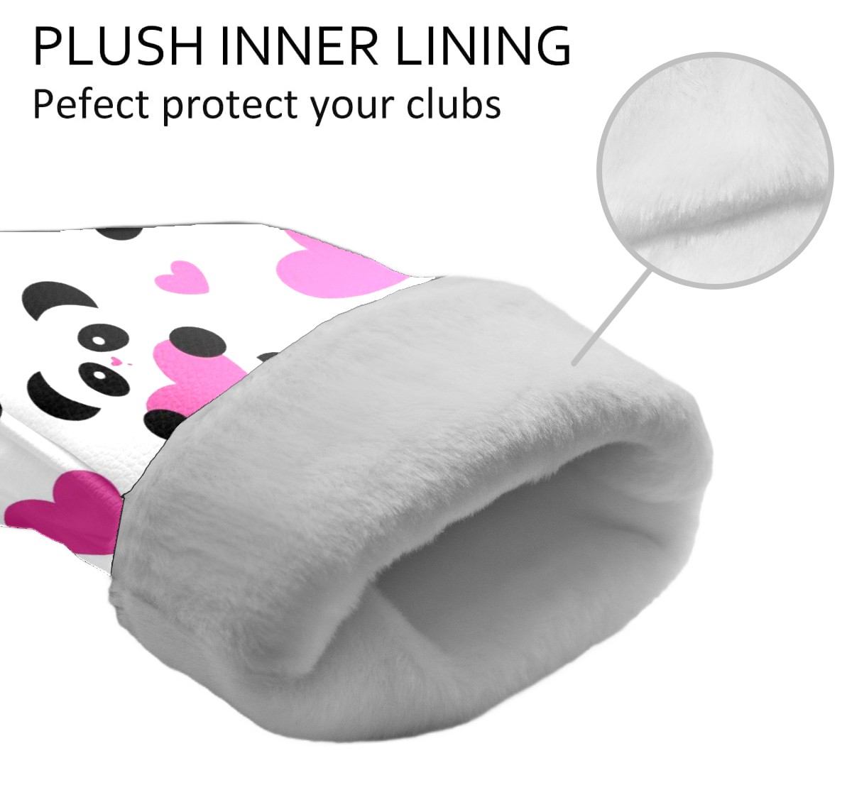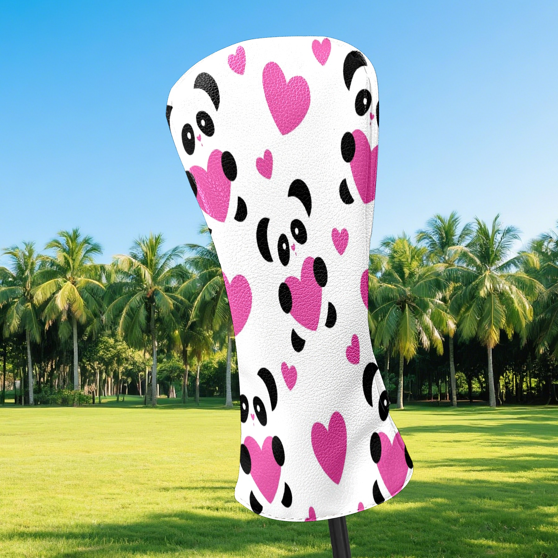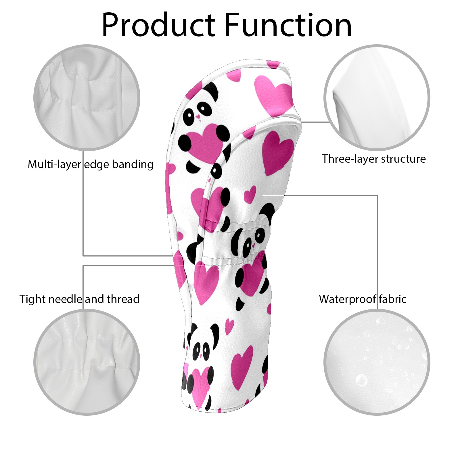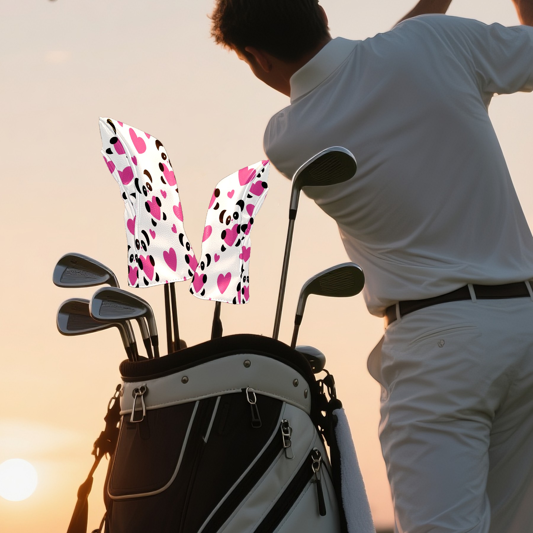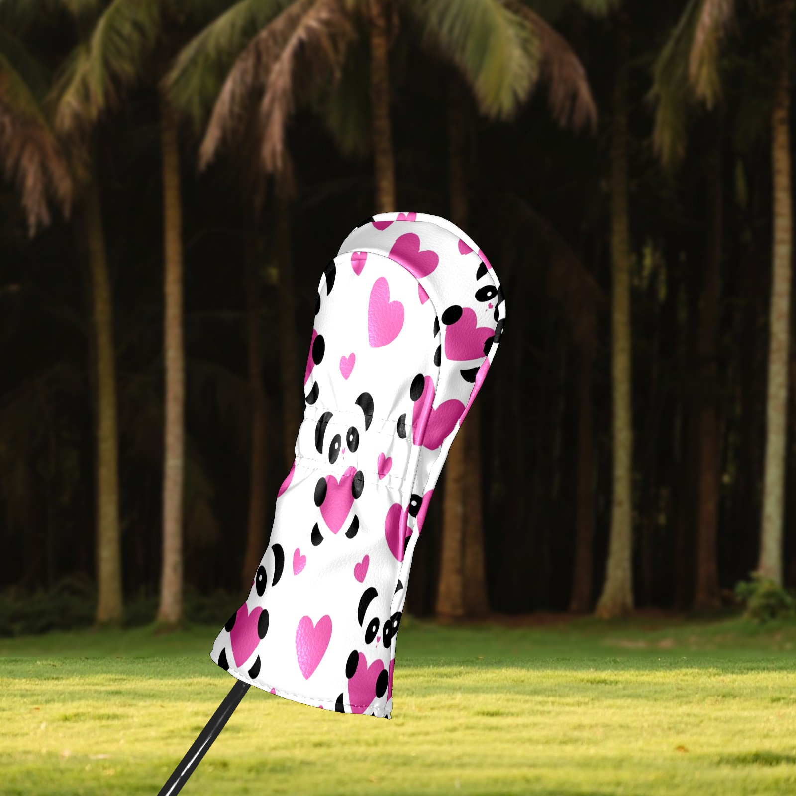 Golf Head Covers Driver Club Head Cover for Drivers Fairway Woods and Hybrid Clubs, PU Leather Golf Club Head Covers for Men and Women Cartoon Panda Red Love Heart