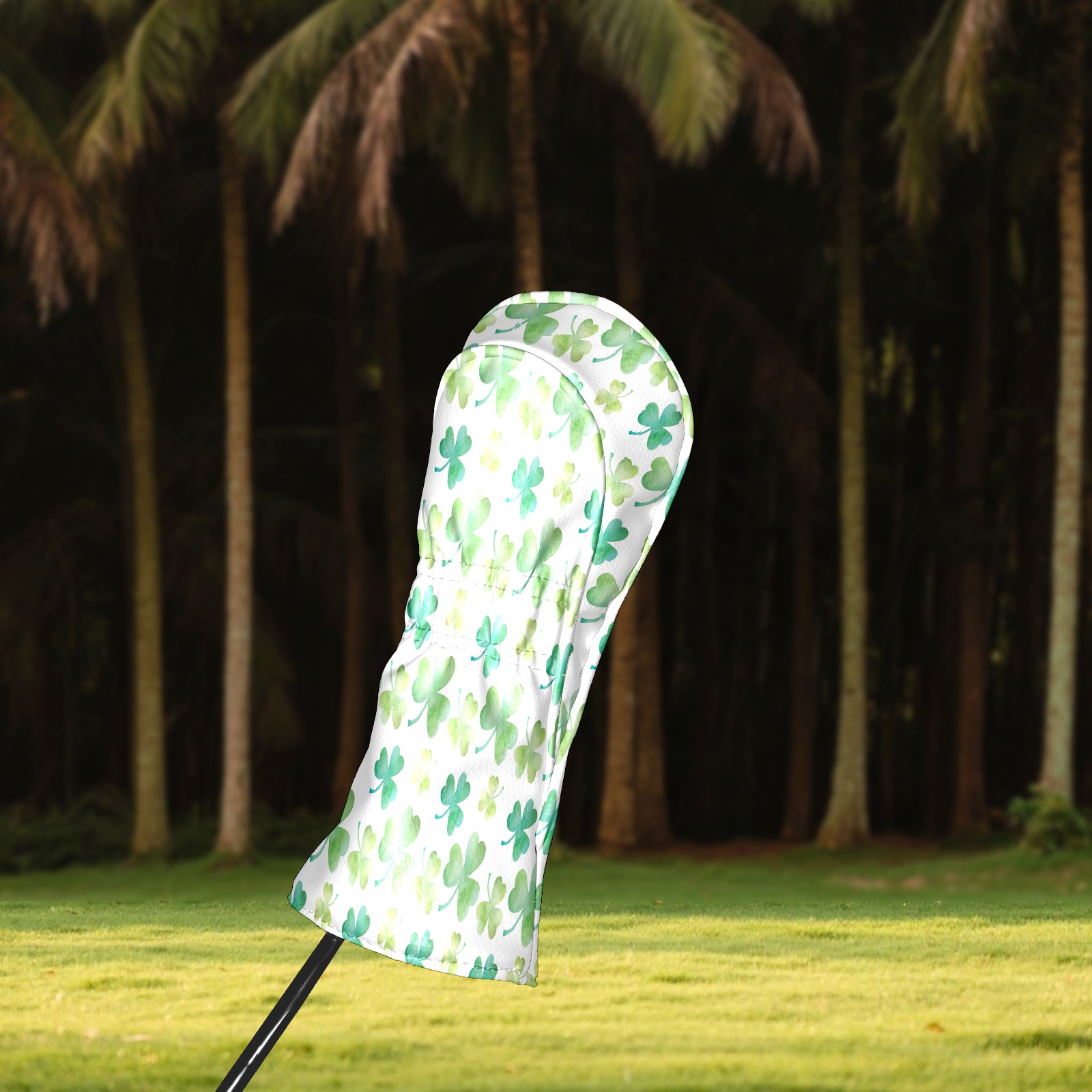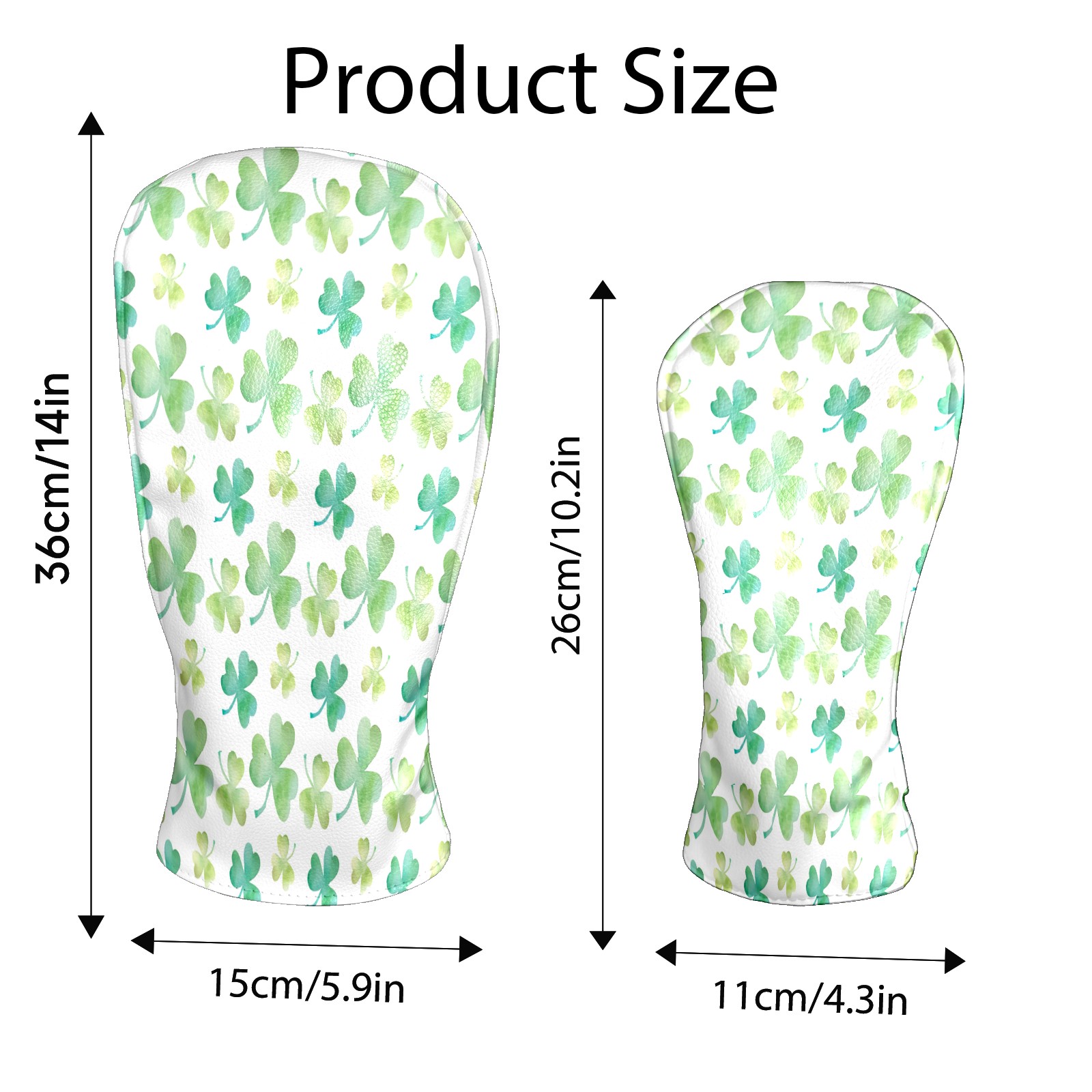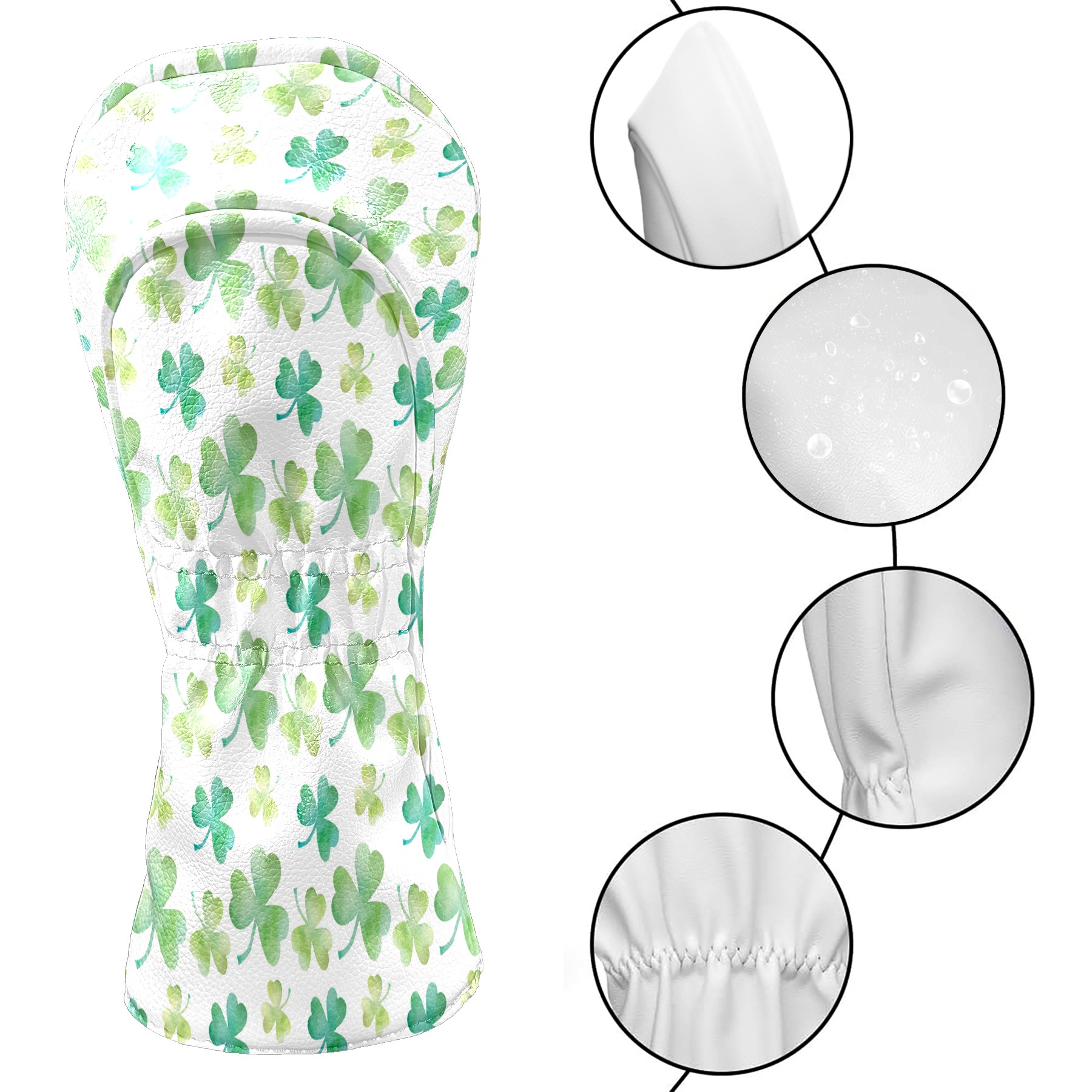 Golf Head Covers Driver Club Head Cover for Drivers Fairway Woods and Hybrid Clubs, PU Leather Golf Club Head Covers for Men and Women Green Clover Watercolor