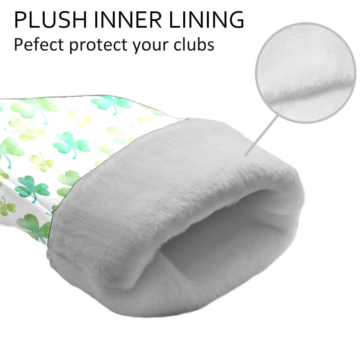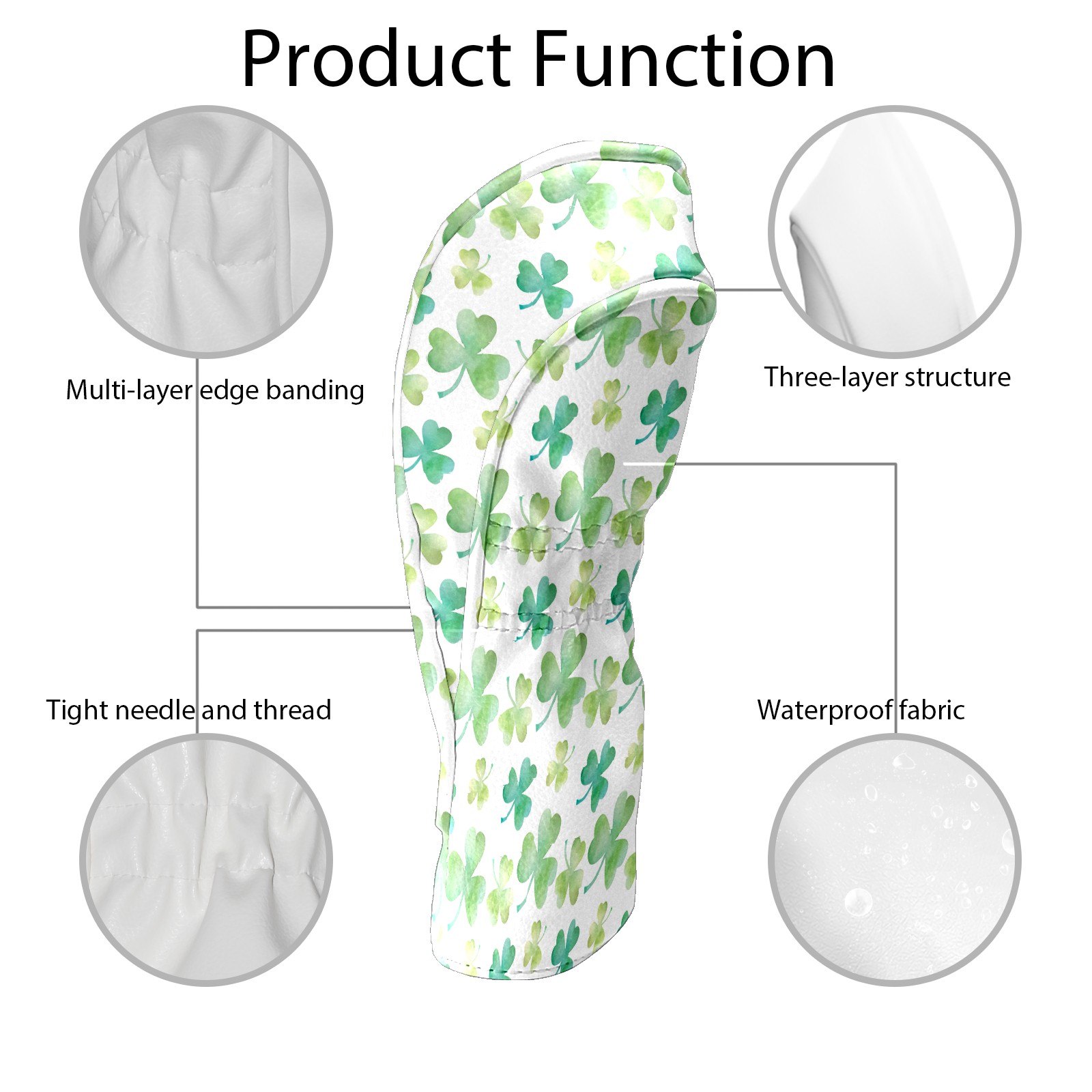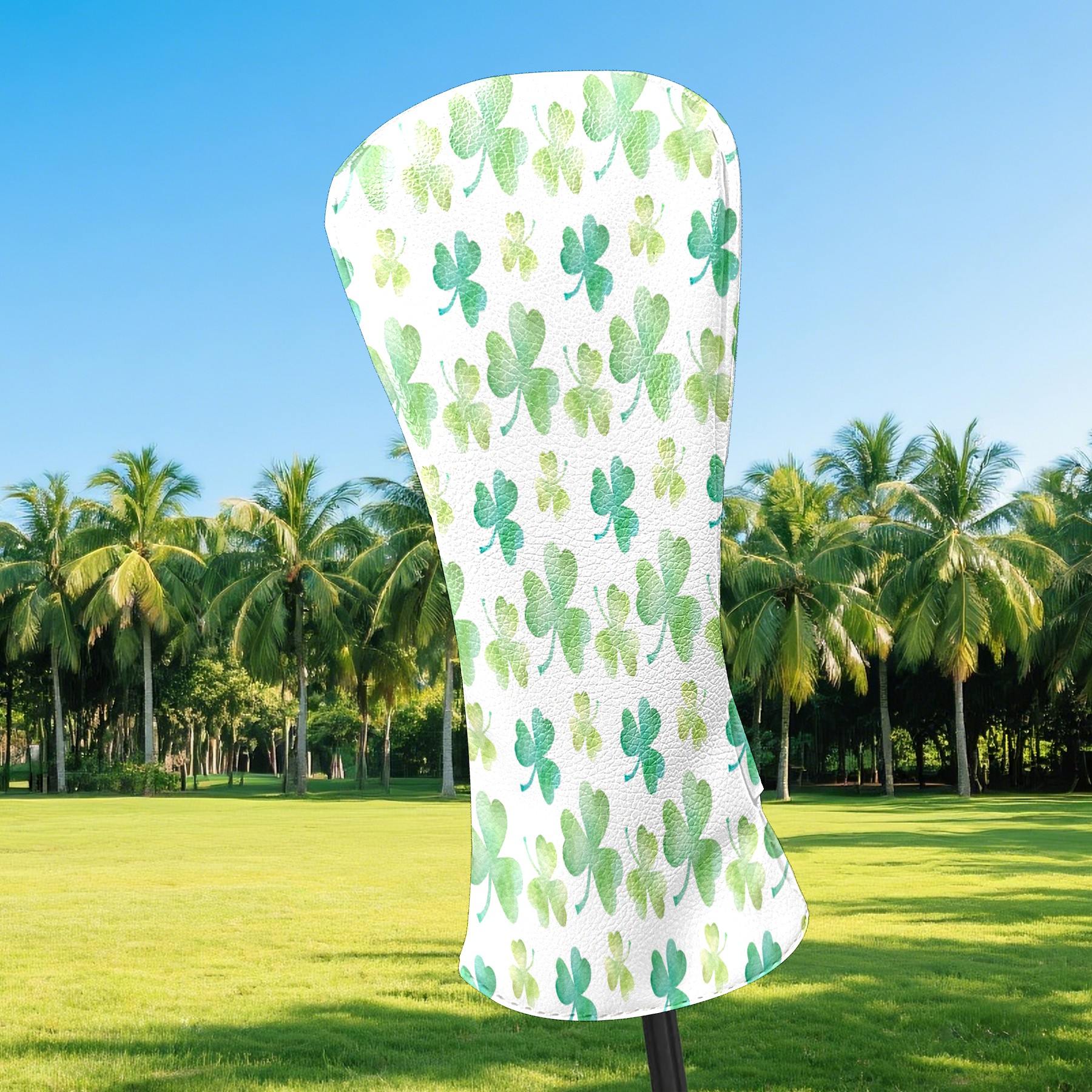 Golf Head Covers Driver Club Head Cover for Drivers Fairway Woods and Hybrid Clubs, PU Leather Golf Club Head Covers for Men and Women Green Clover Watercolor
