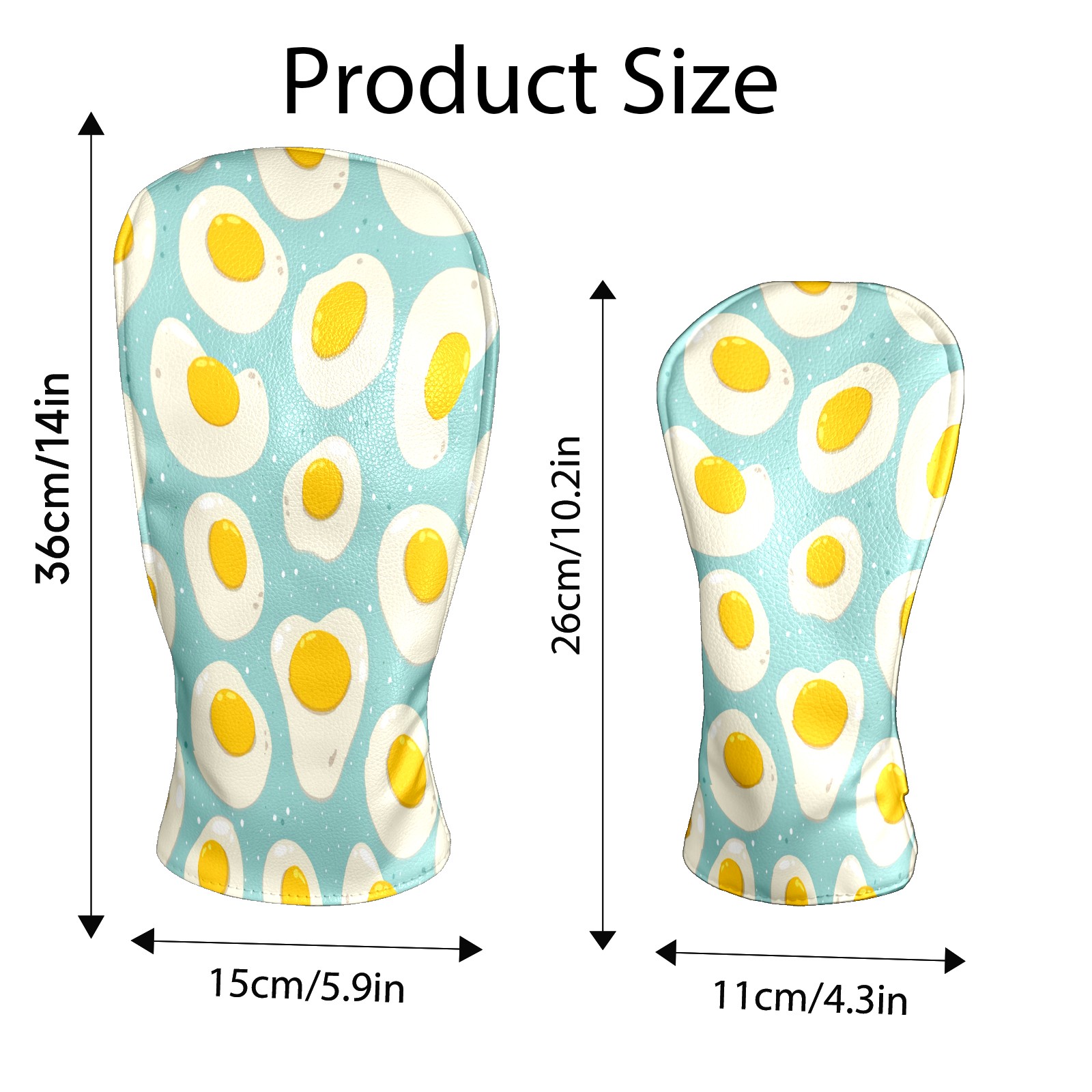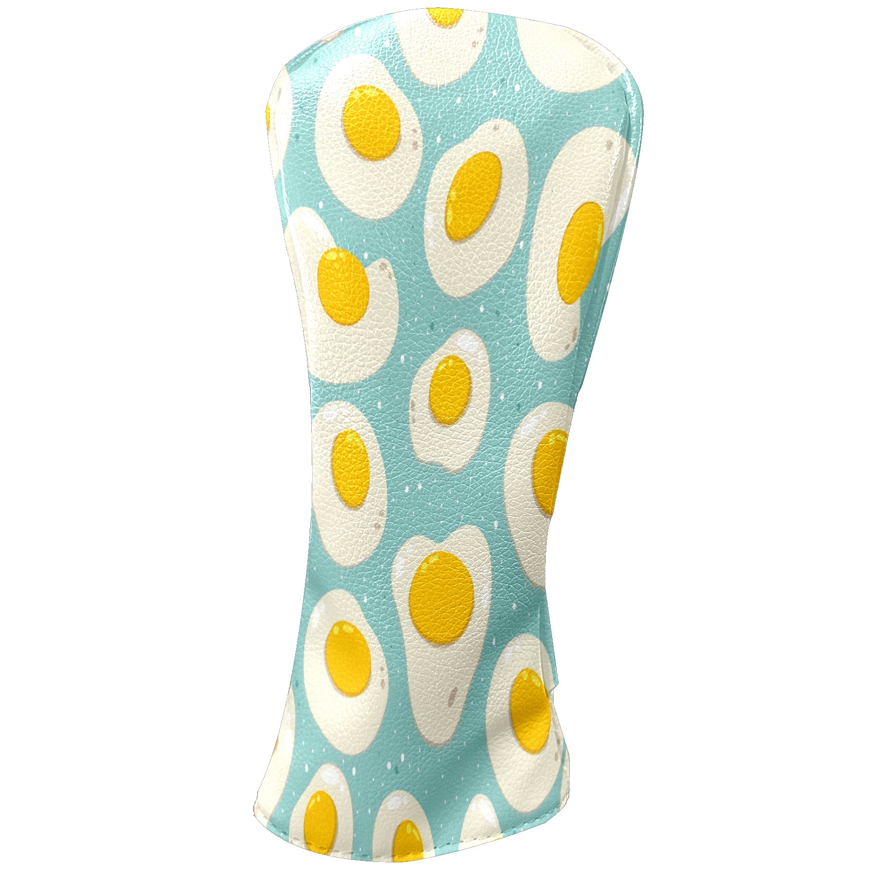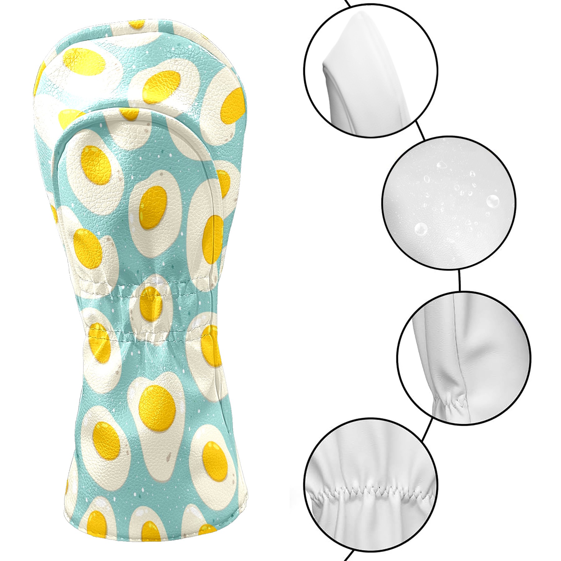 Golf Head Covers Driver Club Head Cover for Drivers Fairway Woods and Hybrid Clubs, PU Leather Golf Club Head Covers for Men and Women Kawaii Eggs Food