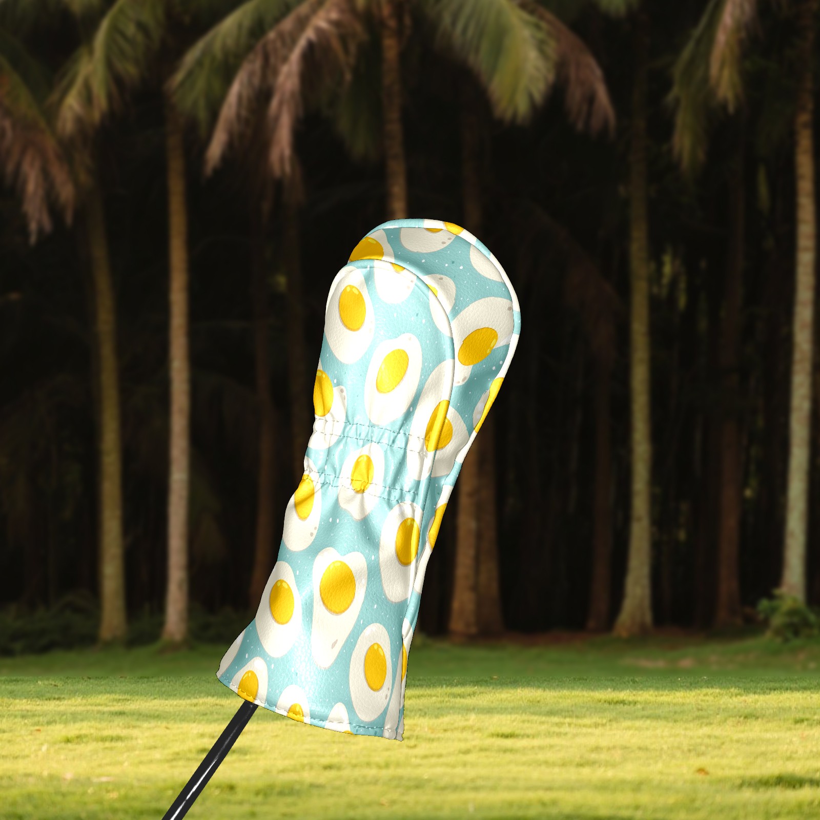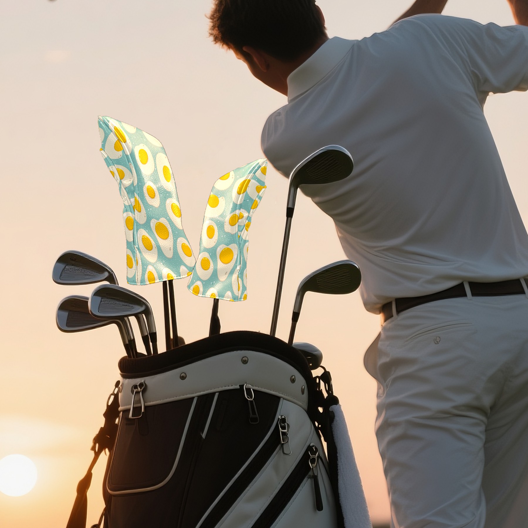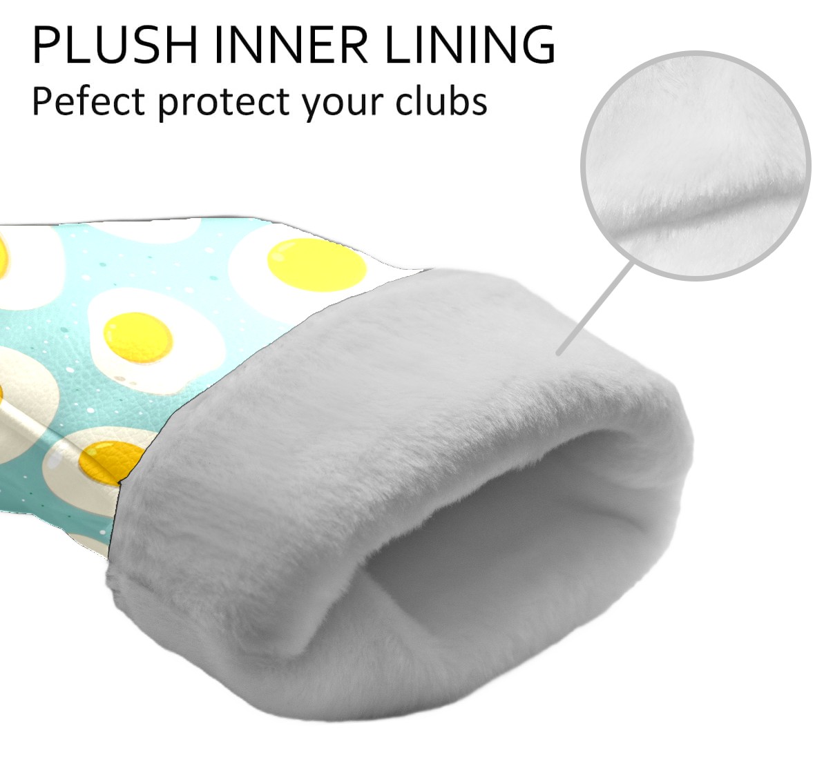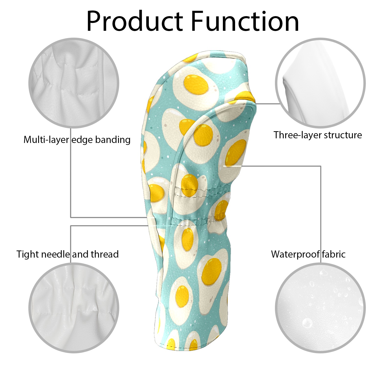 Golf Head Covers Driver Club Head Cover for Drivers Fairway Woods and Hybrid Clubs, PU Leather Golf Club Head Covers for Men and Women Kawaii Eggs Food