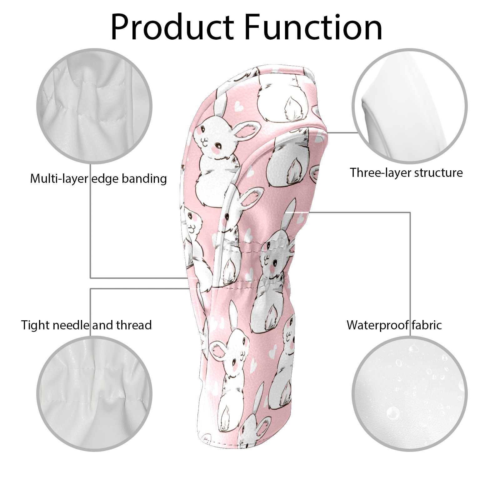 Golf Head Covers Driver Club Head Cover for Drivers Fairway Woods and Hybrid Clubs, PU Leather Golf Club Head Covers for Men and Women Cartoon Rabbit