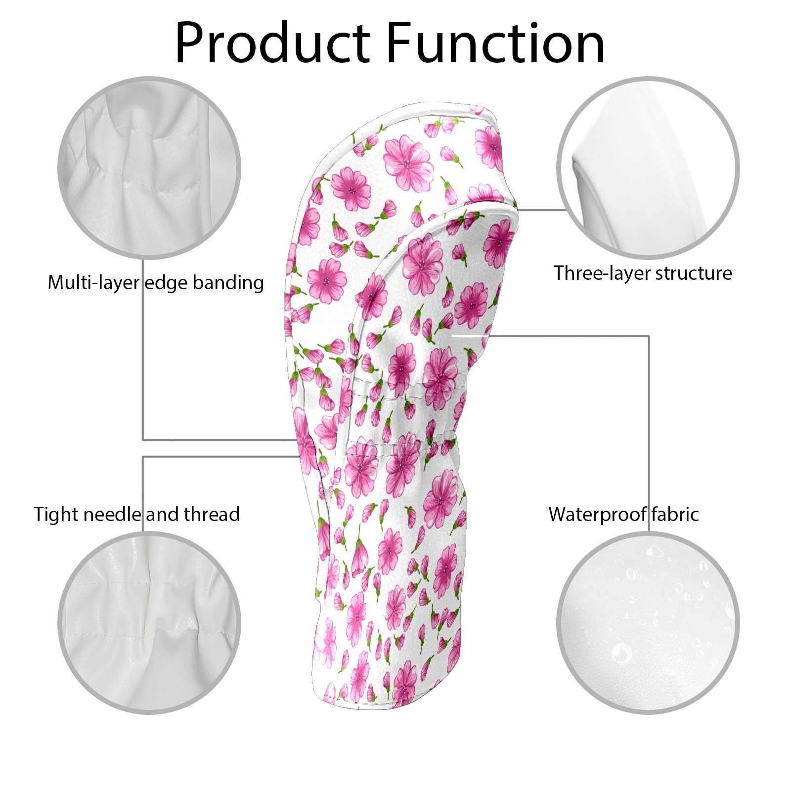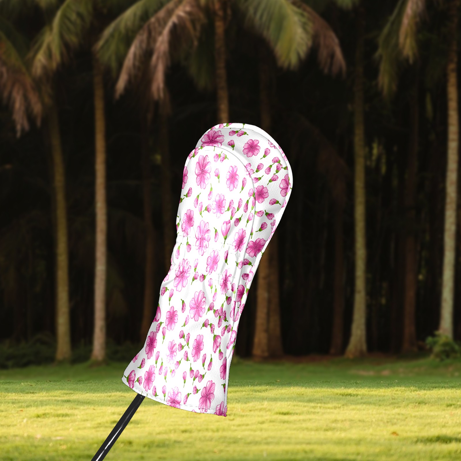 Golf Head Covers Driver Club Head Cover for Drivers Fairway Woods and Hybrid Clubs, PU Leather Golf Club Head Covers for Men and Women Pink Little Florals Pattern