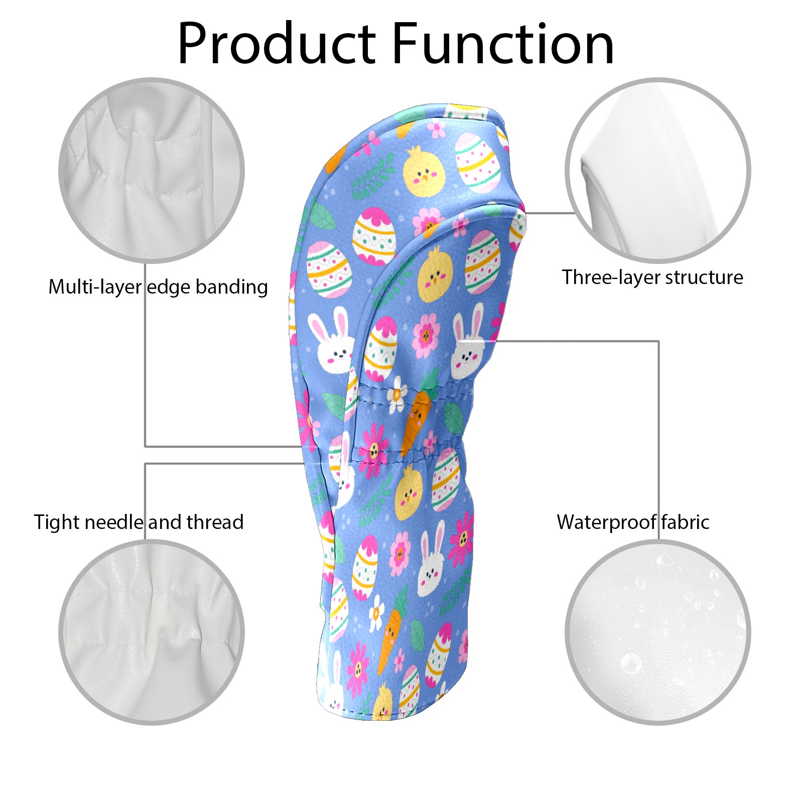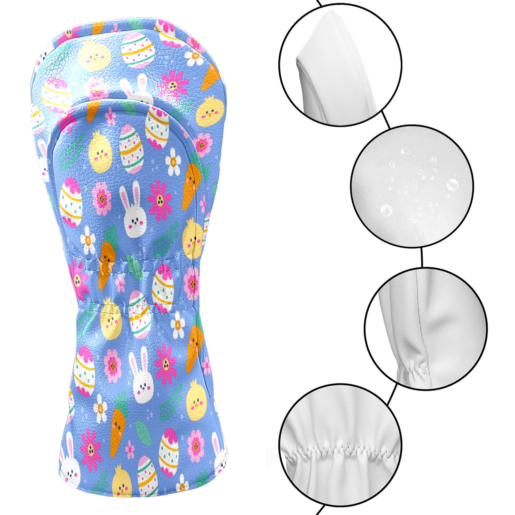 Golf Head Covers Driver Club Head Cover for Drivers Fairway Woods and Hybrid Clubs, PU Leather Golf Club Head Covers for Men and Women Happy Easter