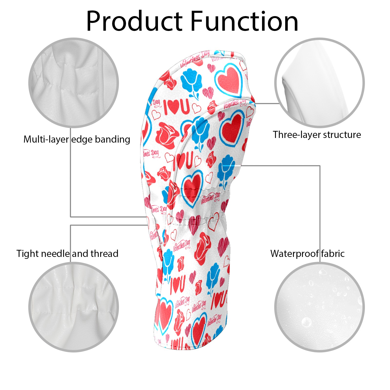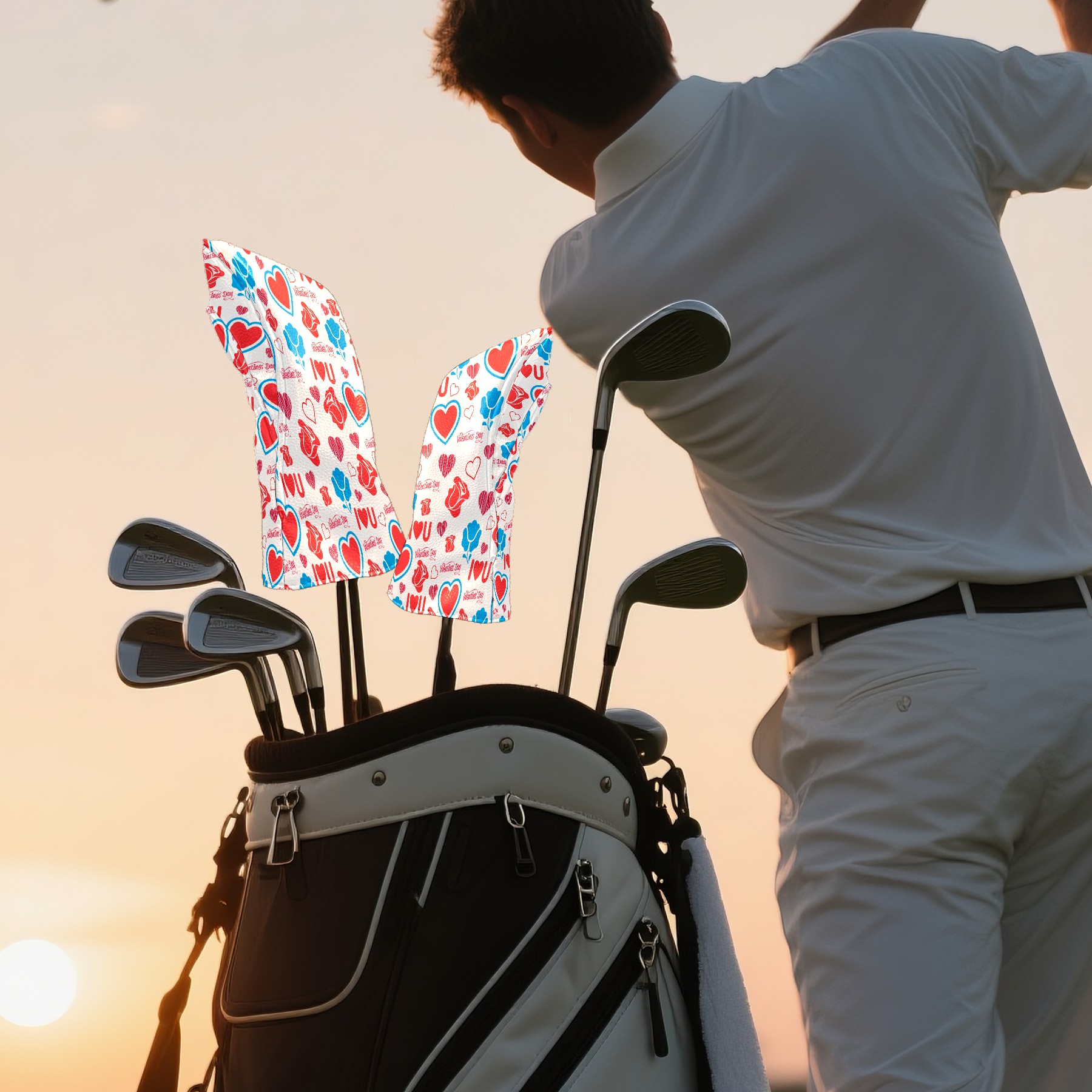 Golf Head Covers Driver Club Head Cover for Drivers Fairway Woods and Hybrid Clubs, PU Leather Golf Club Head Covers for Men and Women 情人节