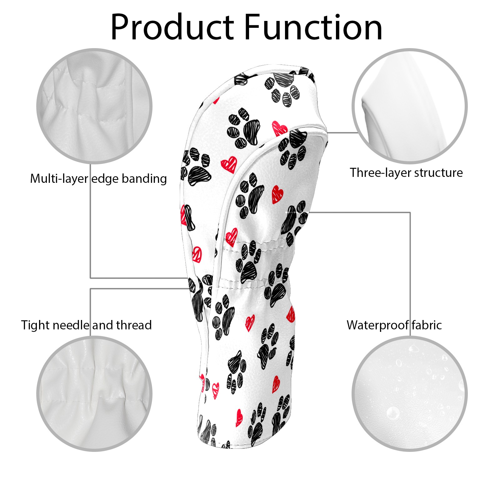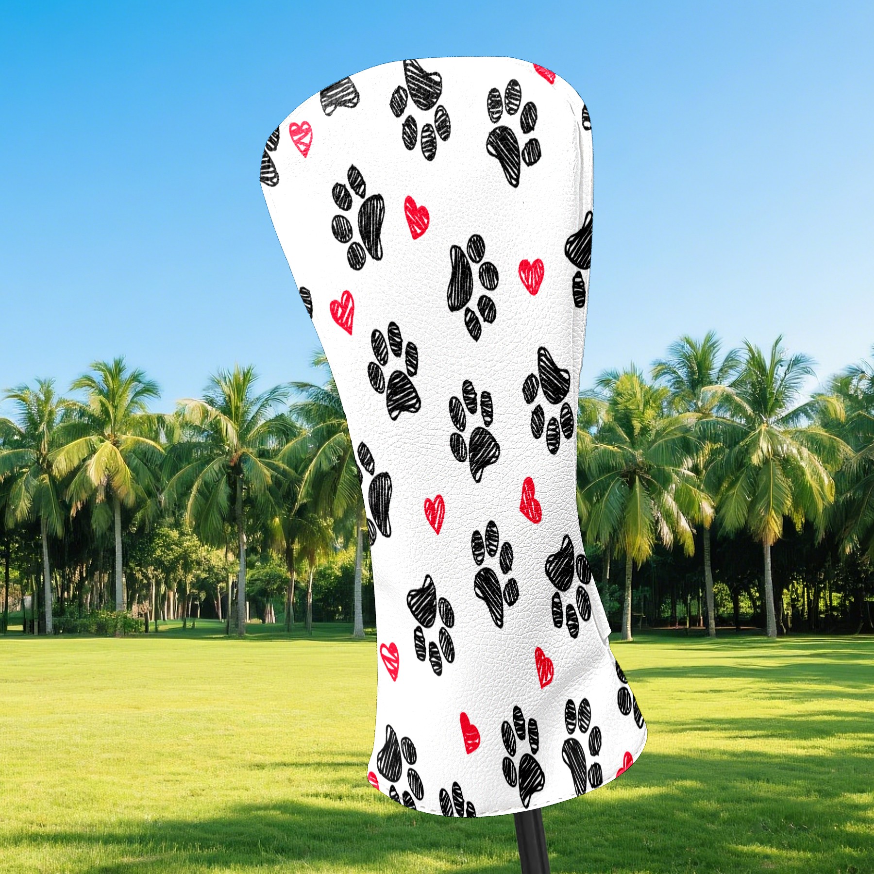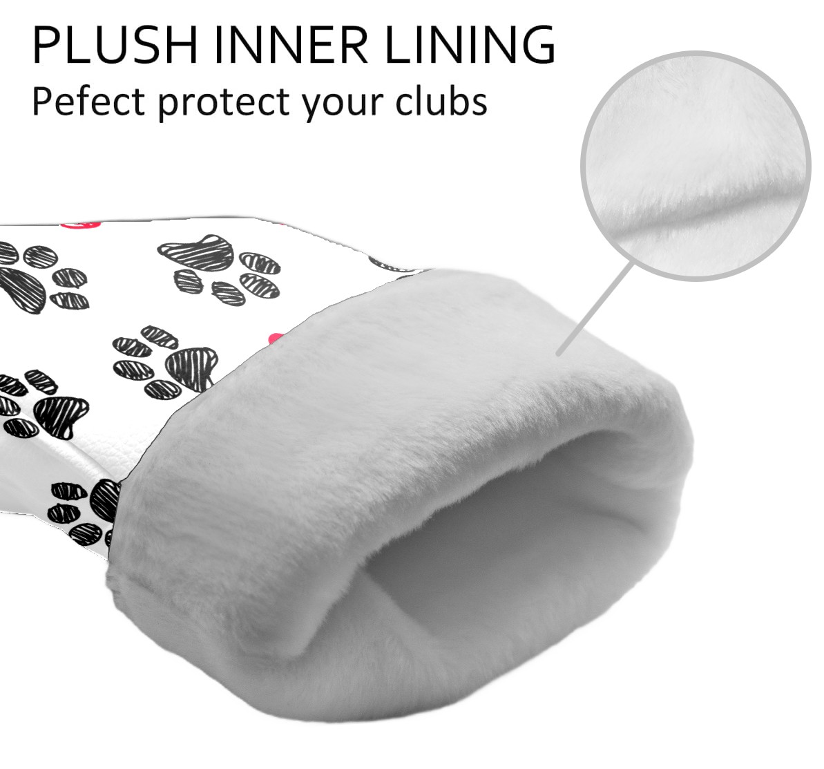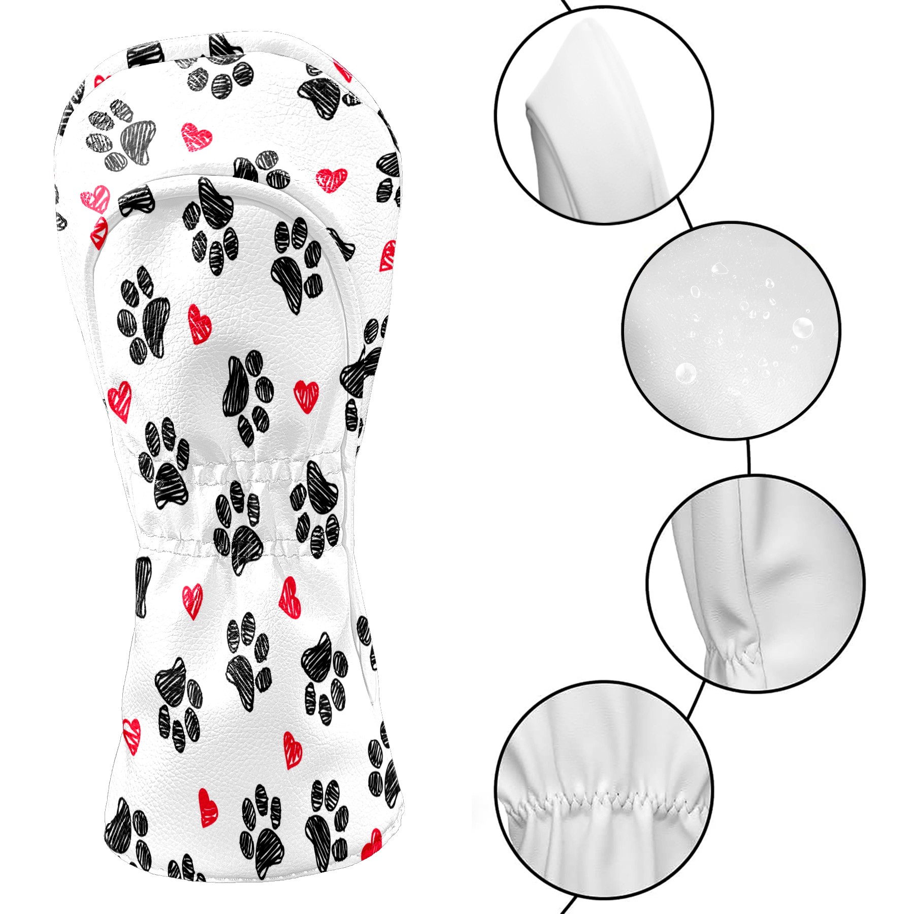 Golf Head Covers Driver Club Head Cover for Drivers Fairway Woods and Hybrid Clubs, PU Leather Golf Club Head Covers for Men and Women Doodle Paw Print