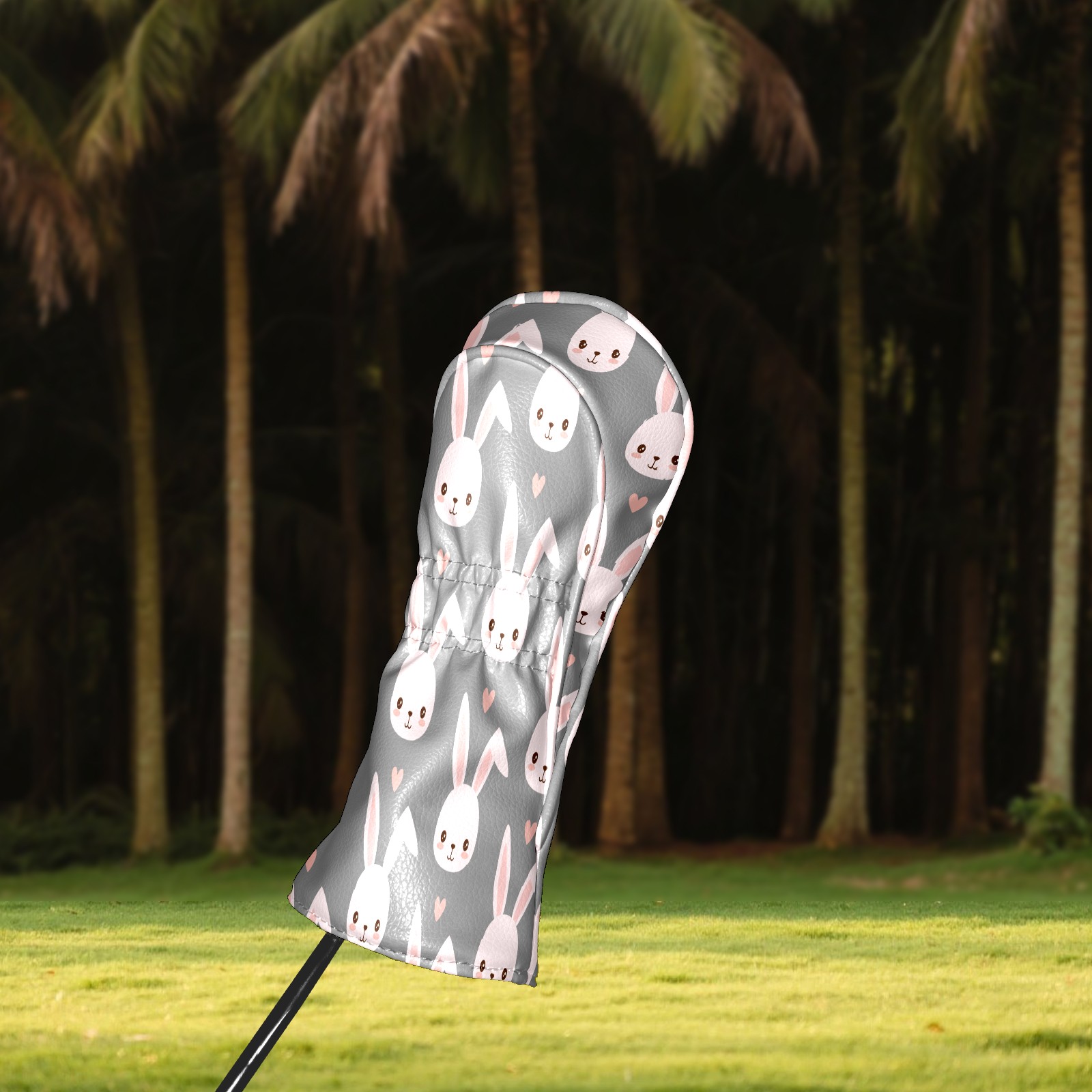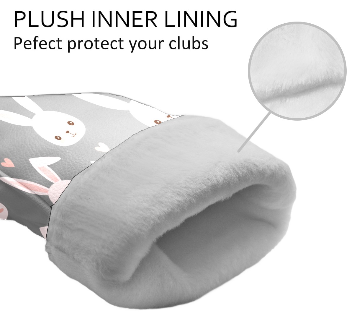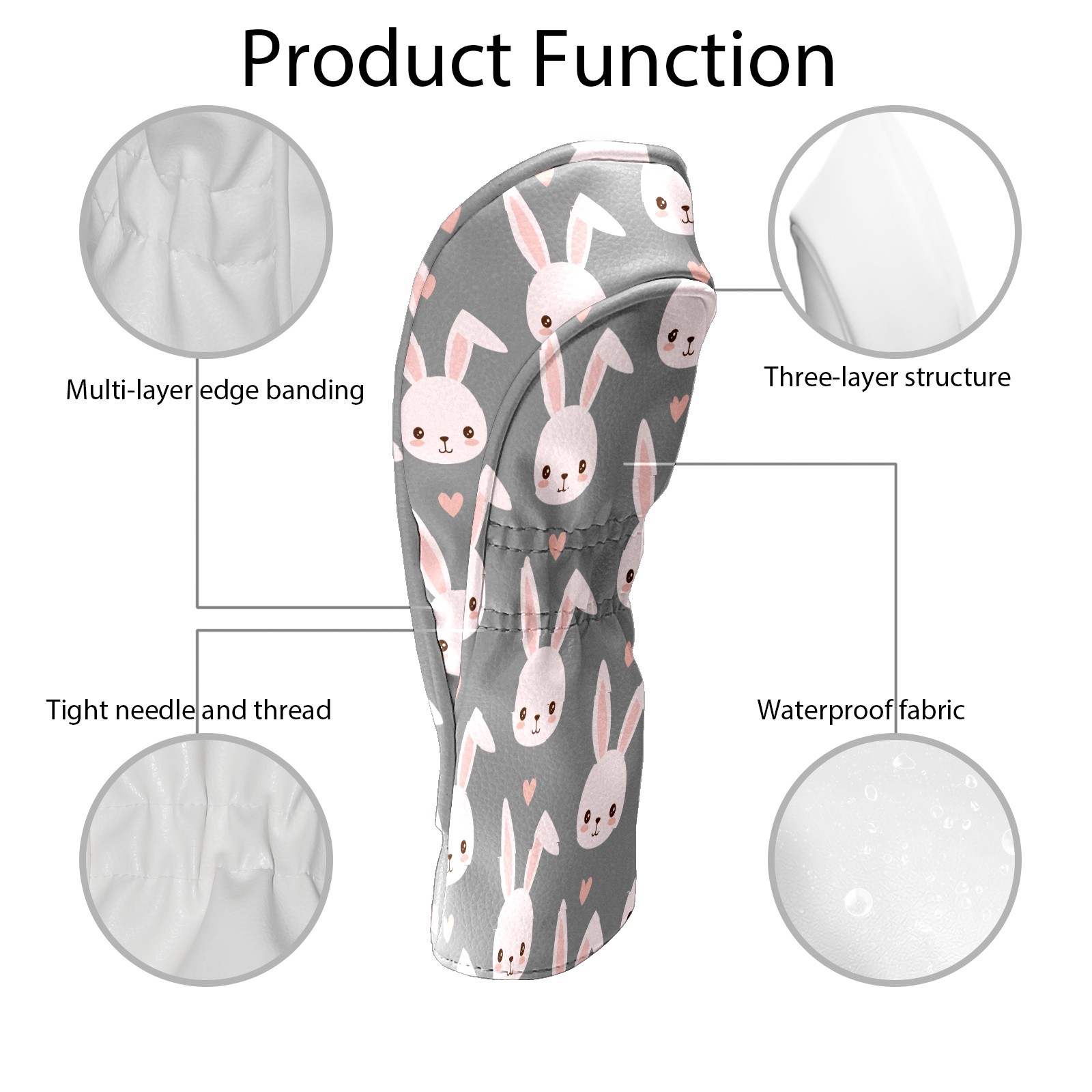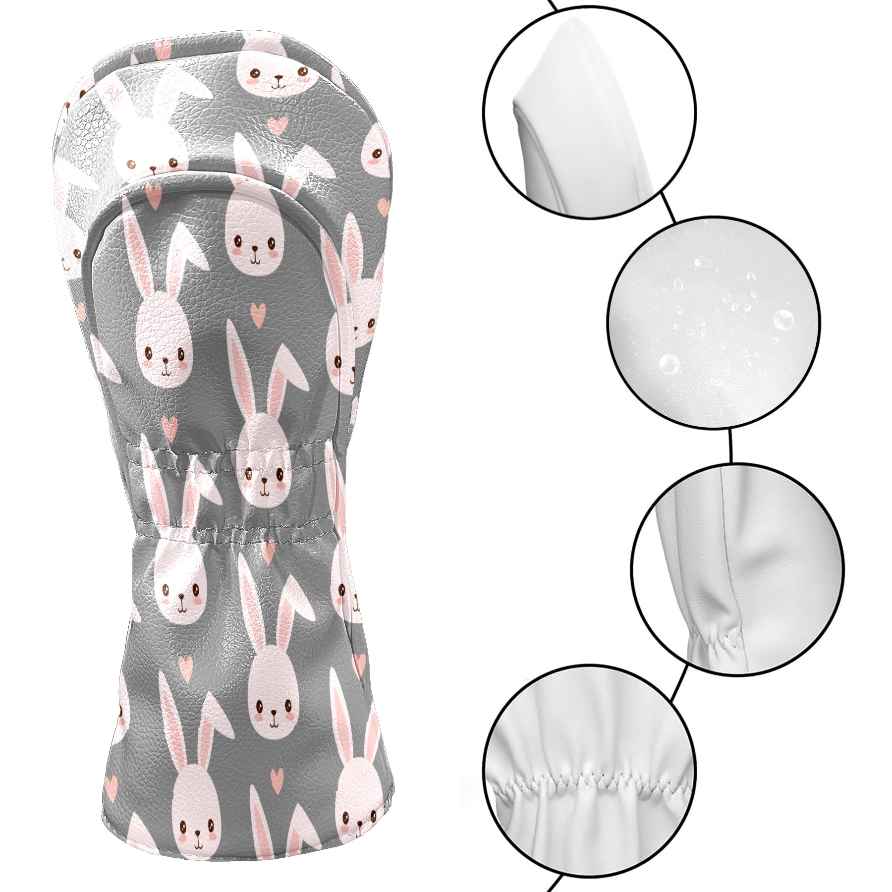 Golf Head Covers Driver Club Head Cover for Drivers Fairway Woods and Hybrid Clubs, PU Leather Golf Club Head Covers for Men and Women Cartoon Cute Rabbit Pattern