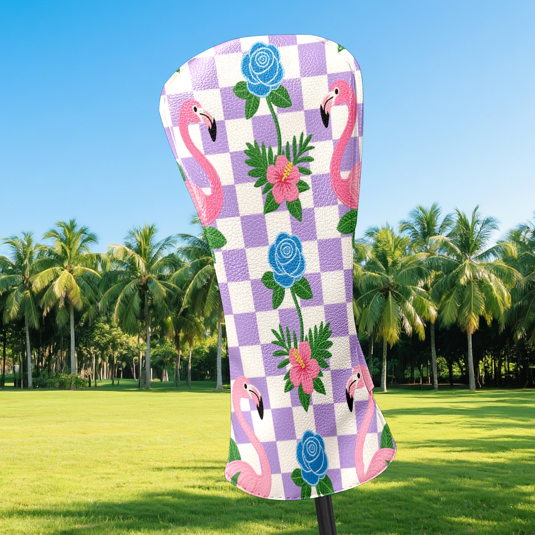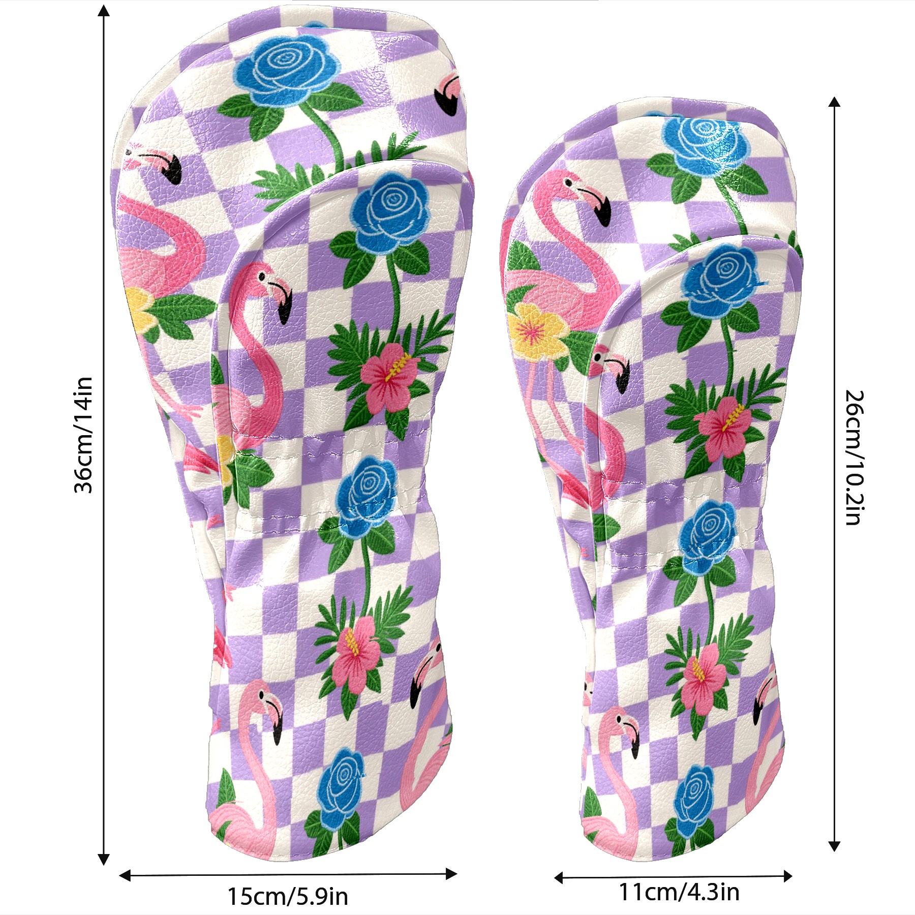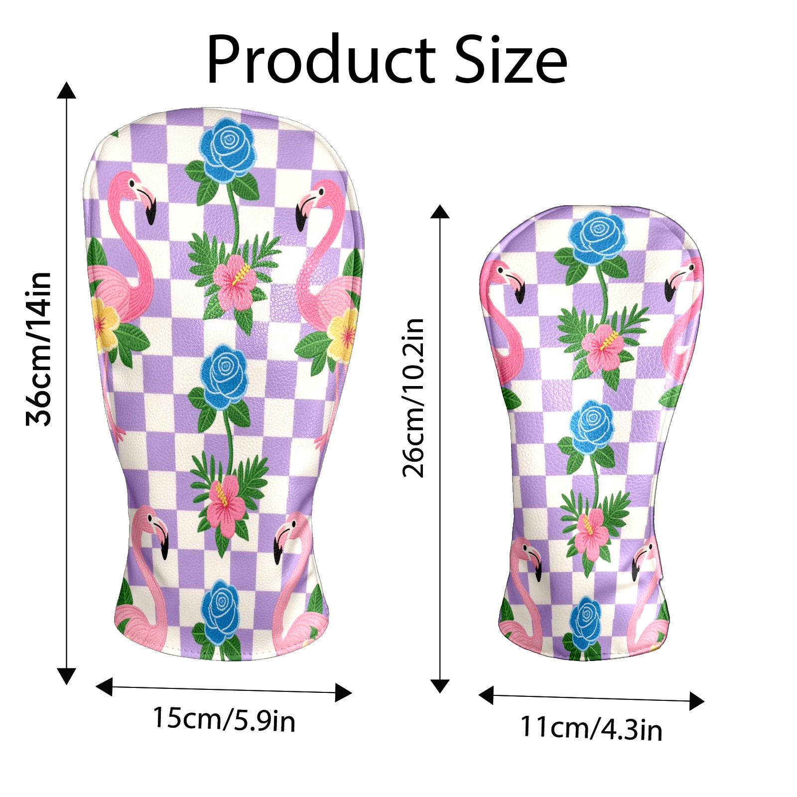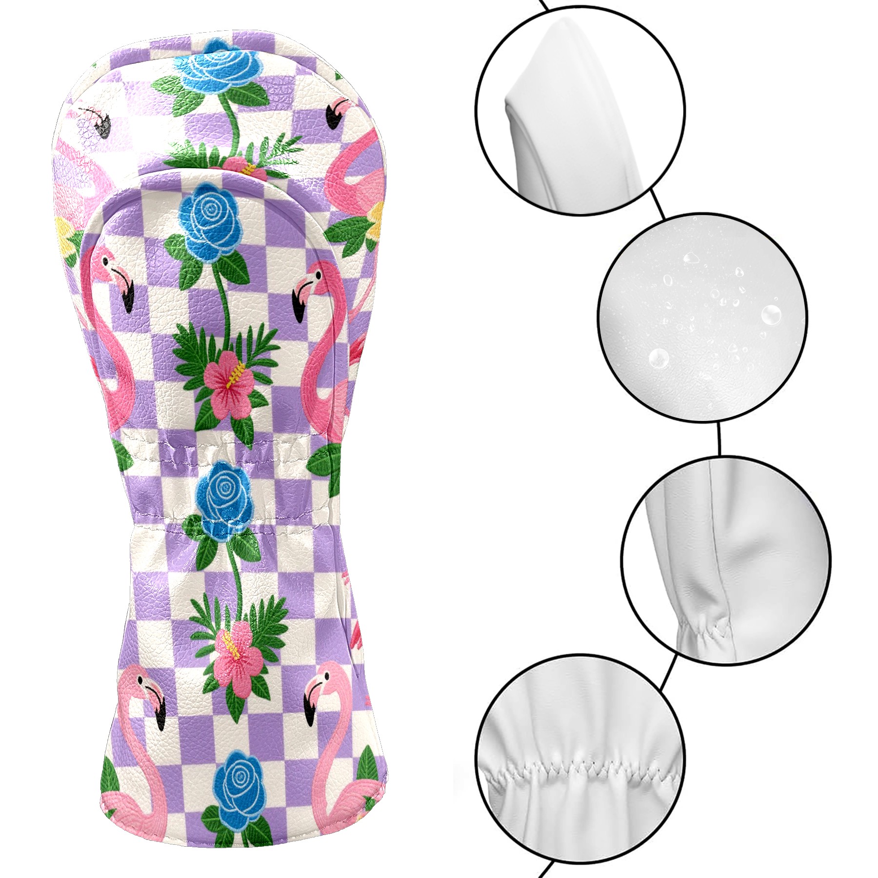 Golf Club Head Cover Premium Leather Driver Headcover, Golf Head Covers for Woods and Driver Waterproof Golf Headcovers with Anti-Scratch Lining for Men Women (Purple Checkered)
