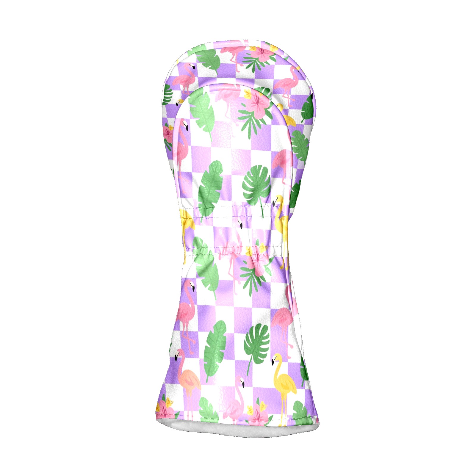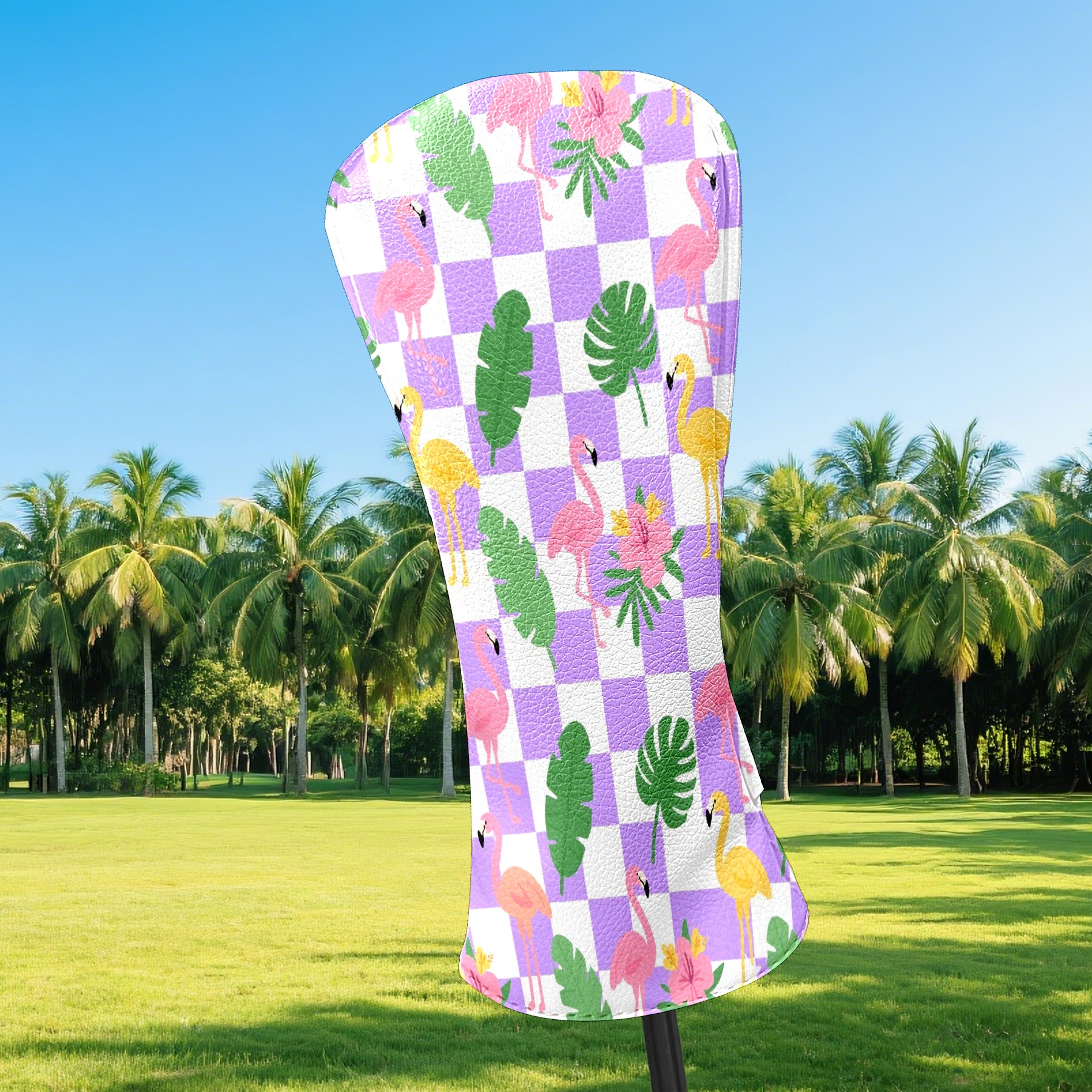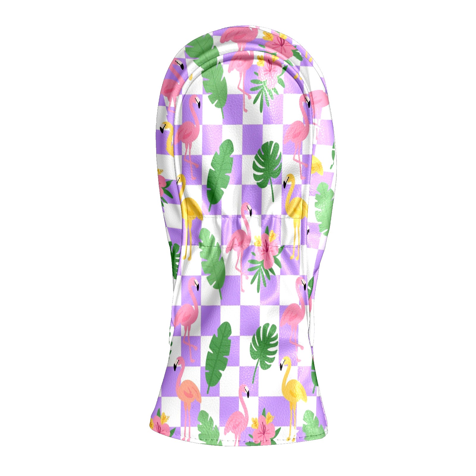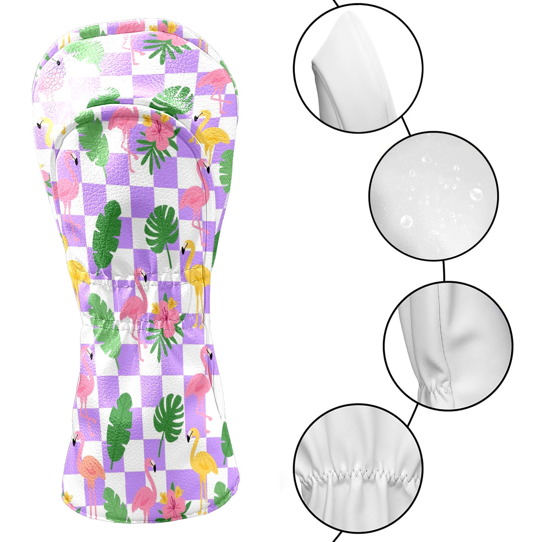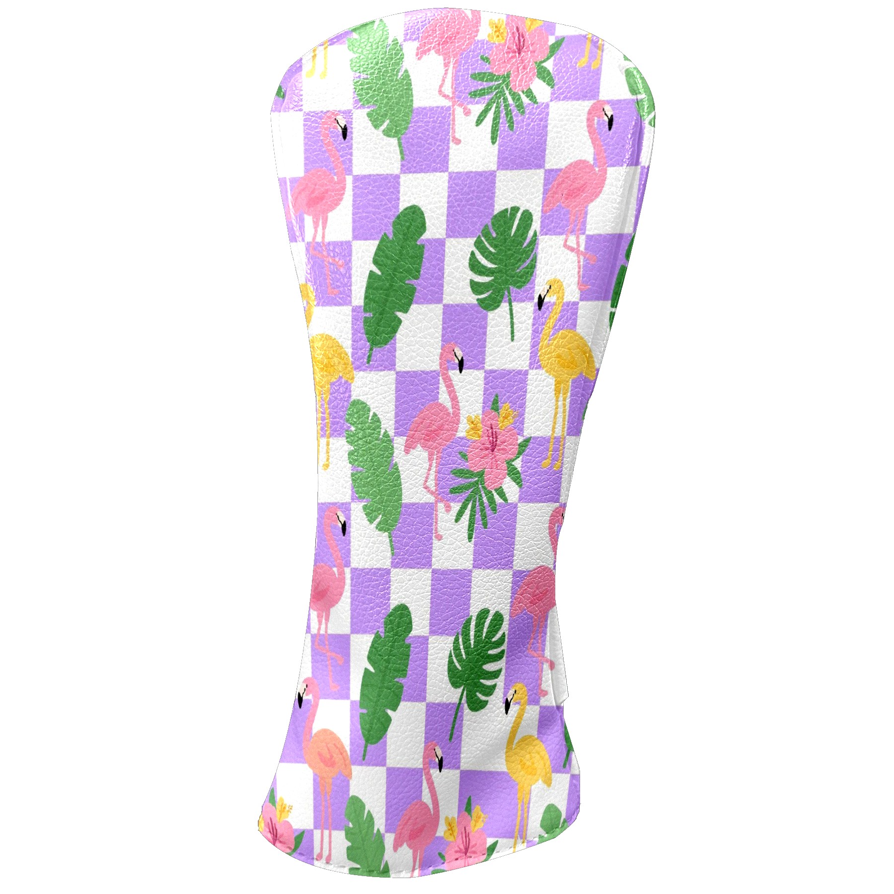 Golf Club Head Cover Premium Leather Driver Headcover, Golf Head Covers for Woods and Driver Waterproof Golf Headcovers with Anti-Scratch Lining for Men Women (Purple Checkered Flamingo Leaves)