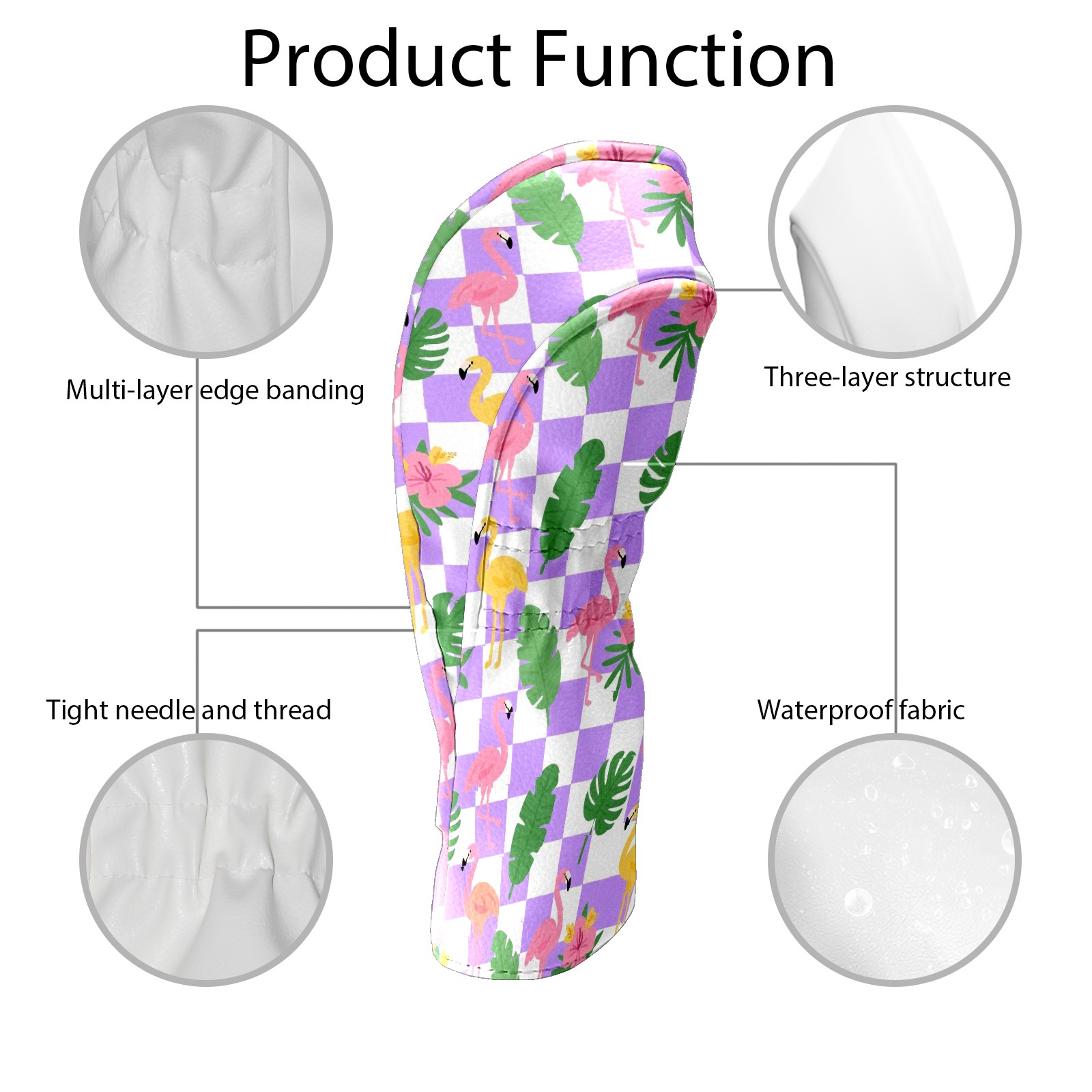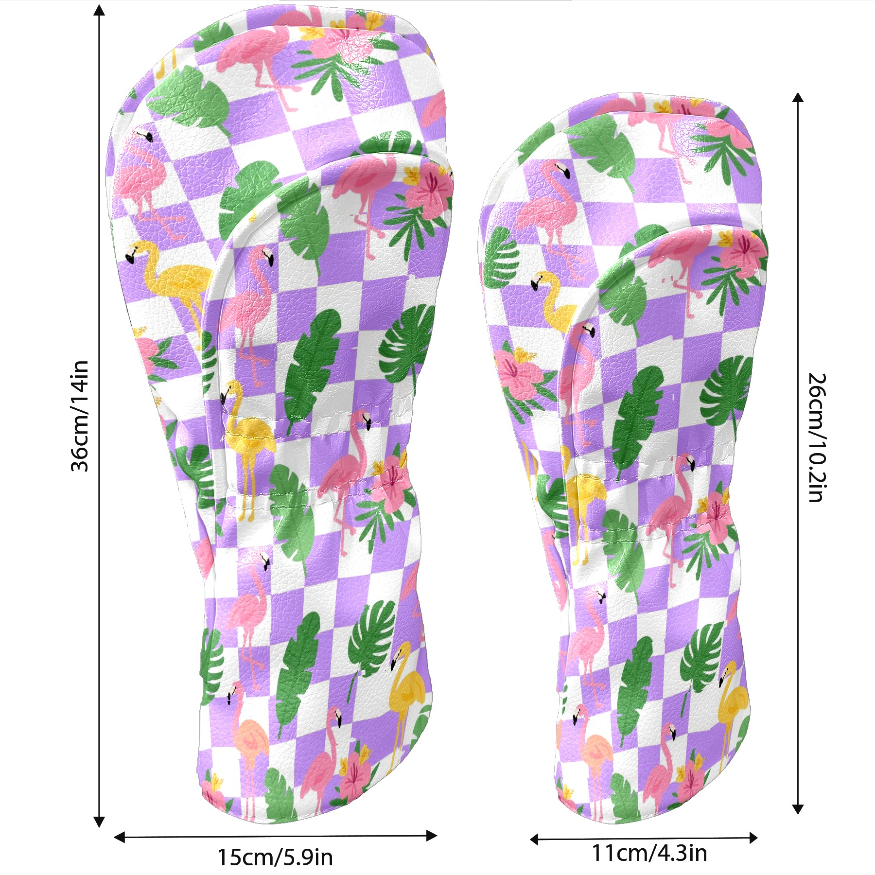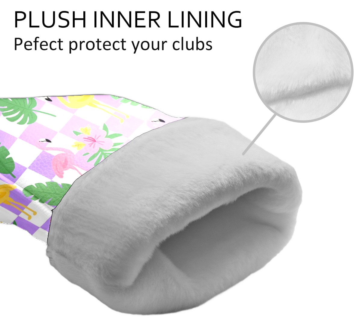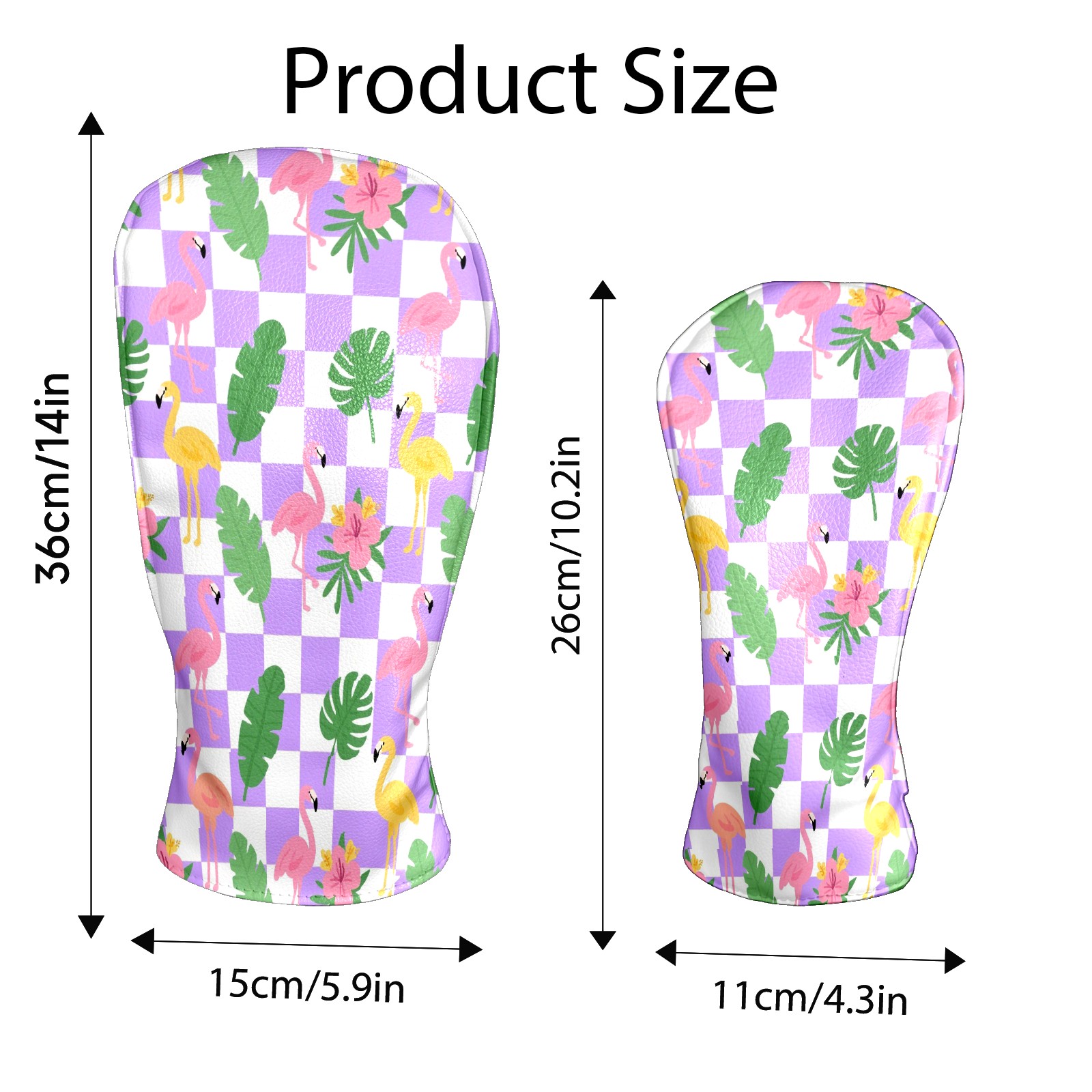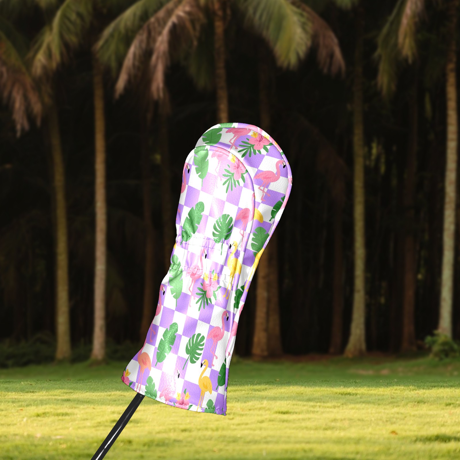 Golf Club Head Cover Premium Leather Driver Headcover, Golf Head Covers for Woods and Driver Waterproof Golf Headcovers with Anti-Scratch Lining for Men Women (Purple Checkered Flamingo Leaves)
