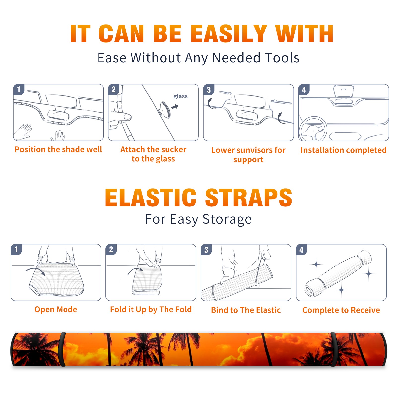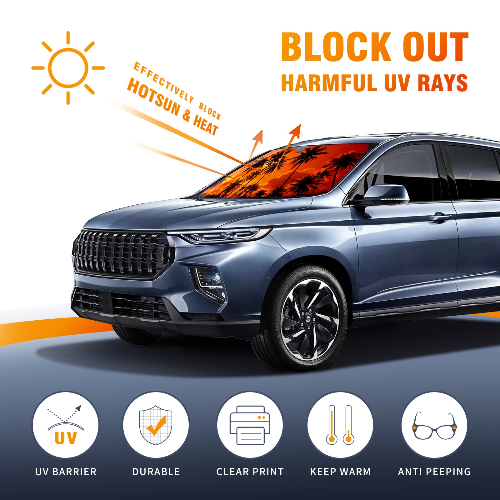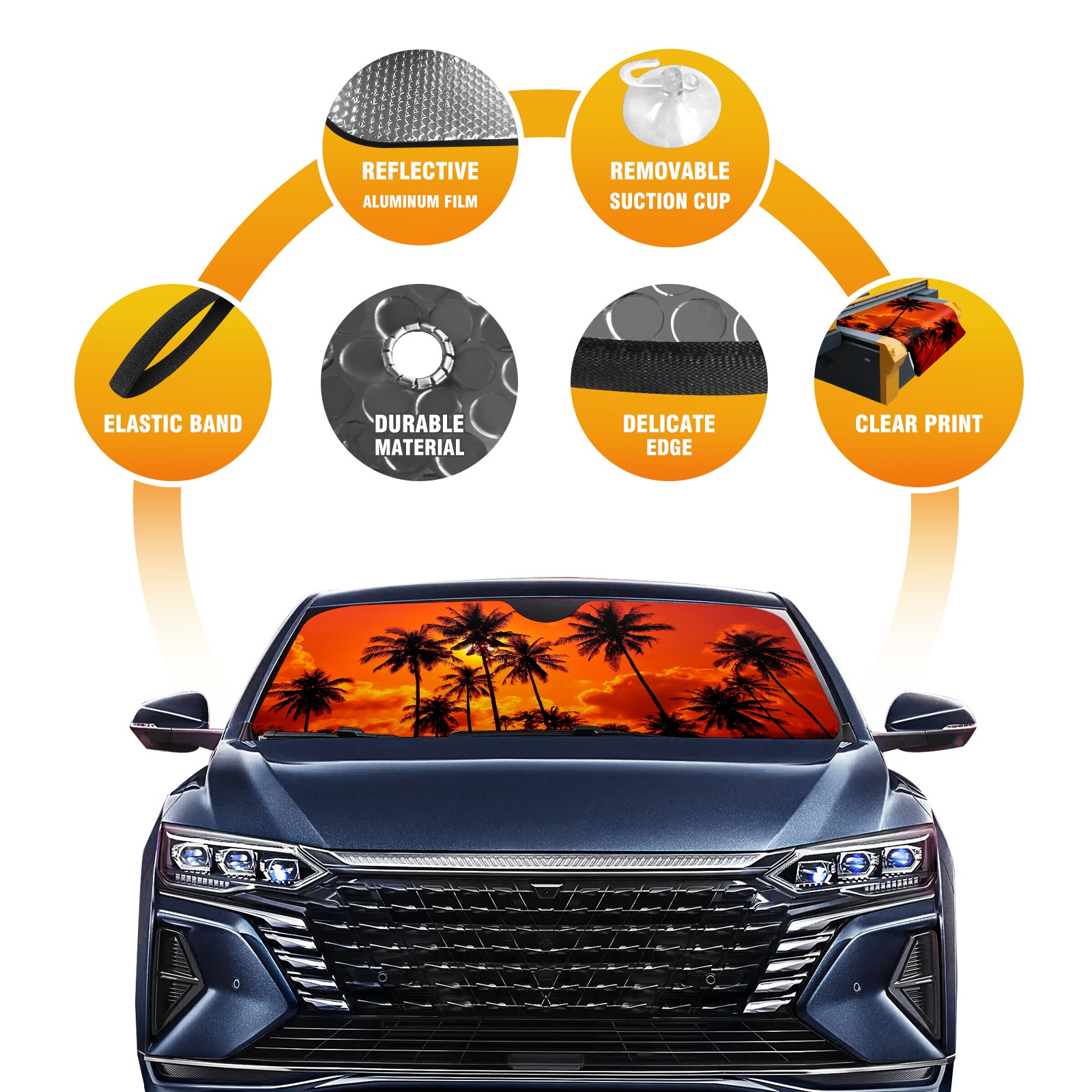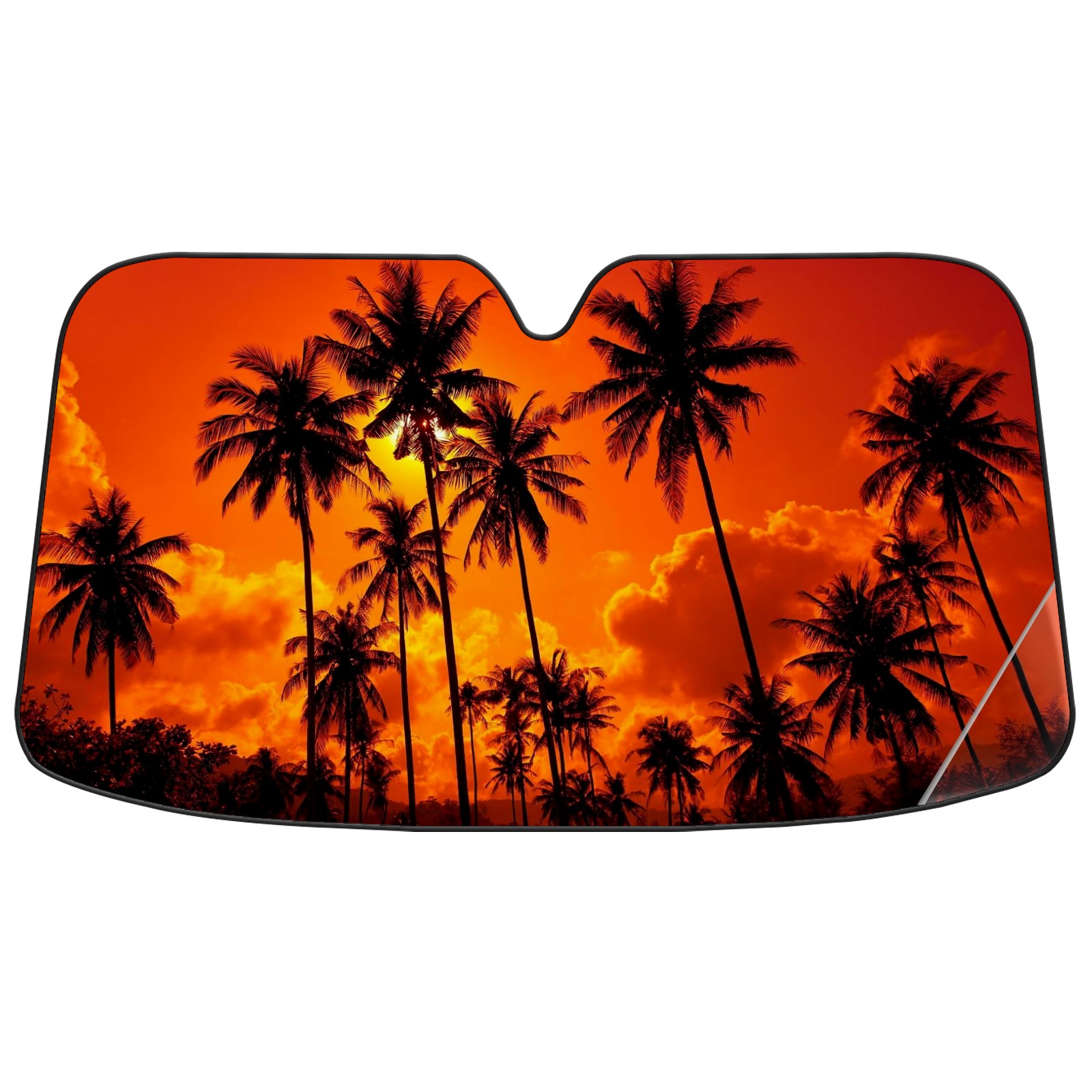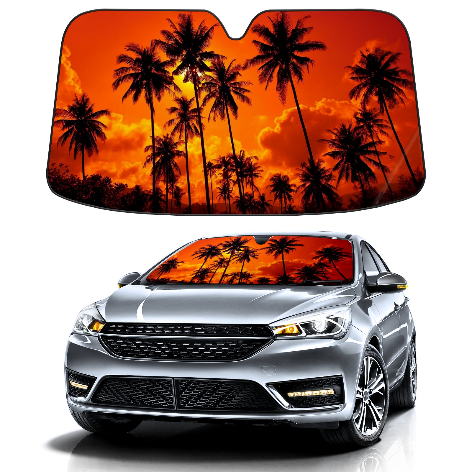 Car Windshield Sun Shade Polyester Car Sunshade Pad, Heat Insulation And Sun Protection Sunset Trees