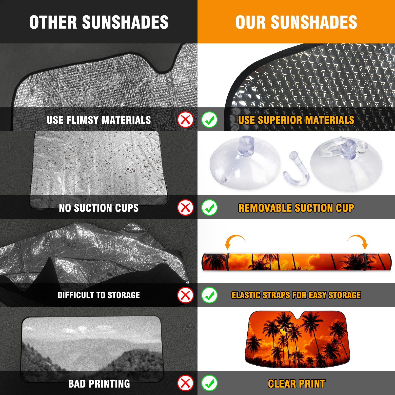 • <p>This car sunshade pad is made of a high-quality combination of aluminum foil and polyester, reinforced with transparent adhesive. It measures 140x76cm (55inx30in) and is a practical choice for protecting your car. Its powerful UV protection function can effectively block harmful light, prevent the car interior from aging due to exposure to sunlight, and maintain the dashboard, steering wheel, and seats in a brand new state.<br></p>