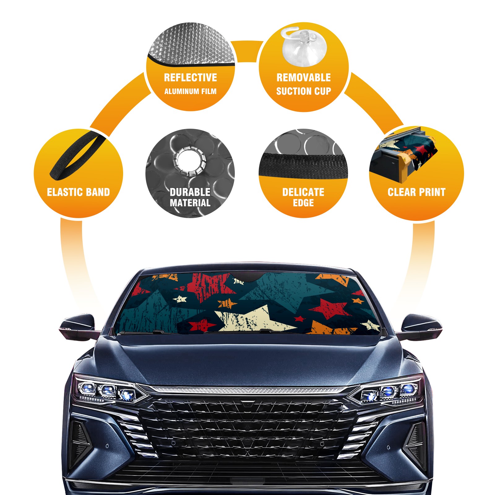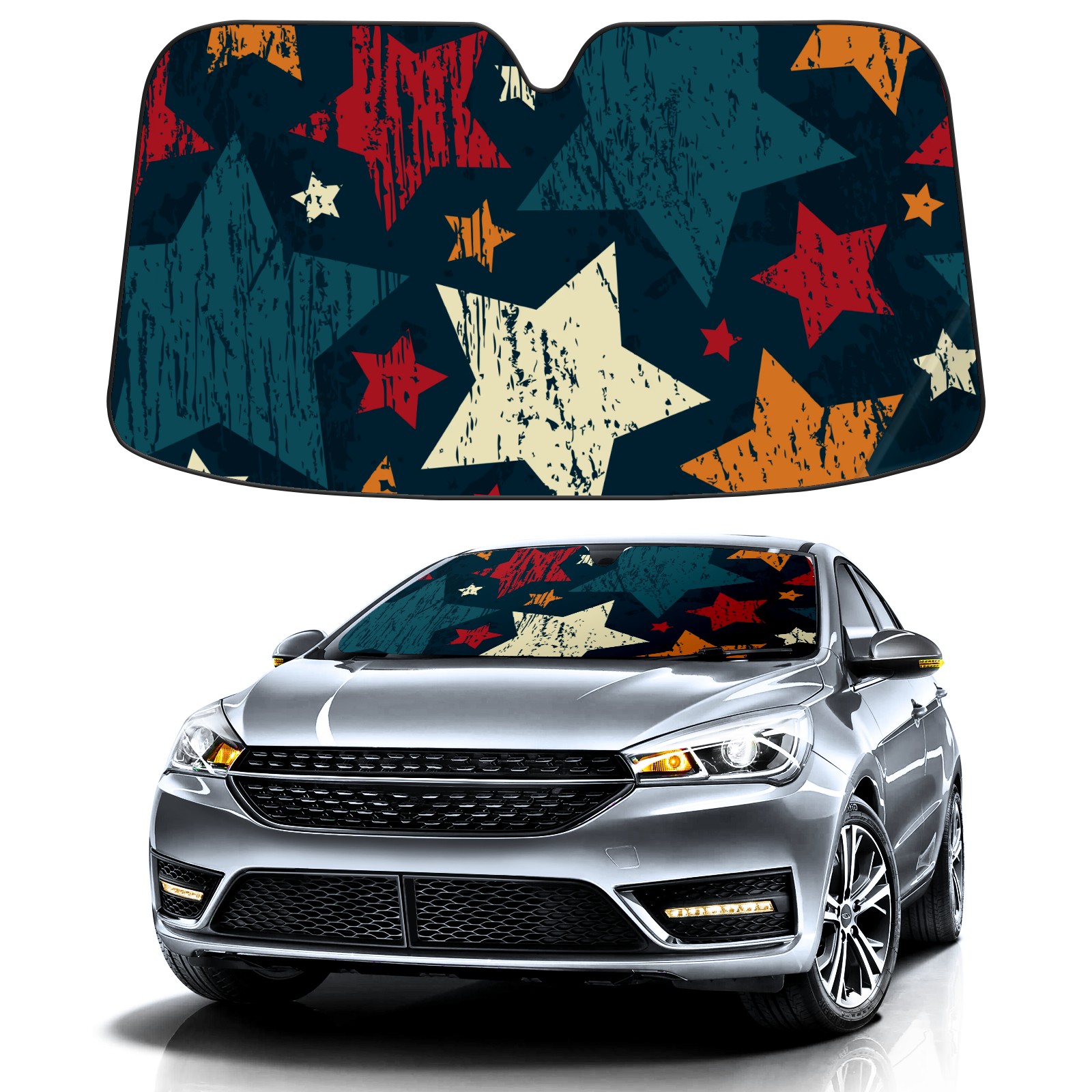 Car Windshield Sun Shade Polyester Car Sunshade Pad, Heat Insulation And Sun Protection Grunge Star Seamless