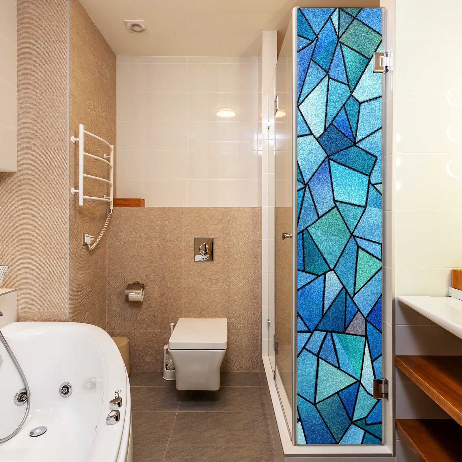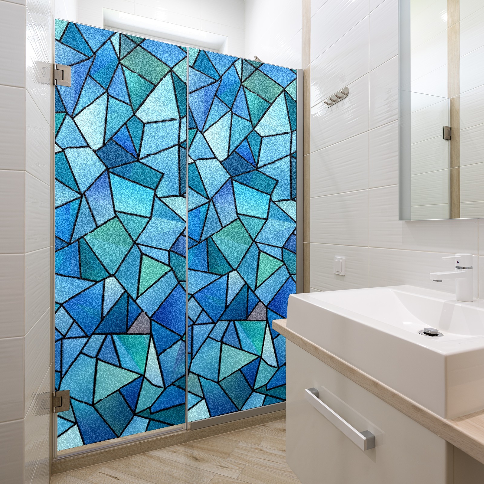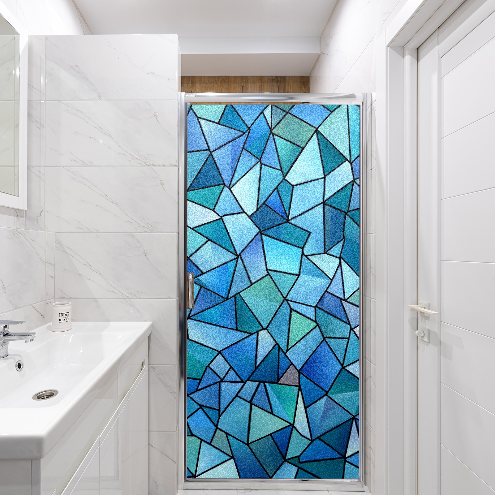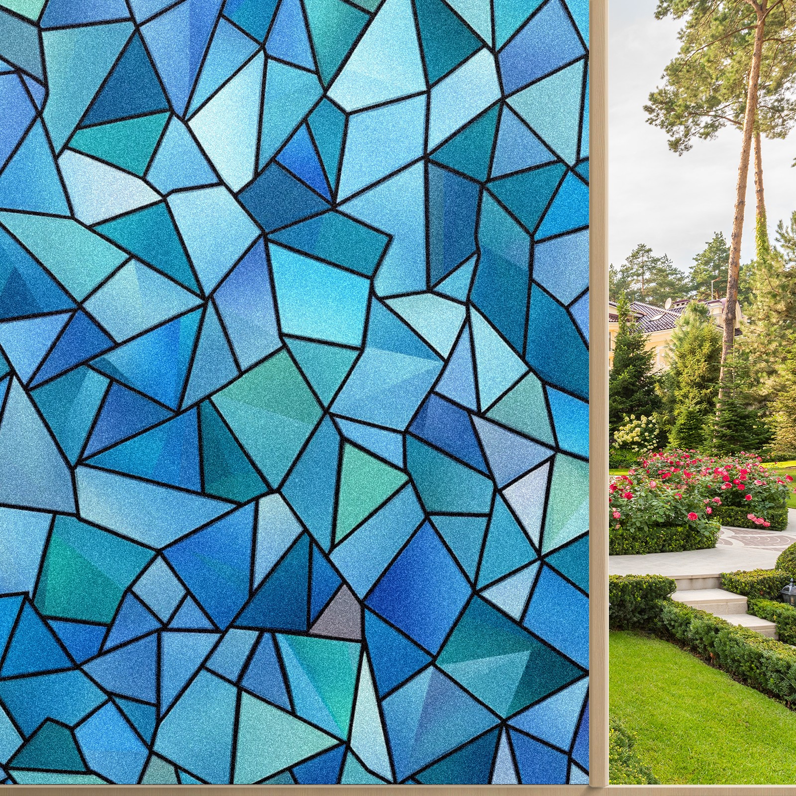 Window Privacy Film Decorative Window Decal Film Removable Static Cling Window Tint for Home Bedroom Sun Blocking Stickers 17.7 x 23.6 Inches Blue And Teal Geometric Triangles