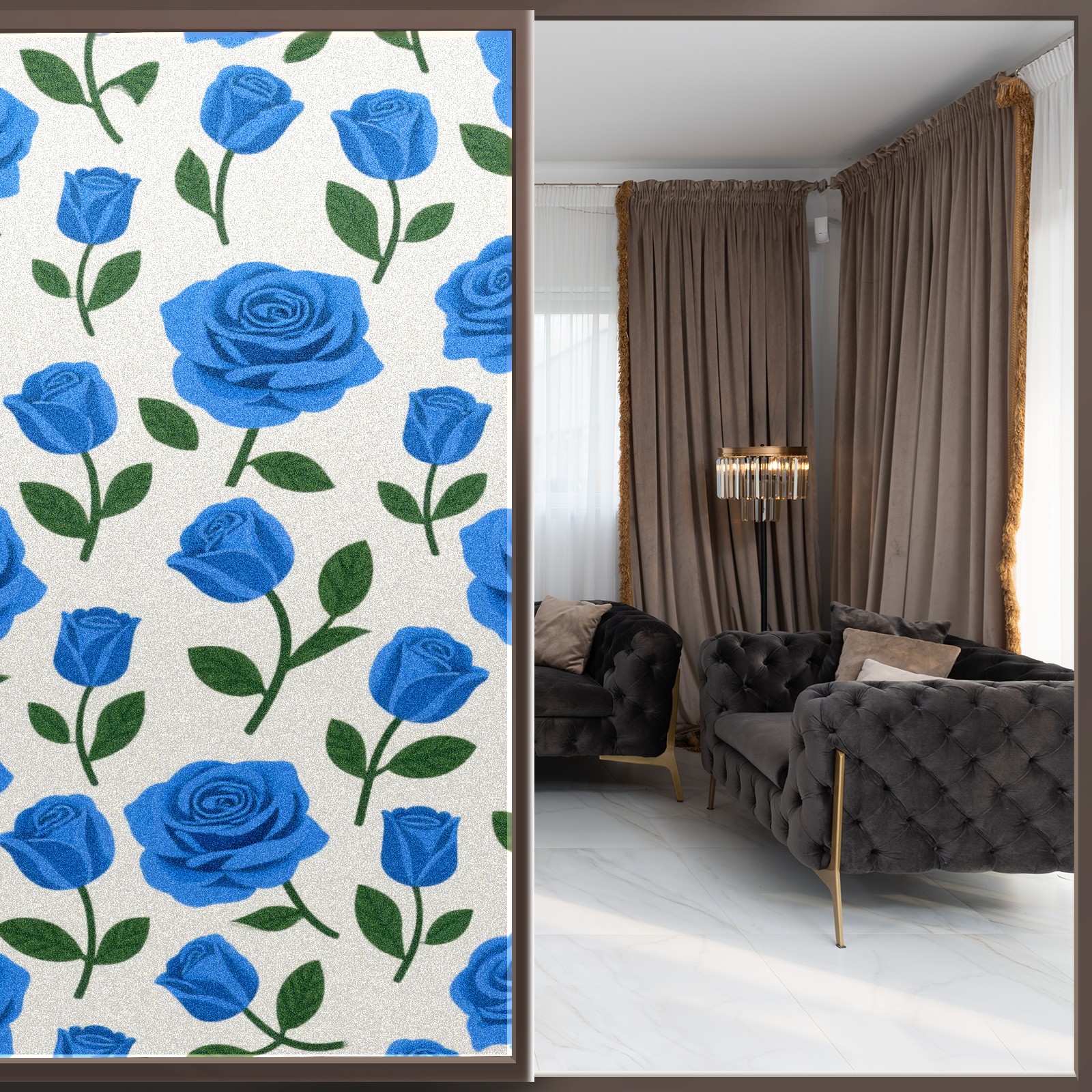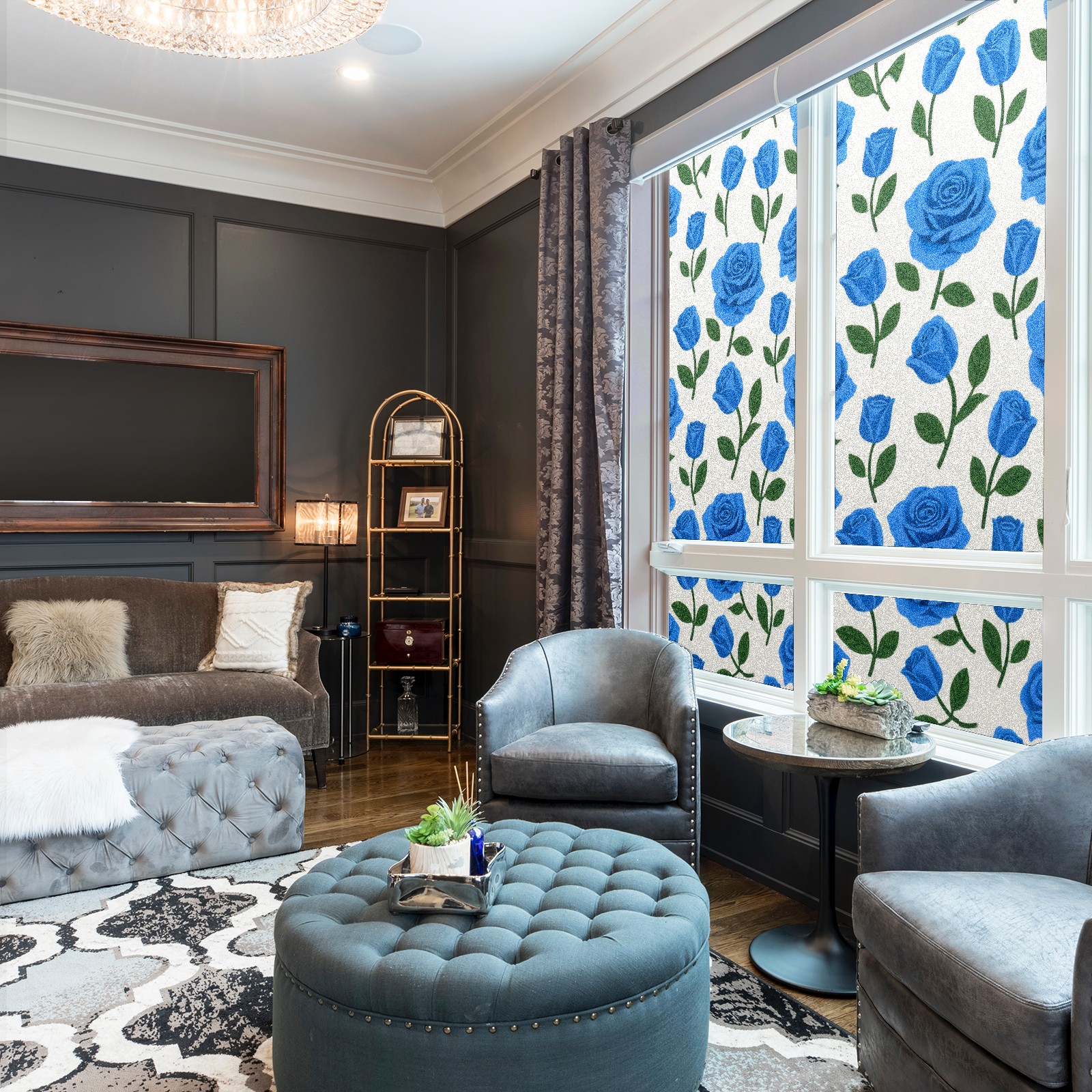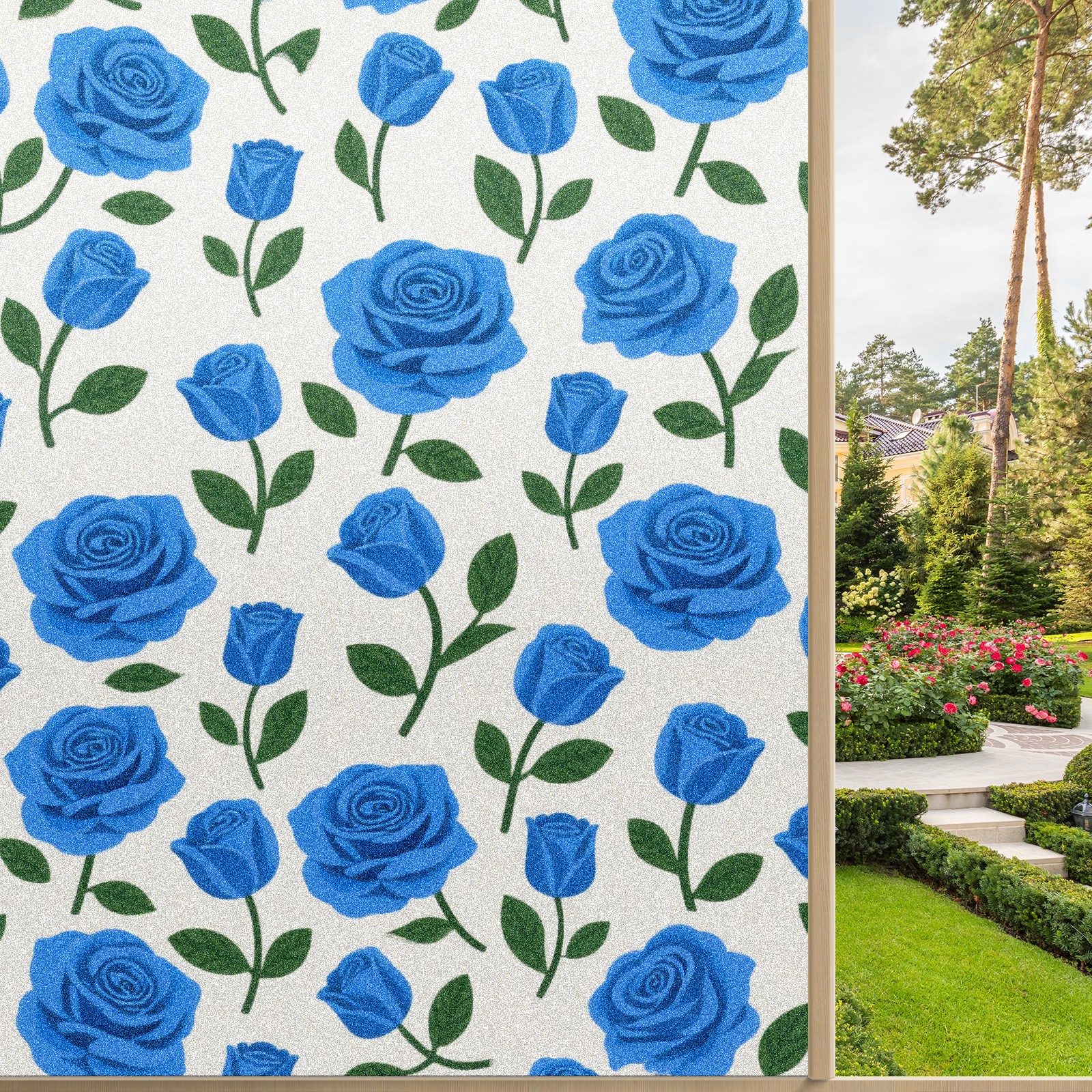 Window Privacy Film Decorative Window Decal Film Removable Static Cling Window Tint for Home Bedroom Sun Blocking Stickers 17.7 x 23.6 Inches Blue Rose