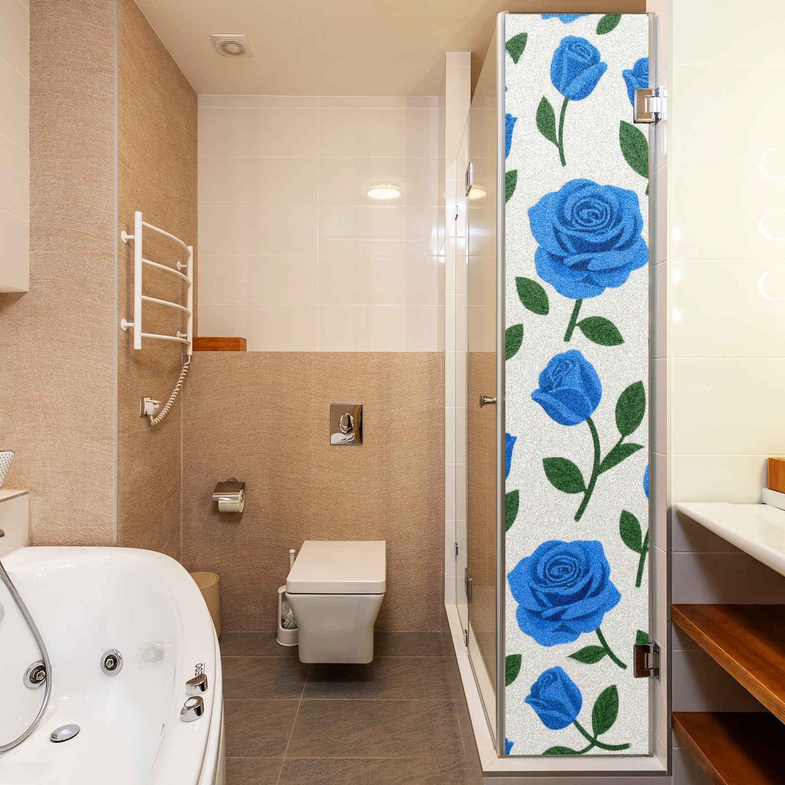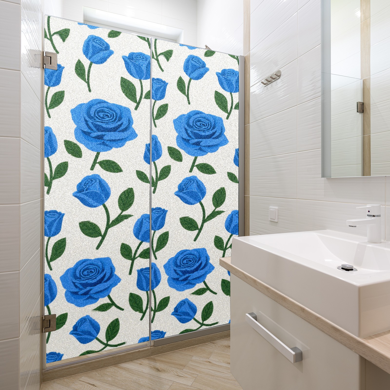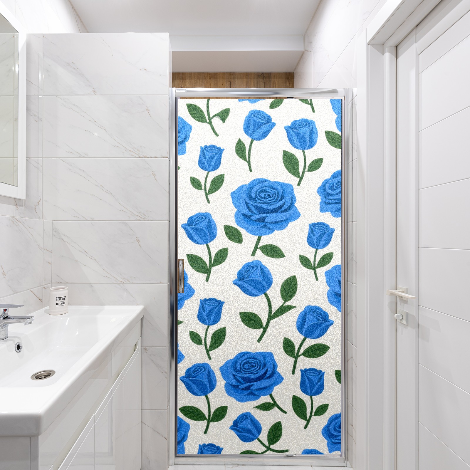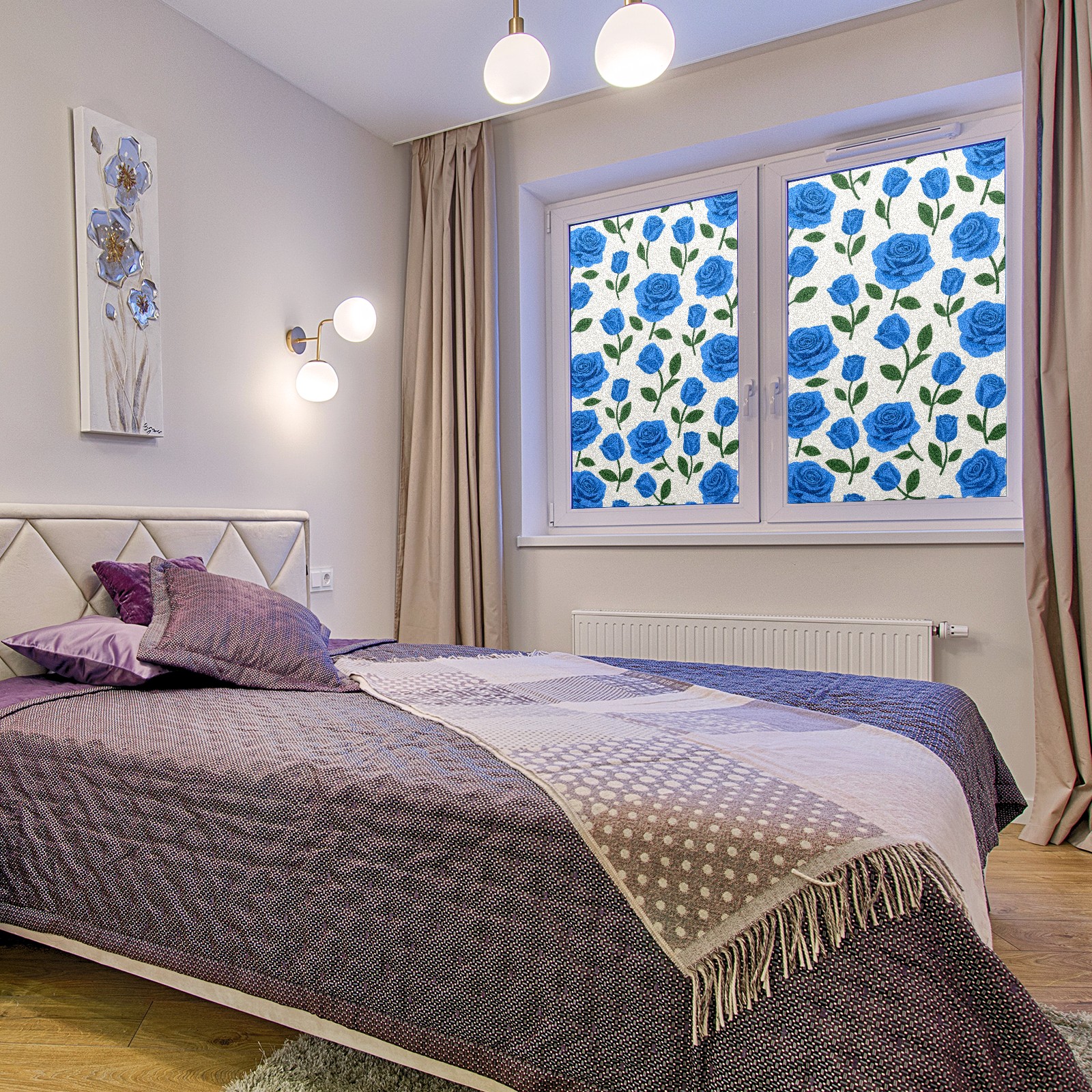 Window Privacy Film Decorative Window Decal Film Removable Static Cling Window Tint for Home Bedroom Sun Blocking Stickers 17.7 x 23.6 Inches Blue Rose