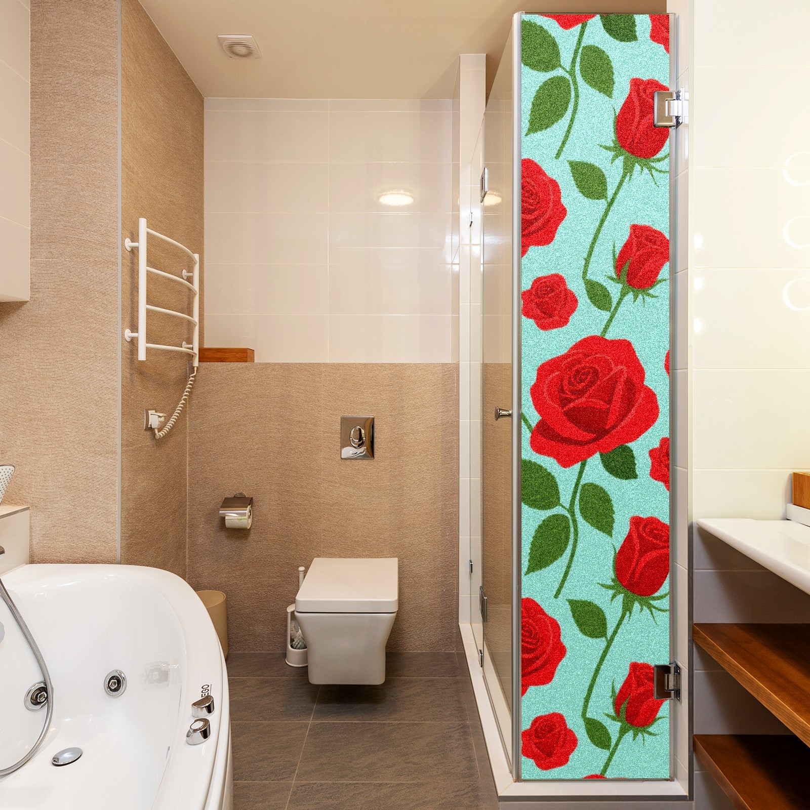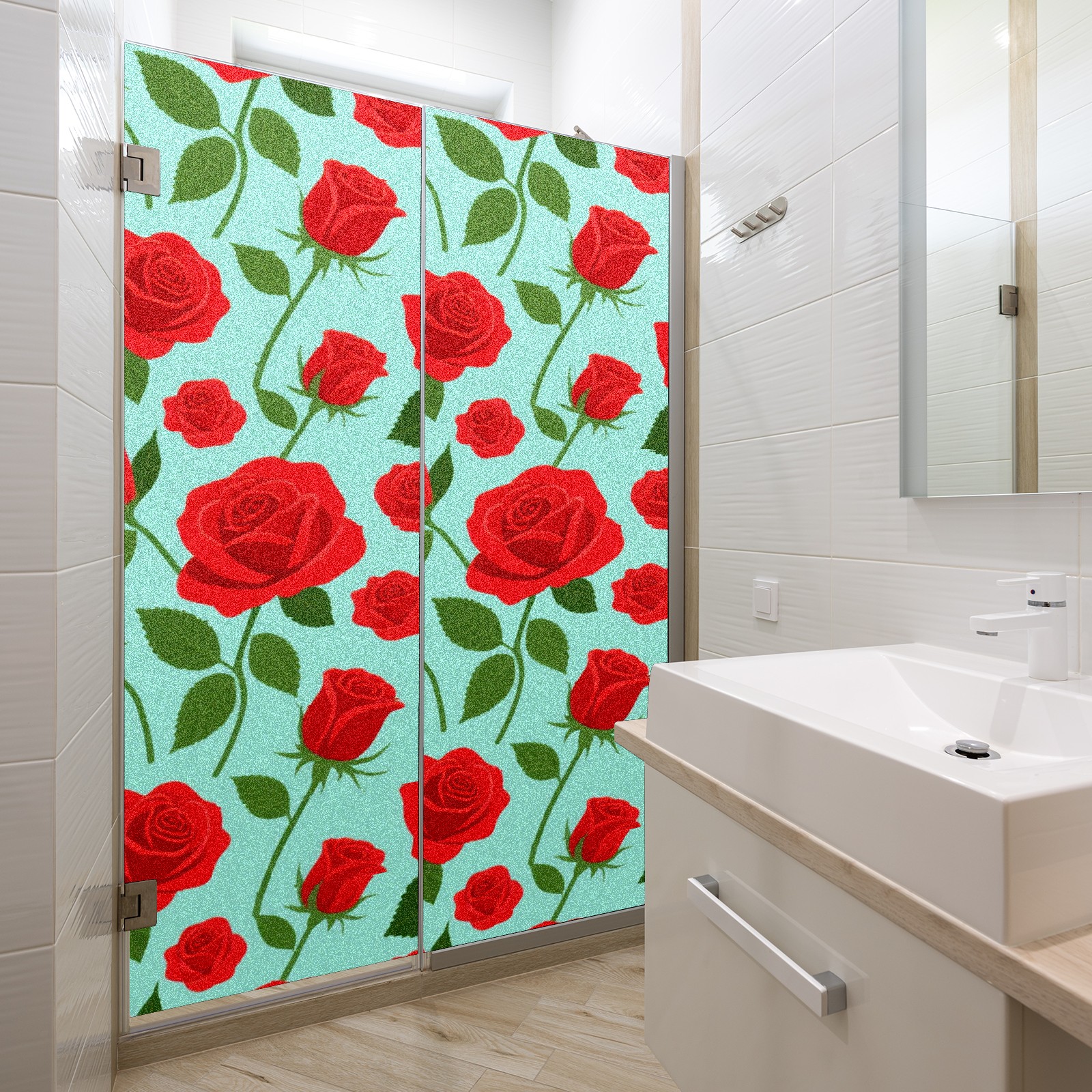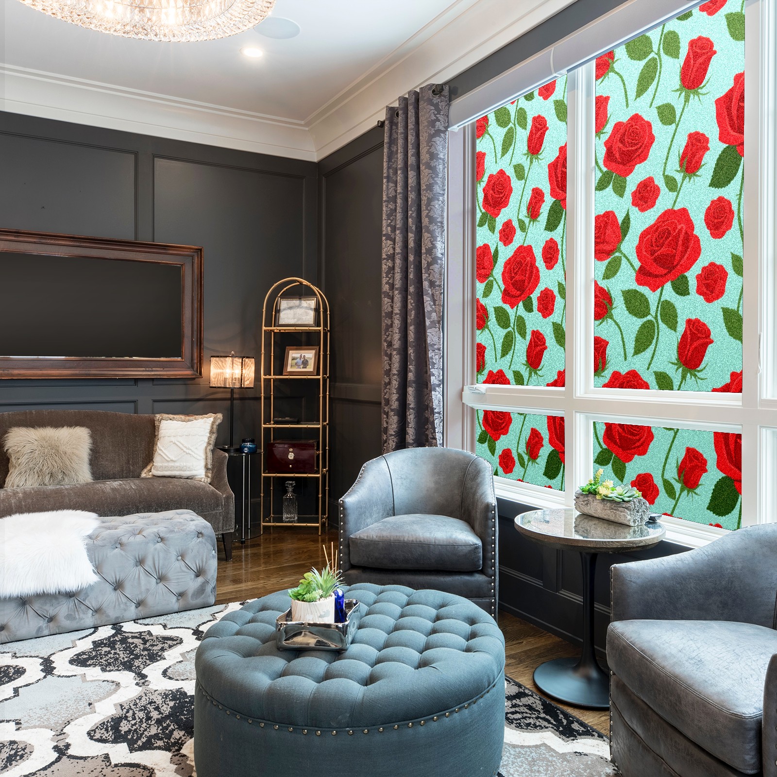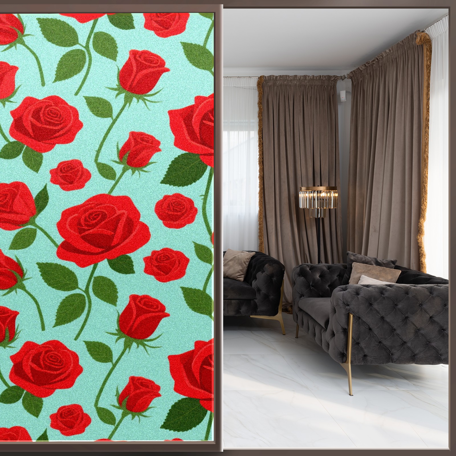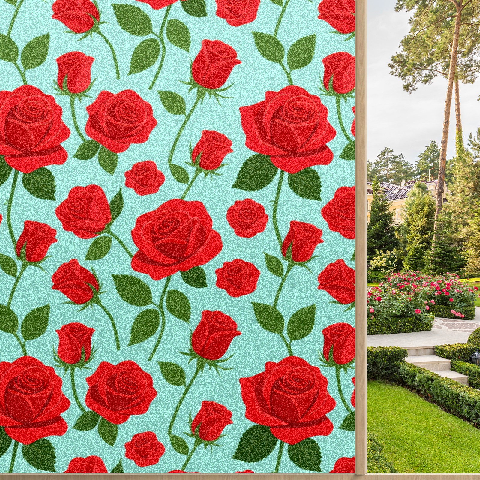 Window Privacy Film Decorative Window Decal Film Removable Static Cling Window Tint for Home Bedroom Sun Blocking Stickers 17.7 x 23.6 Inches Red Rose