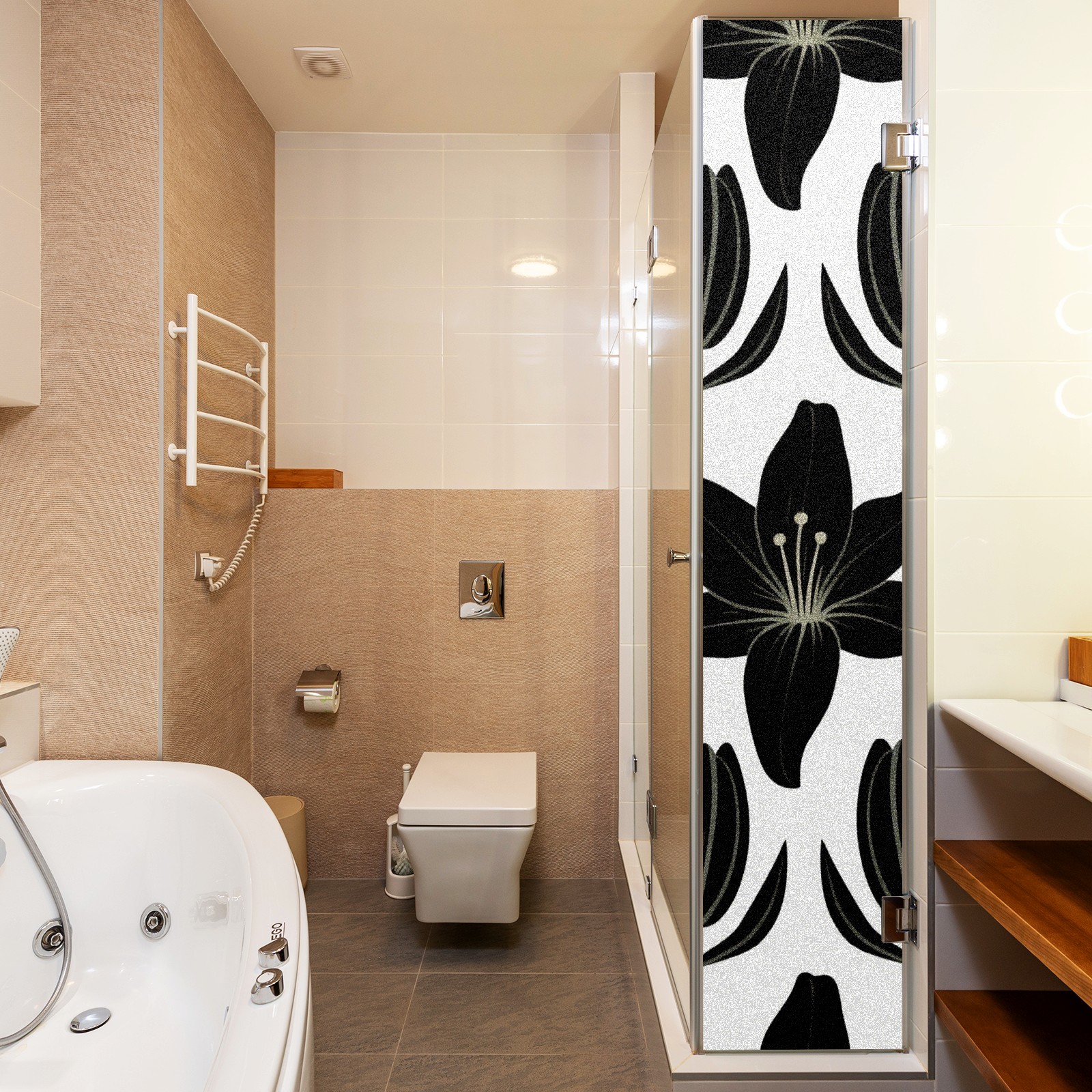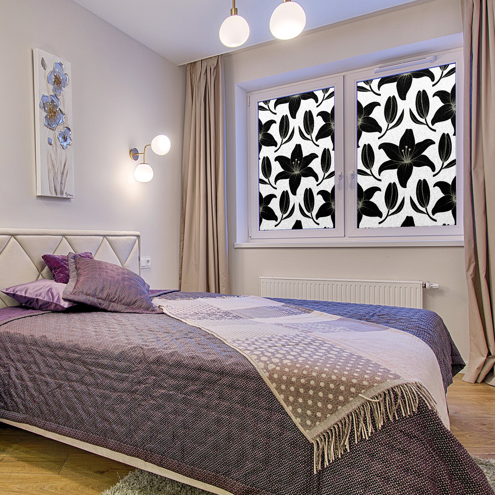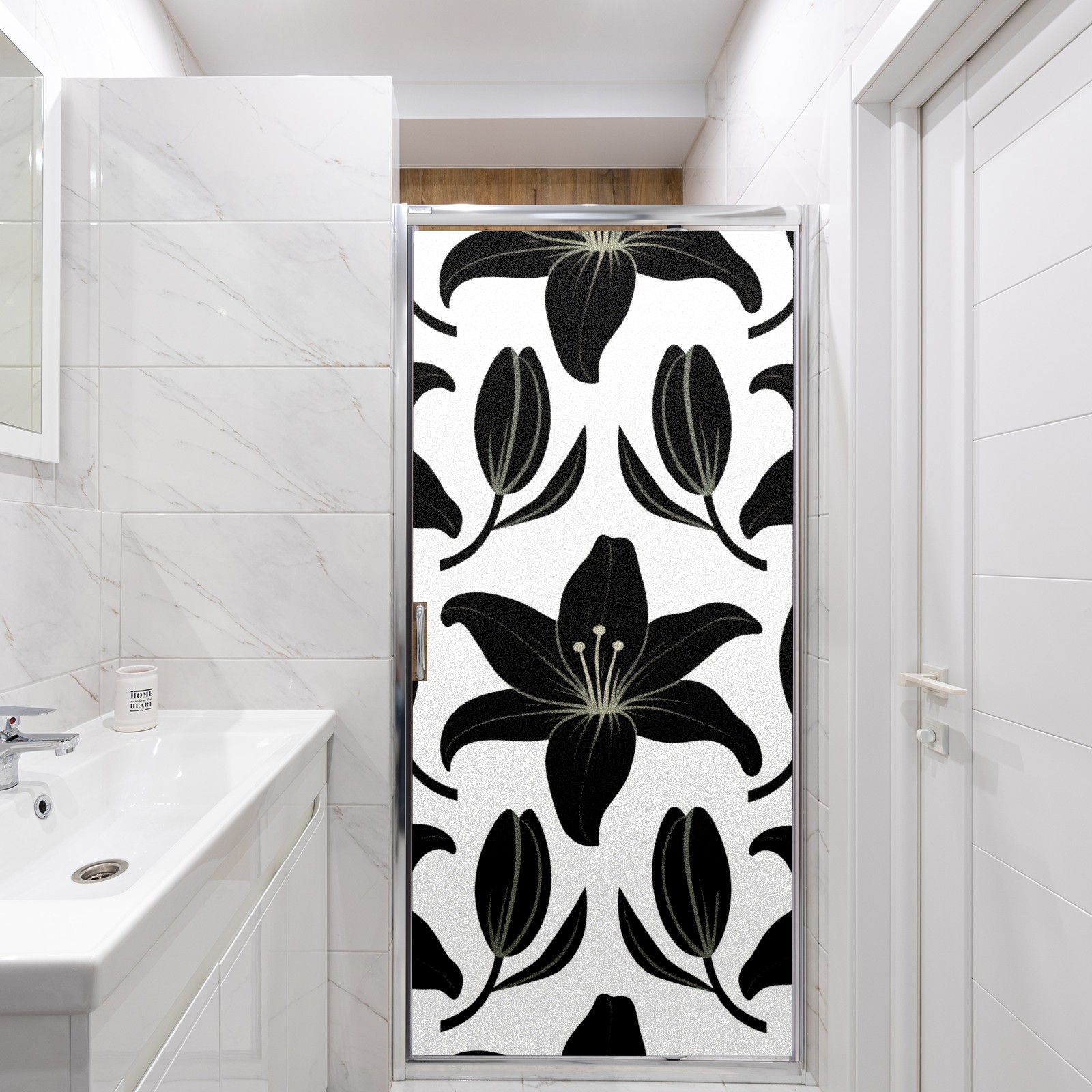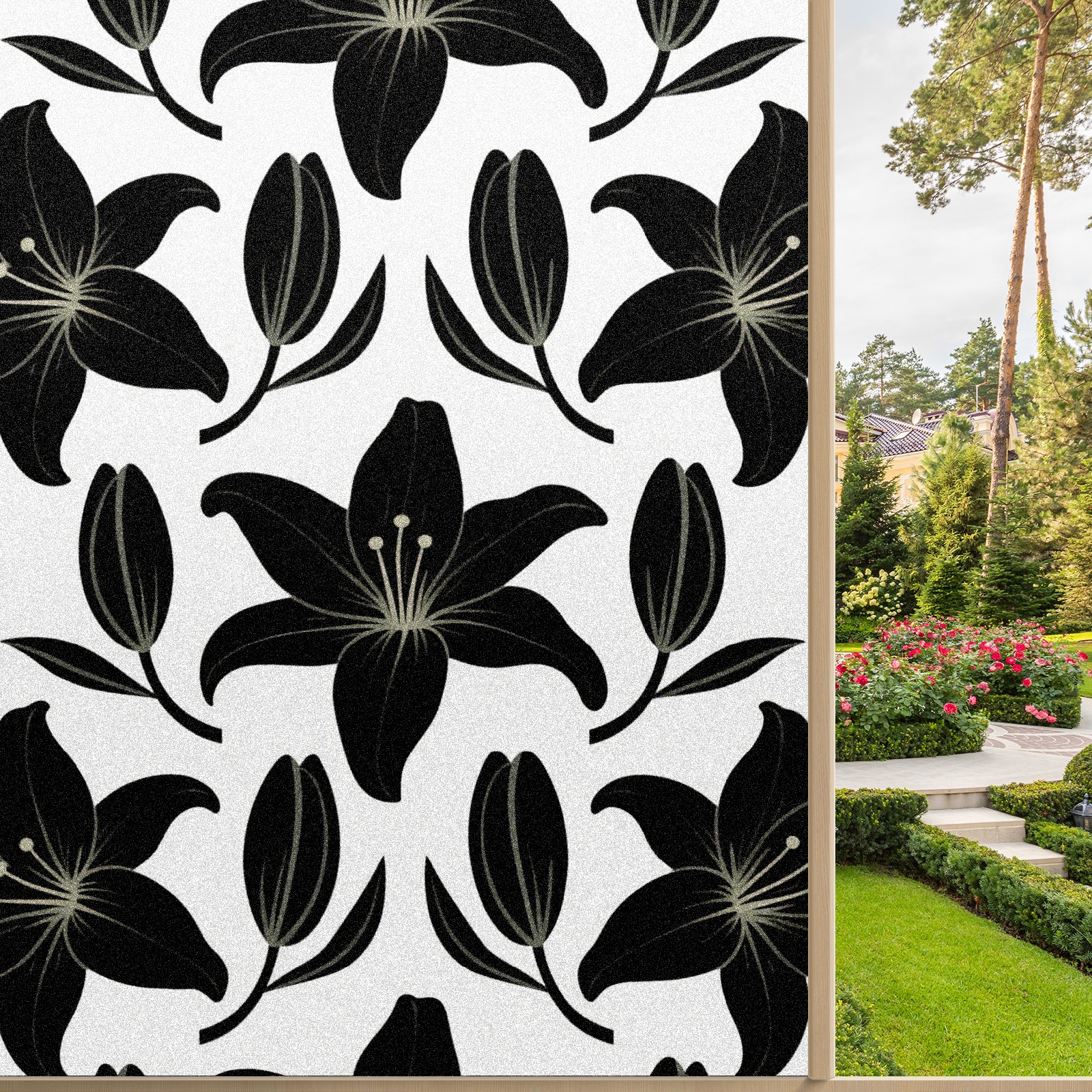 Window Privacy Film Decorative Window Decal Film Removable Static Cling Window Tint for Home Bedroom Sun Blocking Stickers 17.7 x 23.6 Inches Black Lily