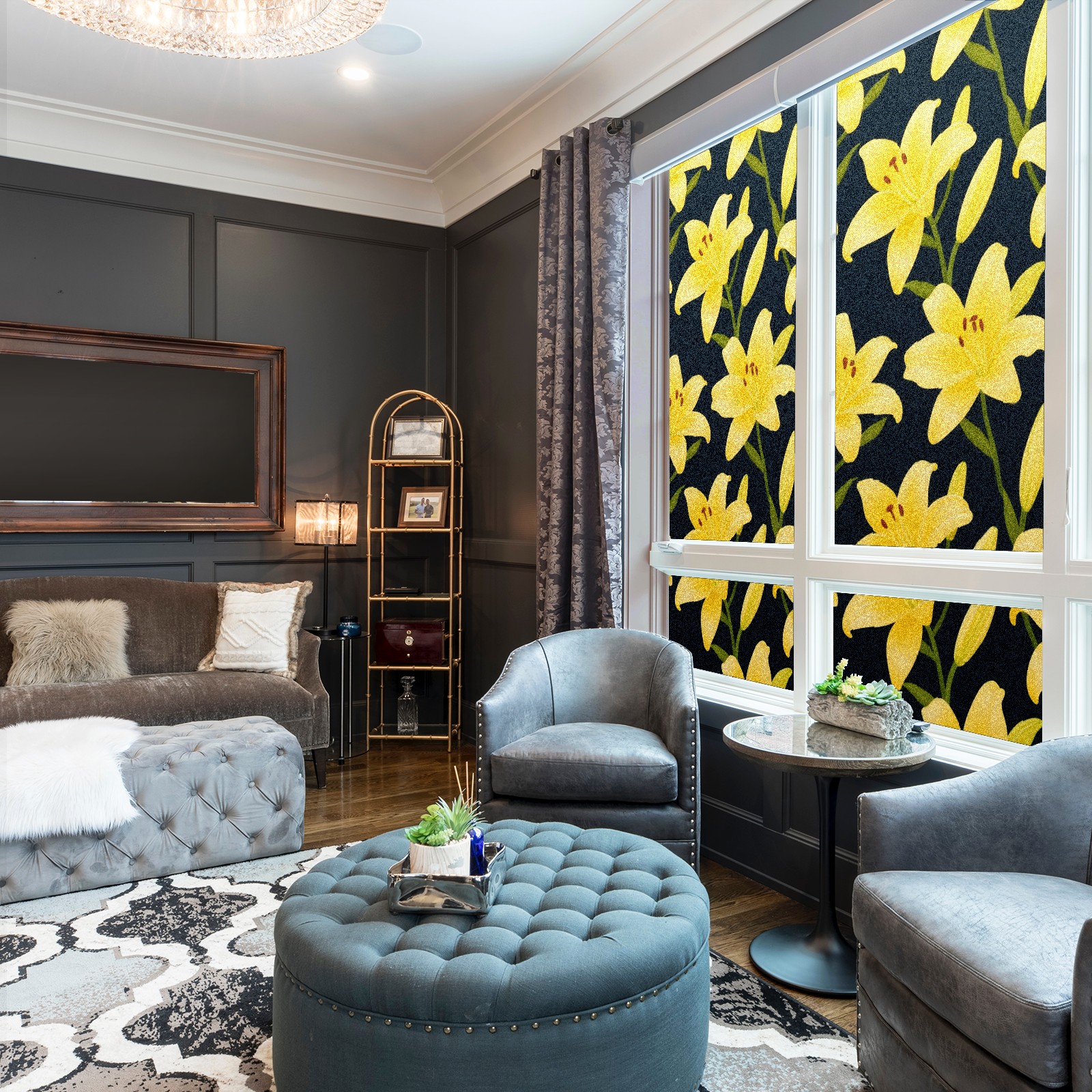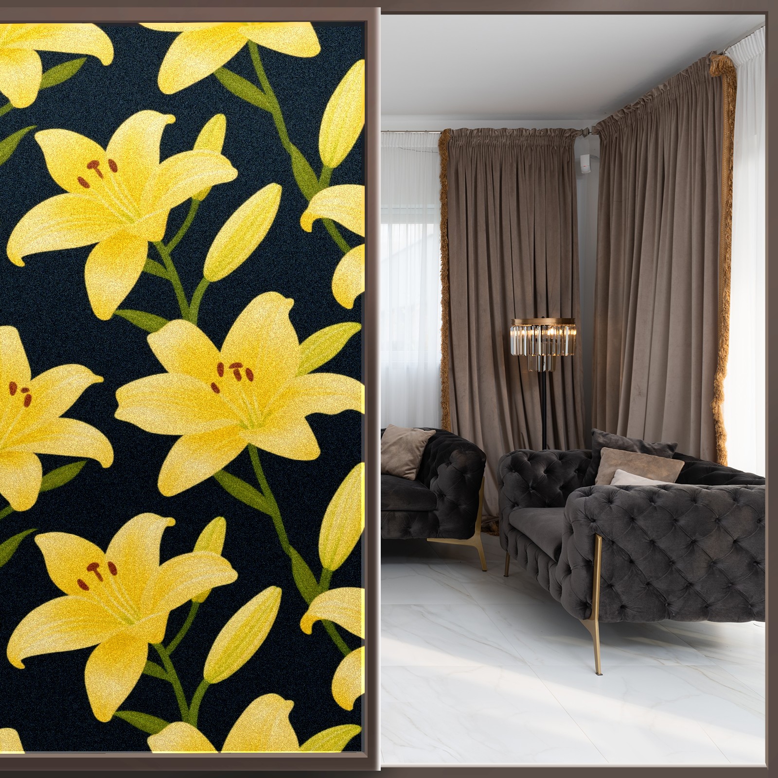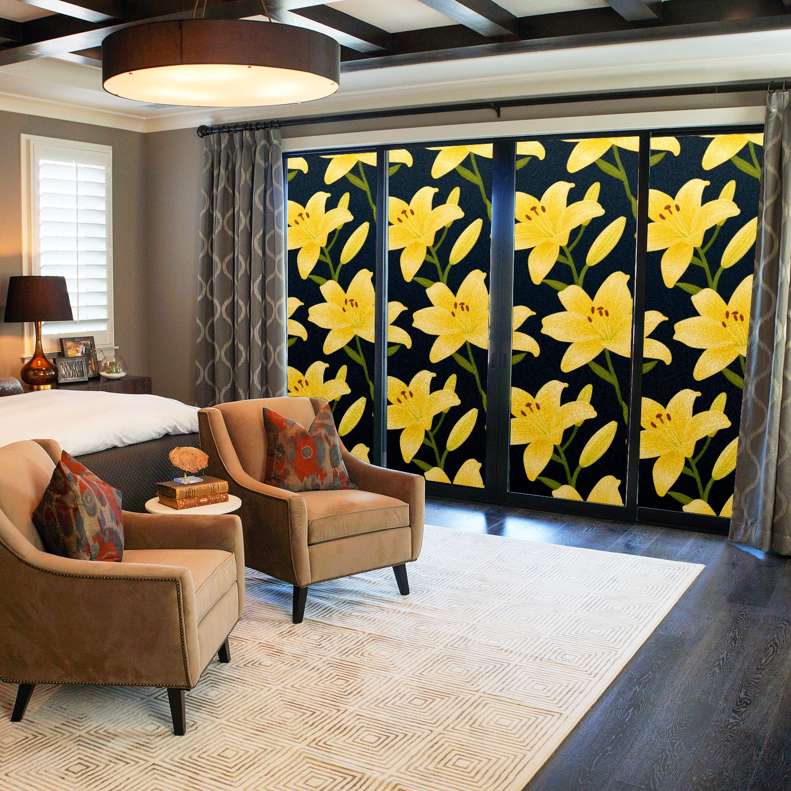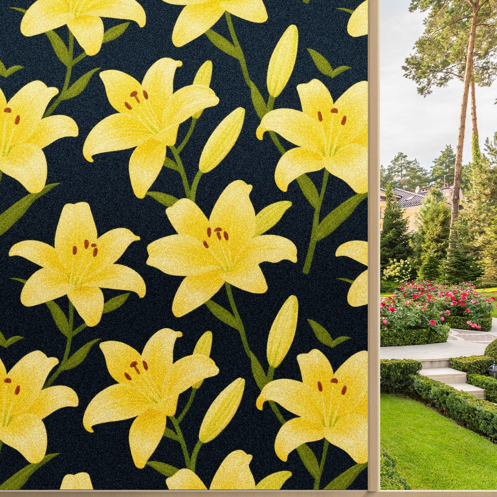 Window Privacy Film Decorative Window Decal Film Removable Static Cling Window Tint for Home Bedroom Sun Blocking Stickers 17.7 x 23.6 Inches Yellow Lily