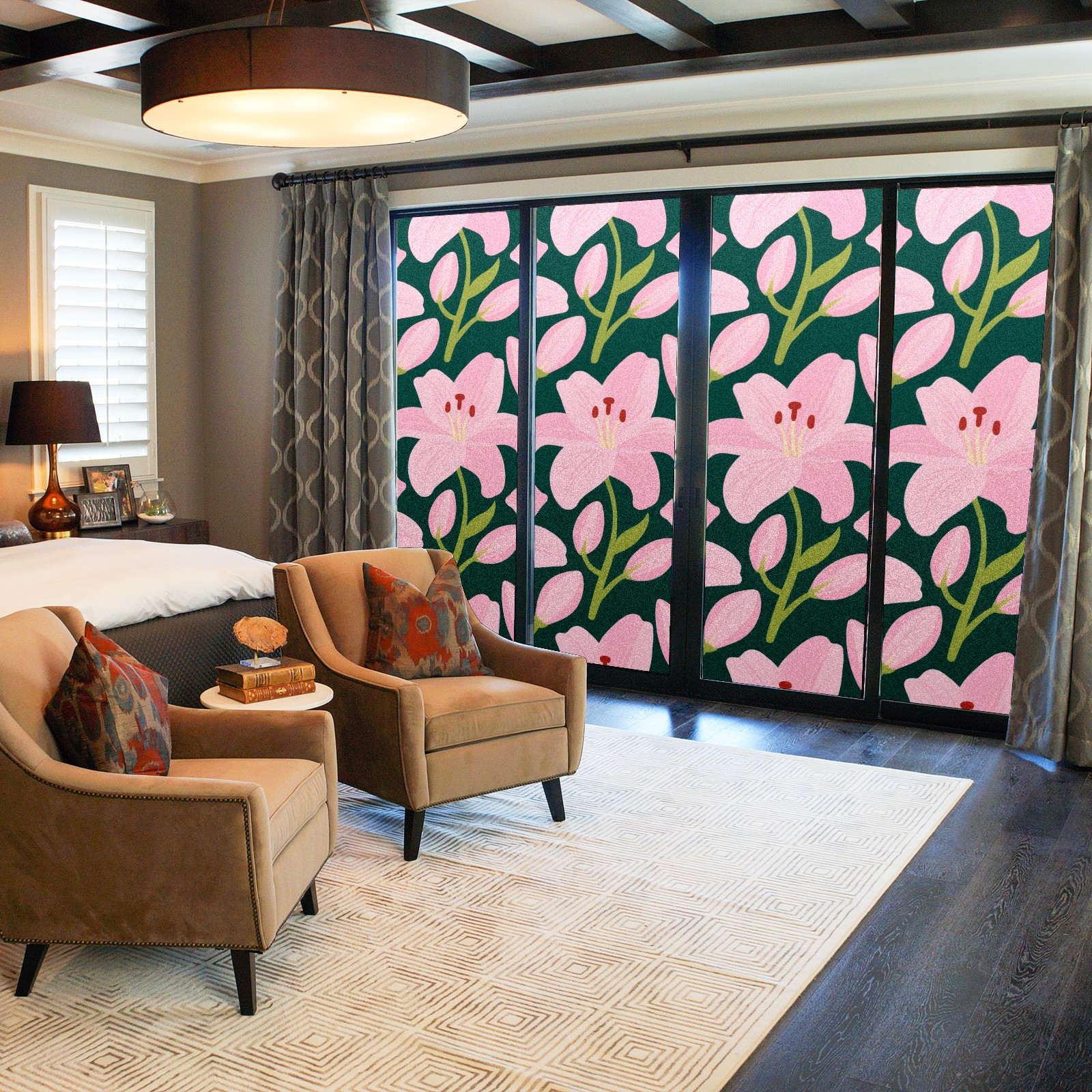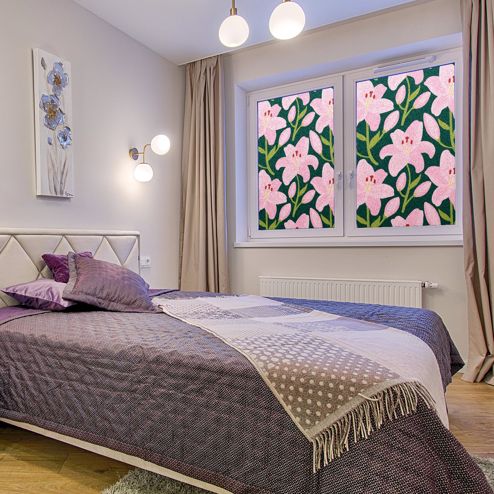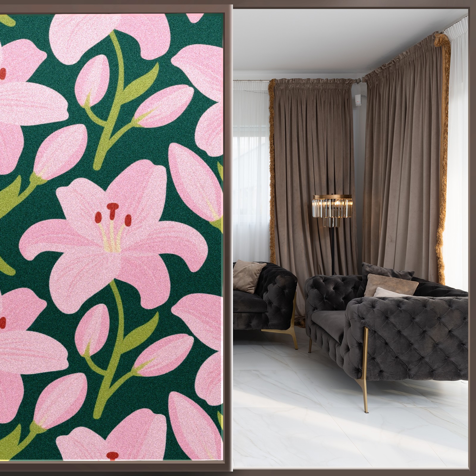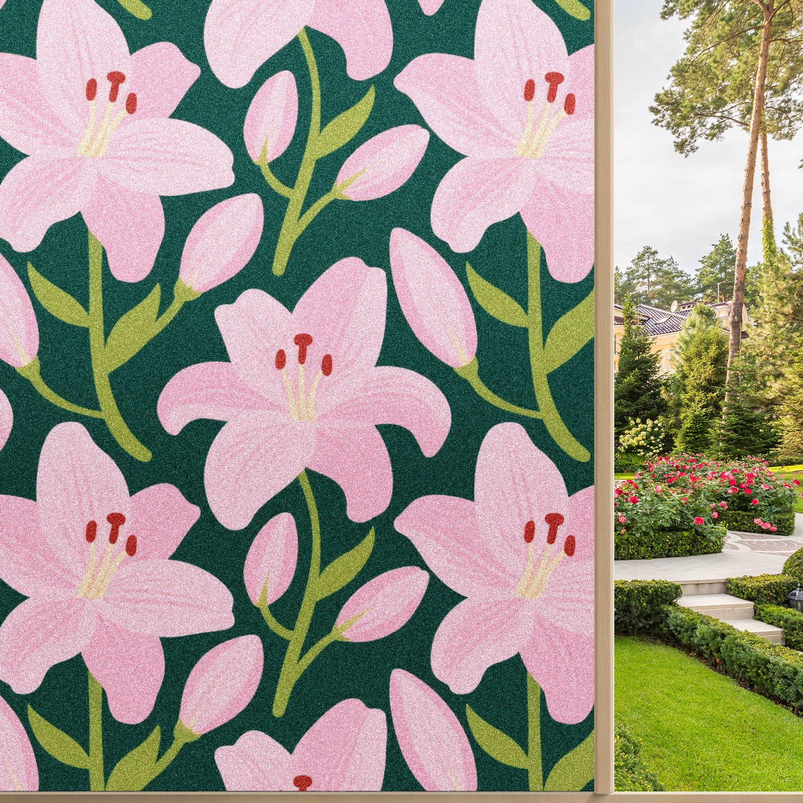Window Privacy Film Decorative Window Decal Film Removable Static Cling Window Tint for Home Bedroom Sun Blocking Stickers 17.7 x 23.6 Inches Pink Lily