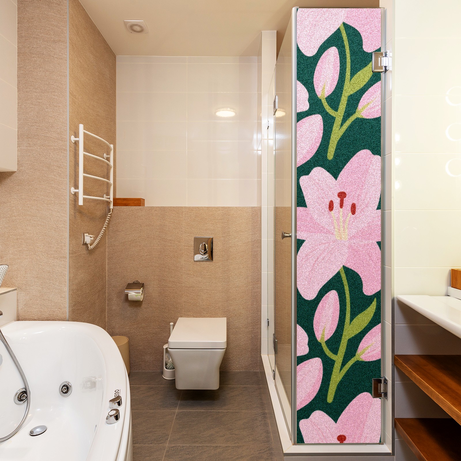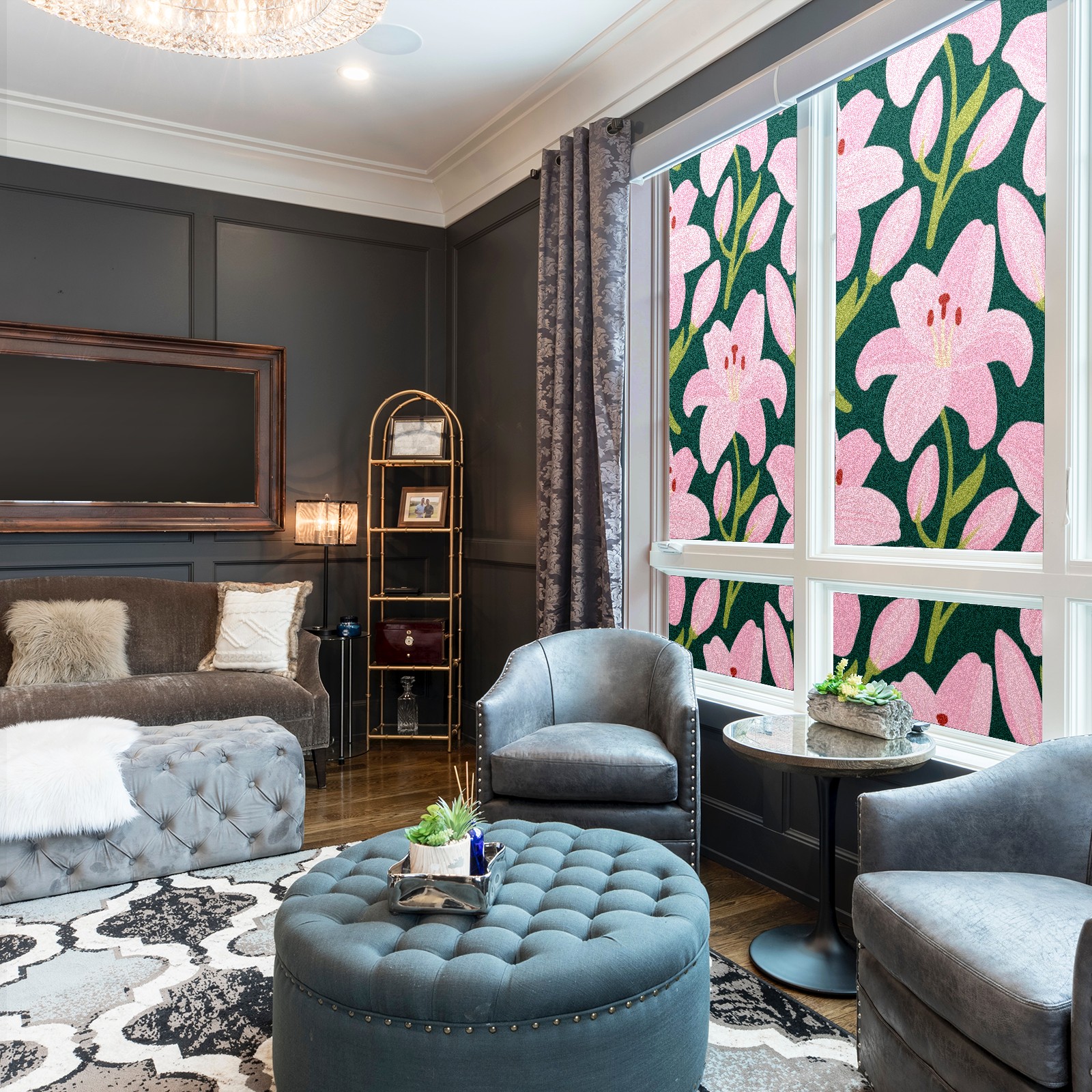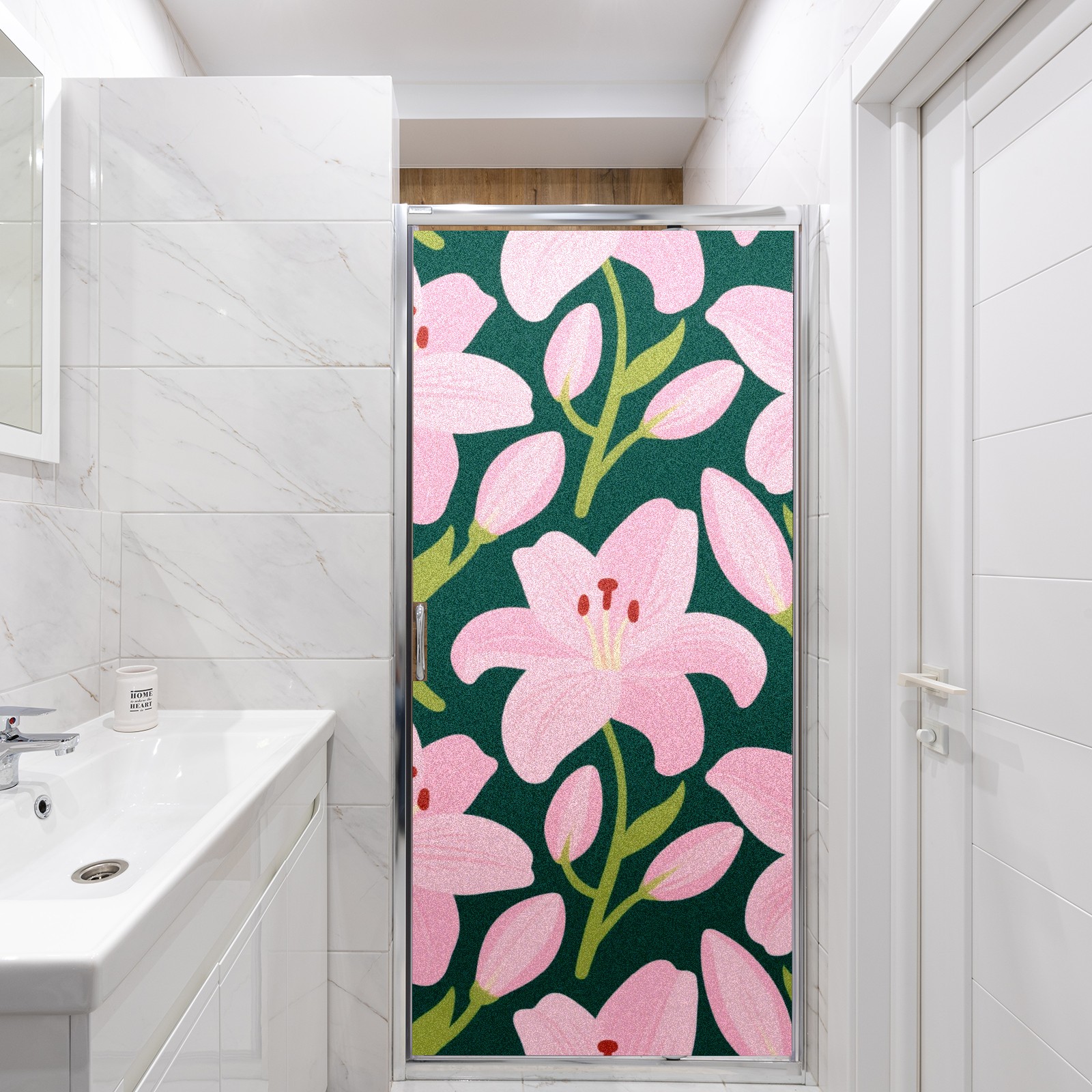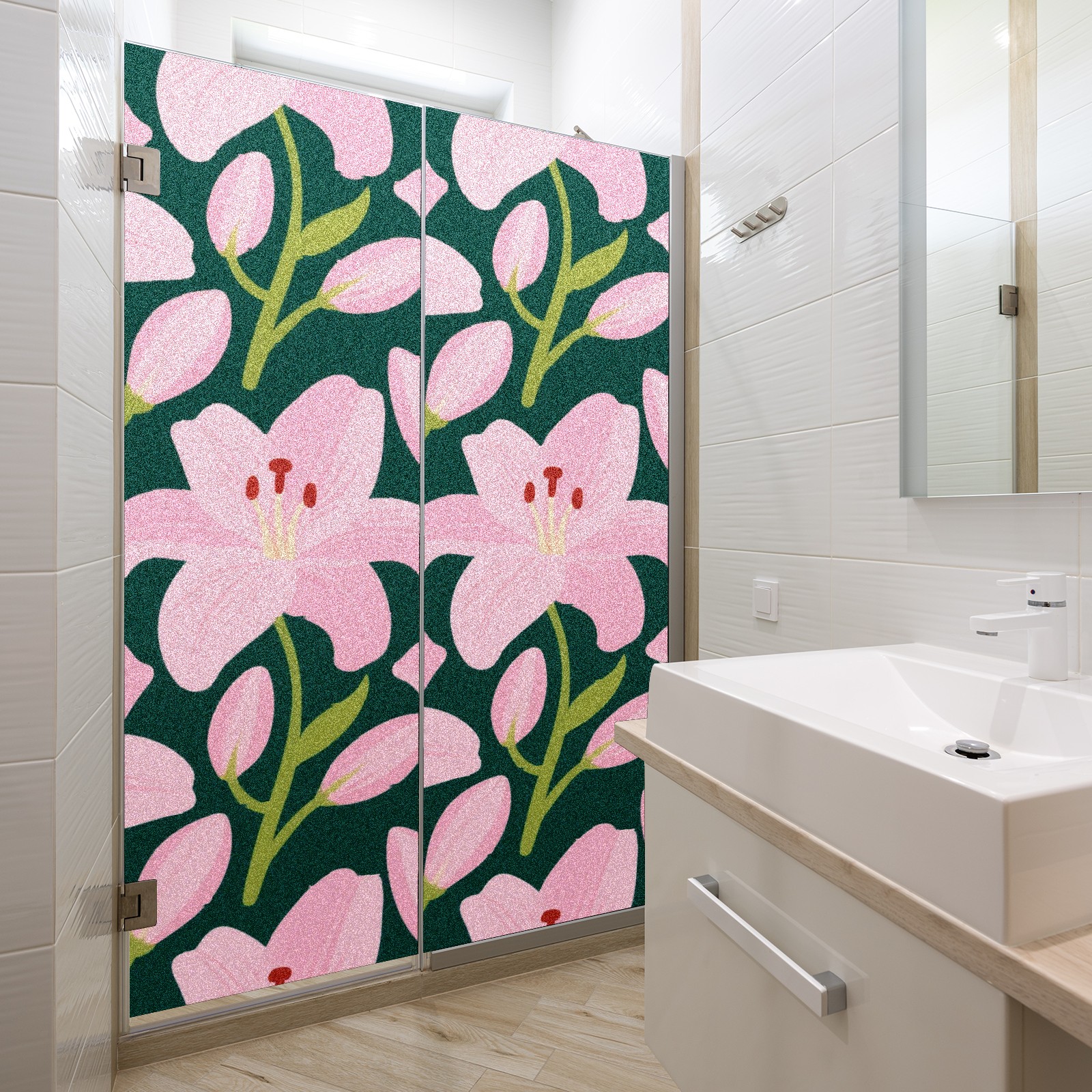 Window Privacy Film Decorative Window Decal Film Removable Static Cling Window Tint for Home Bedroom Sun Blocking Stickers 17.7 x 23.6 Inches Pink Lily