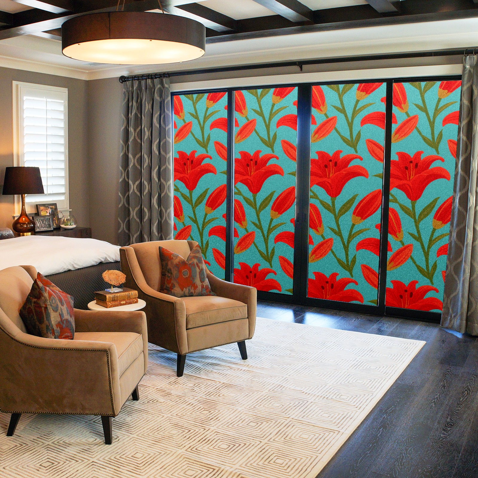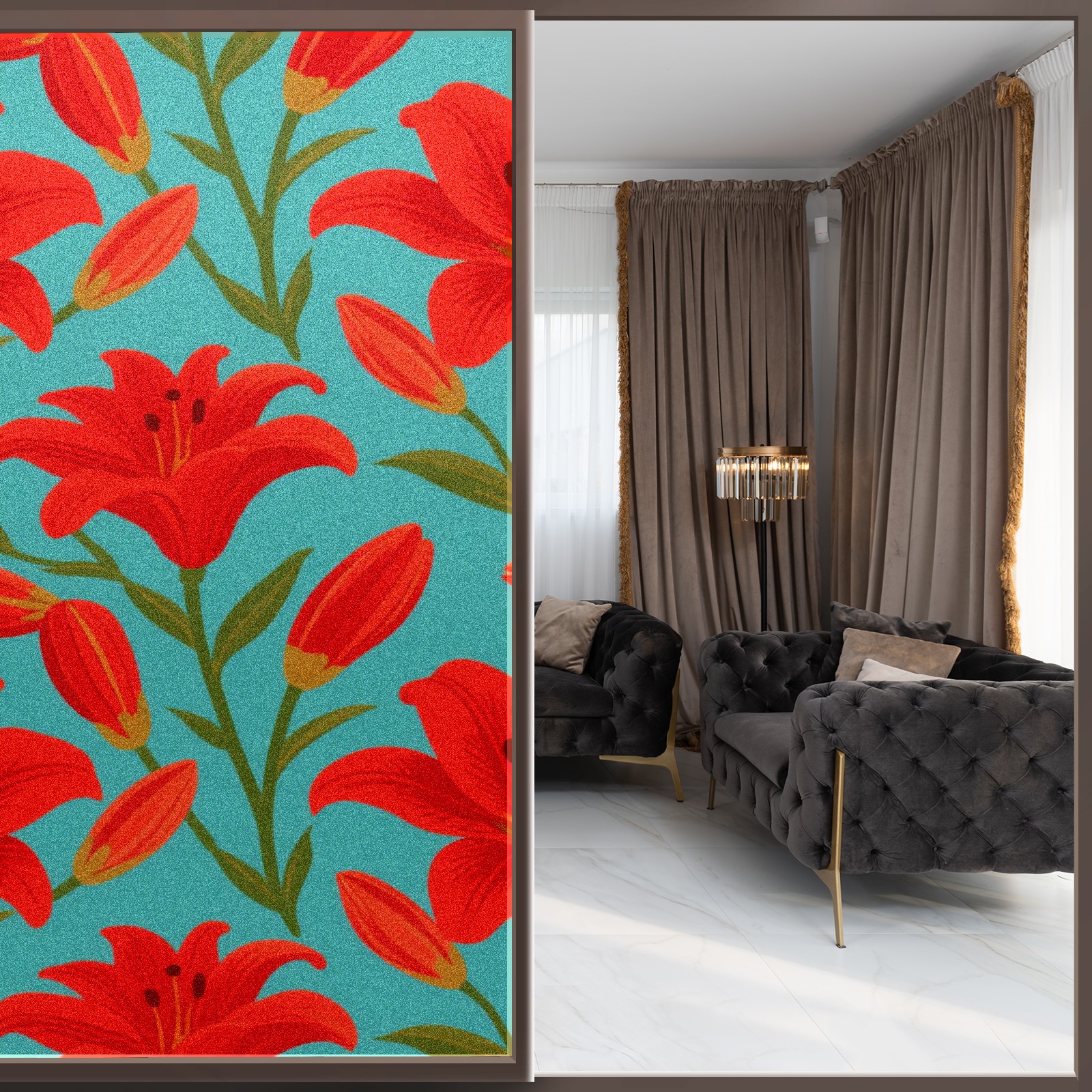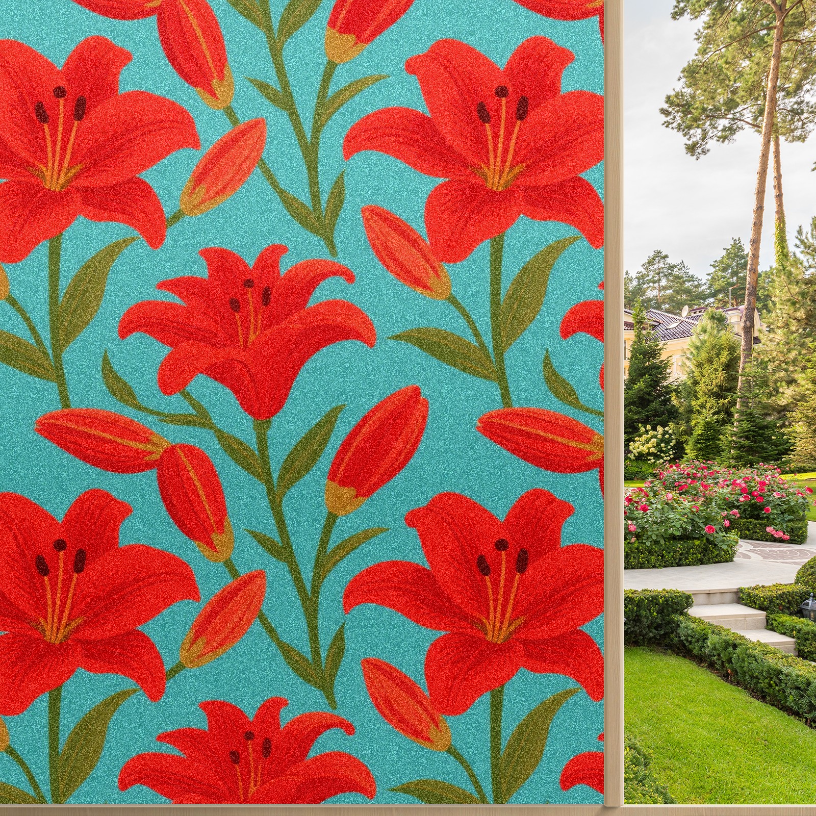 Window Privacy Film Decorative Window Decal Film Removable Static Cling Window Tint for Home Bedroom Sun Blocking Stickers 17.7 x 23.6 Inches Red Lily