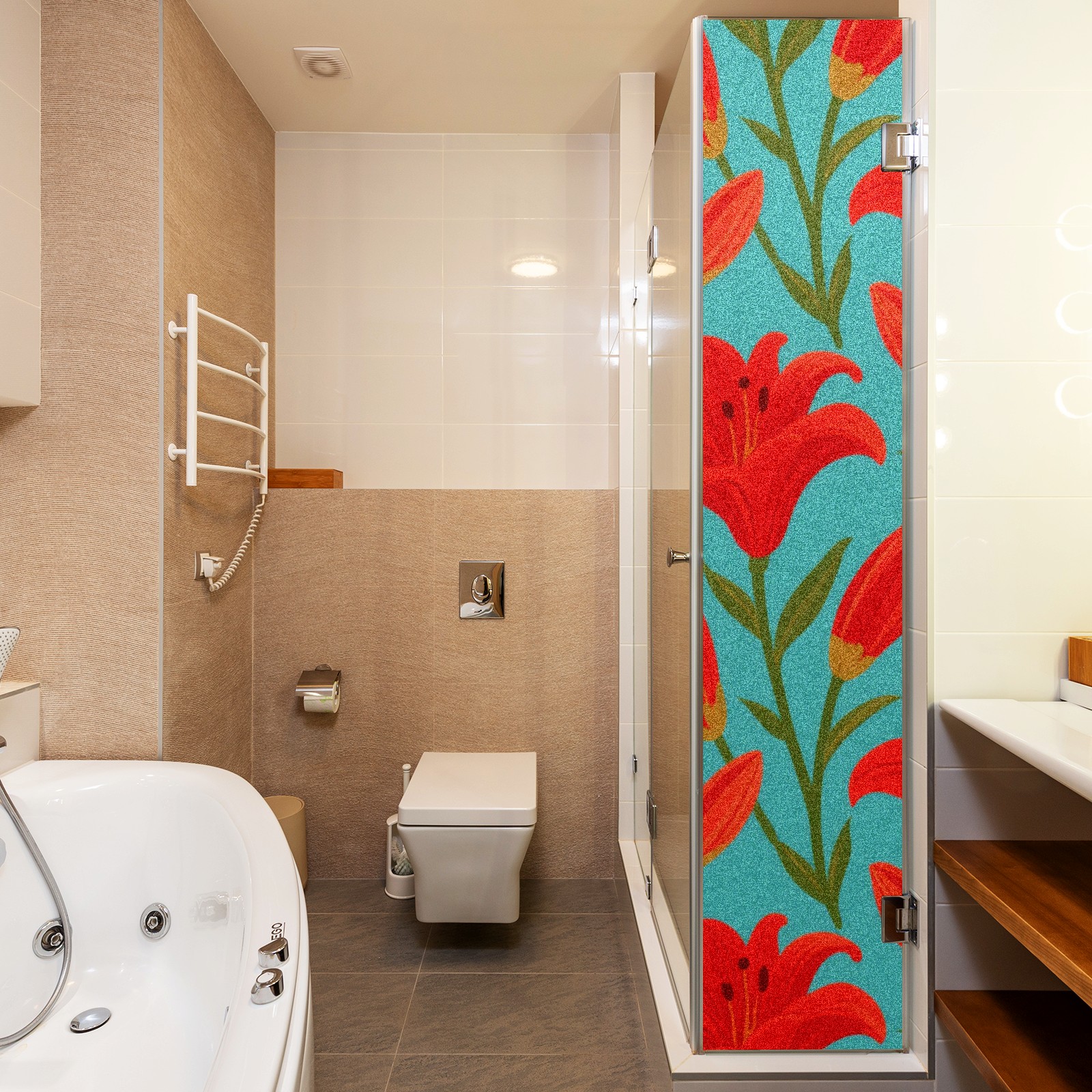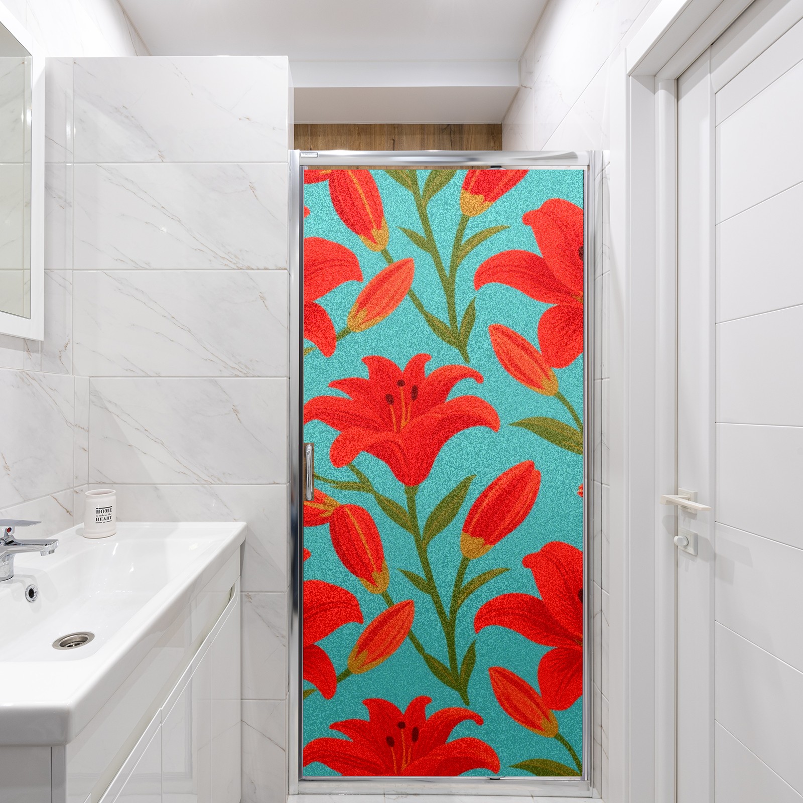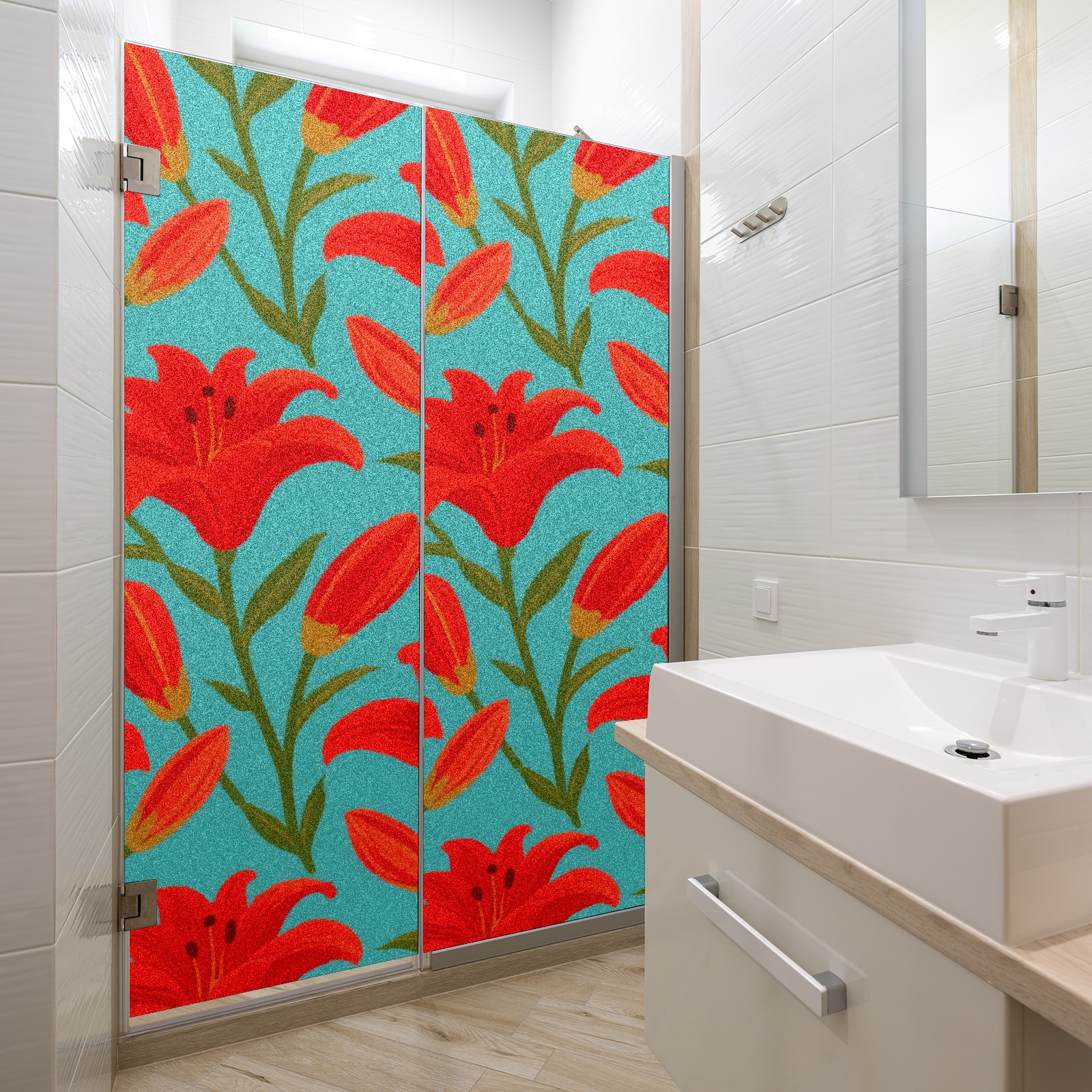 Window Privacy Film Decorative Window Decal Film Removable Static Cling Window Tint for Home Bedroom Sun Blocking Stickers 17.7 x 23.6 Inches Red Lily