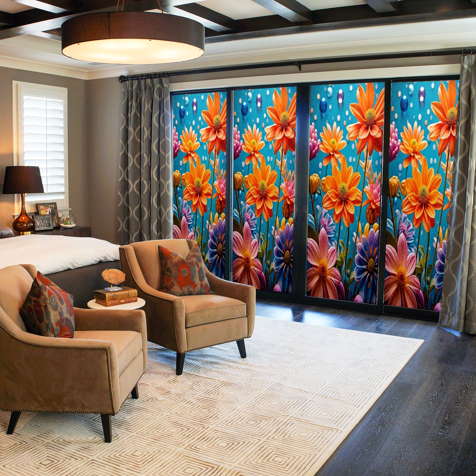 <p>Our film is made of food-grade PET material, safe and odorless, mother and baby families can rest assured that the use of explosion-proof impact resistance more peace of mind. High-definition full-sheet printing, delicate pattern does not fade, easy to enhance the tone of the home, suitable for a variety of decorative styles. Single-sided frosted design, effective protection of privacy, clear view during the day, night anti-peeping without embarrassment. Electrostatic adsorption installation, glue-free without leaving marks, can be repeatedly adjusted for use. It can also block ultraviolet rays, sunscreen insulation, protect furniture from fading, energy saving and more comfortable!&nbsp;&nbsp;</p>