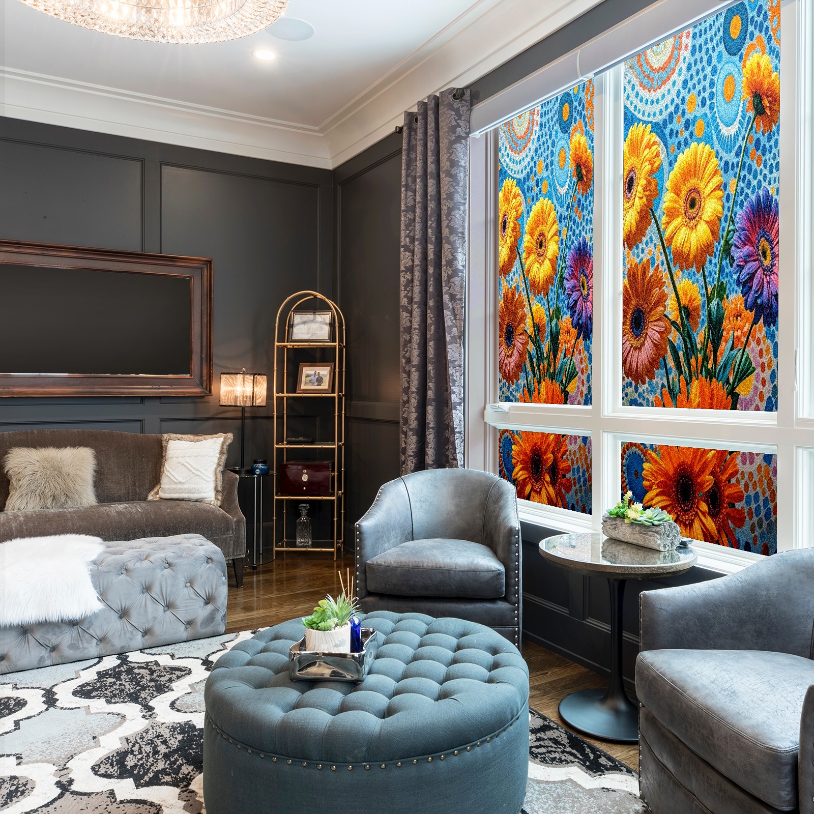 • <p>Our film is made of food-grade PET material, safe and odorless, mother and baby families can rest assured that the use of explosion-proof impact resistance more peace of mind. High-definition full-sheet printing, delicate pattern does not fade, easy to enhance the tone of the home, suitable for a variety of decorative styles. Single-sided frosted design, effective protection of privacy, clear view during the day, night anti-peeping without embarrassment. Electrostatic adsorption installation, glue-free without leaving marks, can be repeatedly adjusted for use. It can also block ultraviolet rays, sunscreen insulation, protect furniture from fading, energy saving and more comfortable!&nbsp;&nbsp;</p>