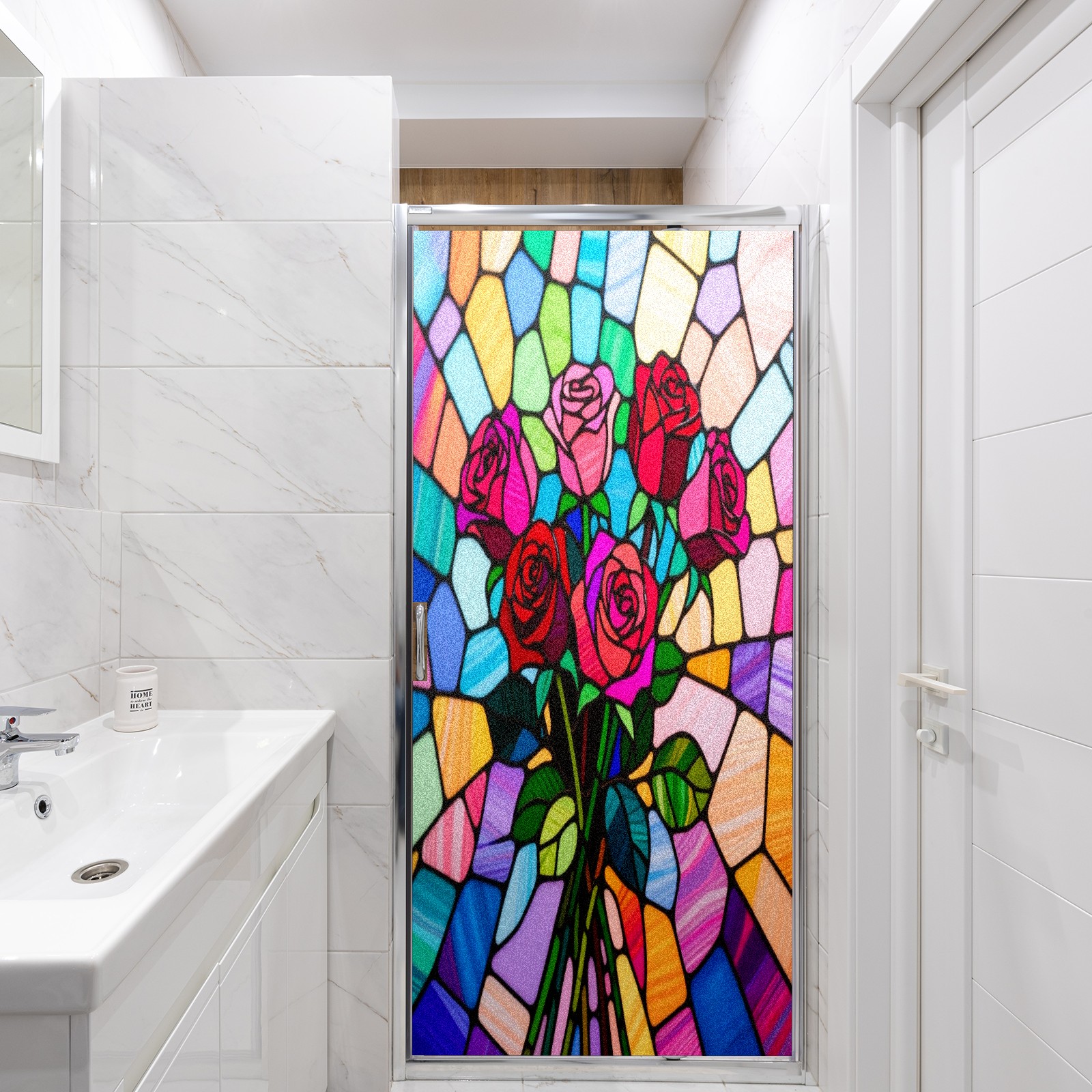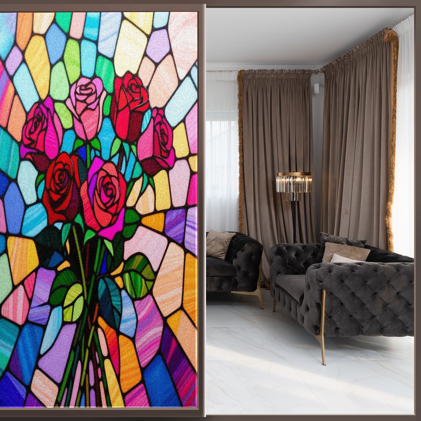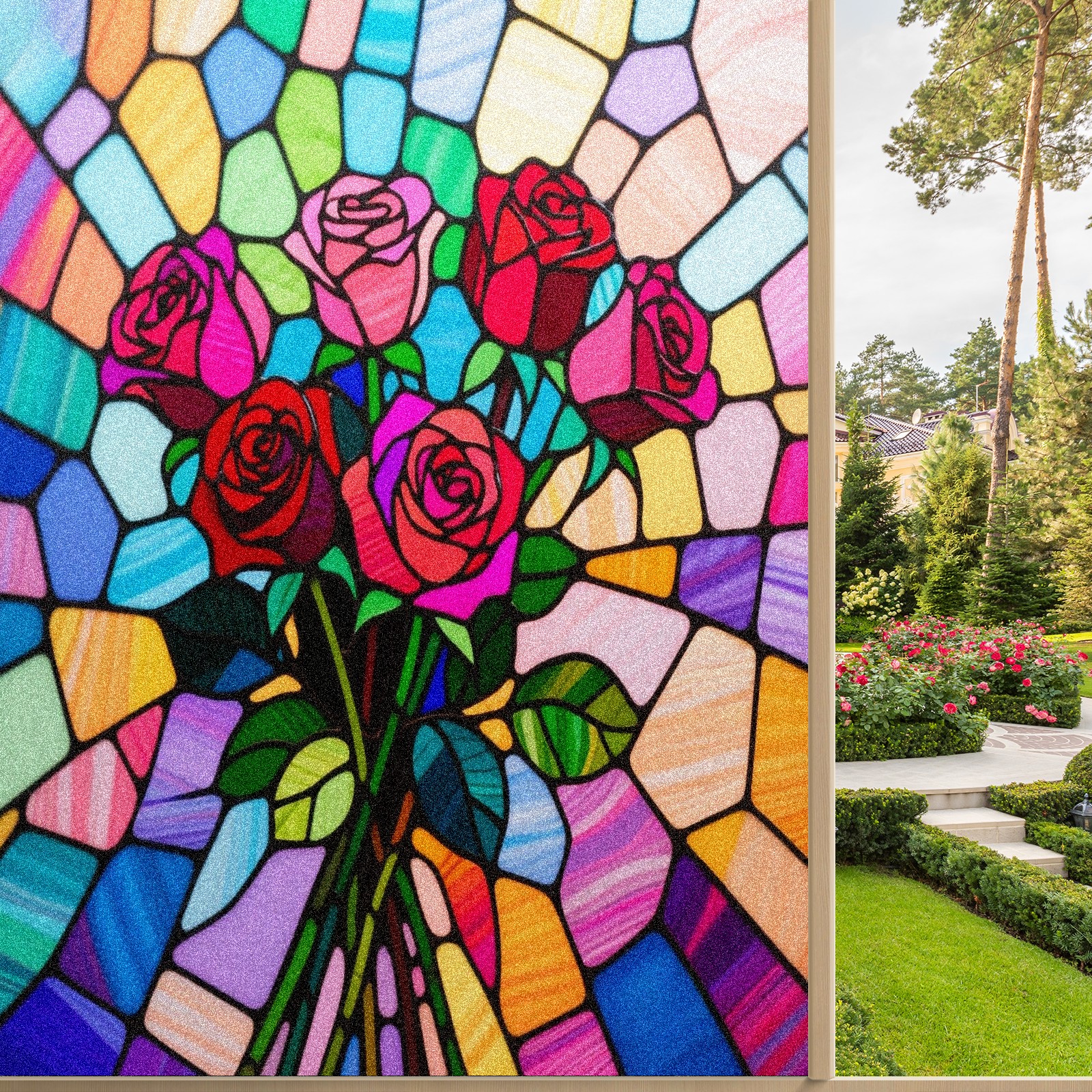 Matte Privacy Window Film | Static Cling, One-Way Glass Insulation Film, UV Blocking & Heat Insulating | Non-Adhesive, Removable for Home, Office & BathroomRose Glass