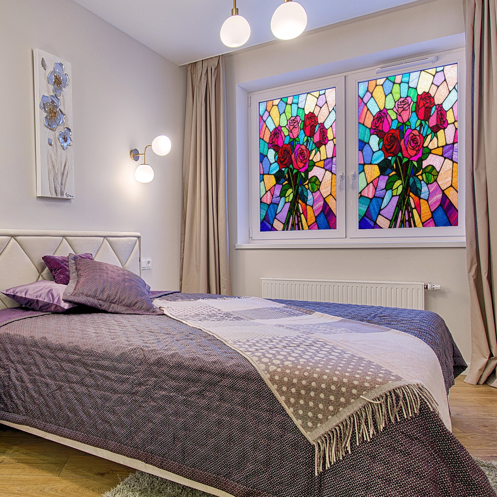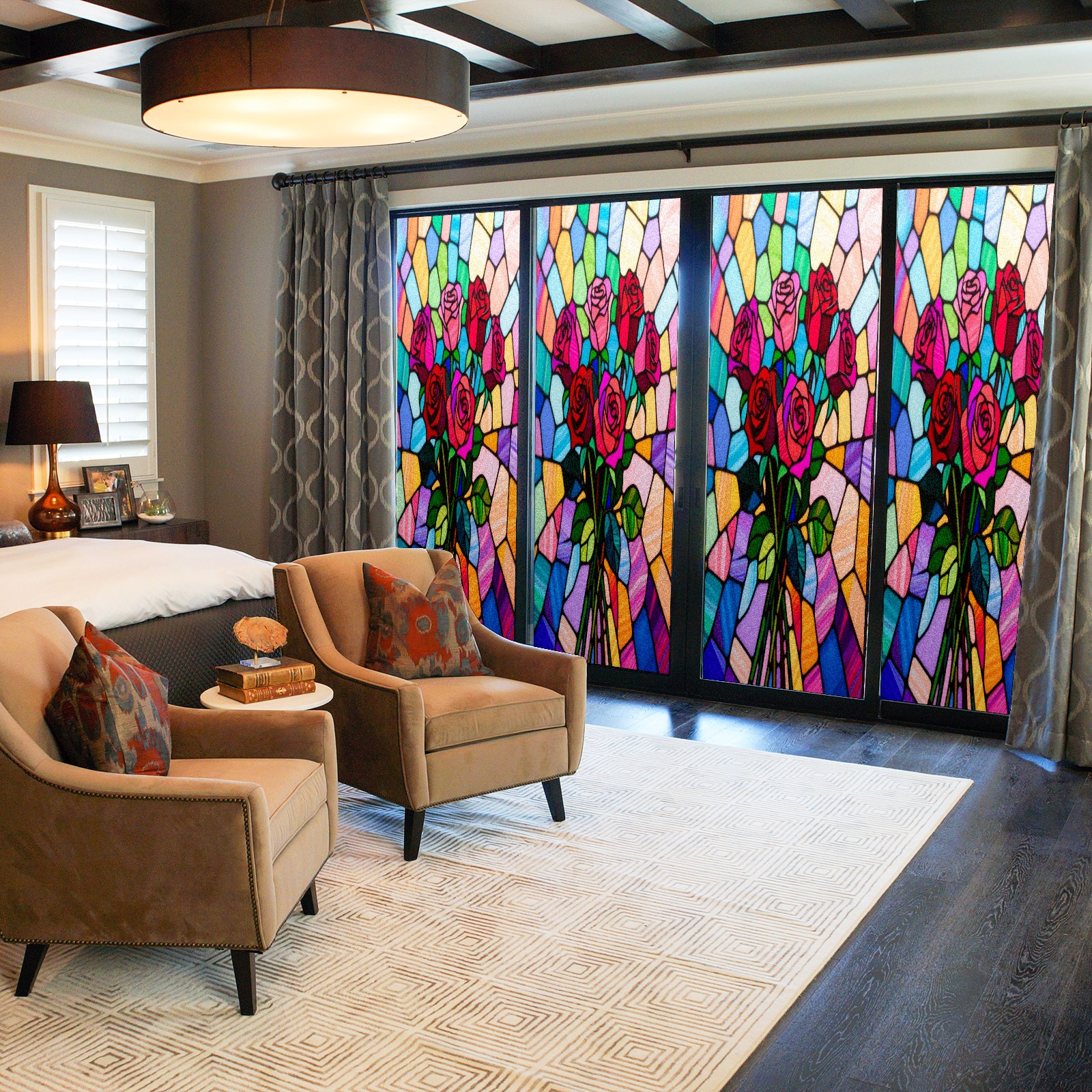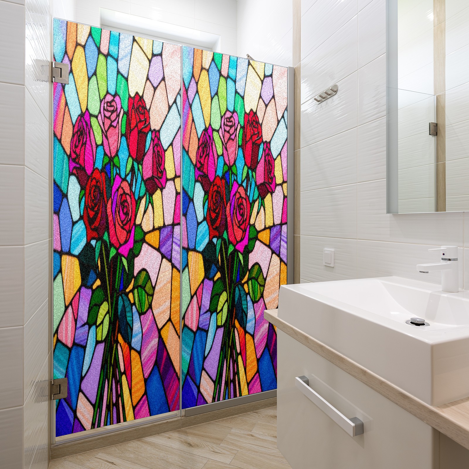 Matte Privacy Window Film | Static Cling, One-Way Glass Insulation Film, UV Blocking & Heat Insulating | Non-Adhesive, Removable for Home, Office & BathroomRose Glass