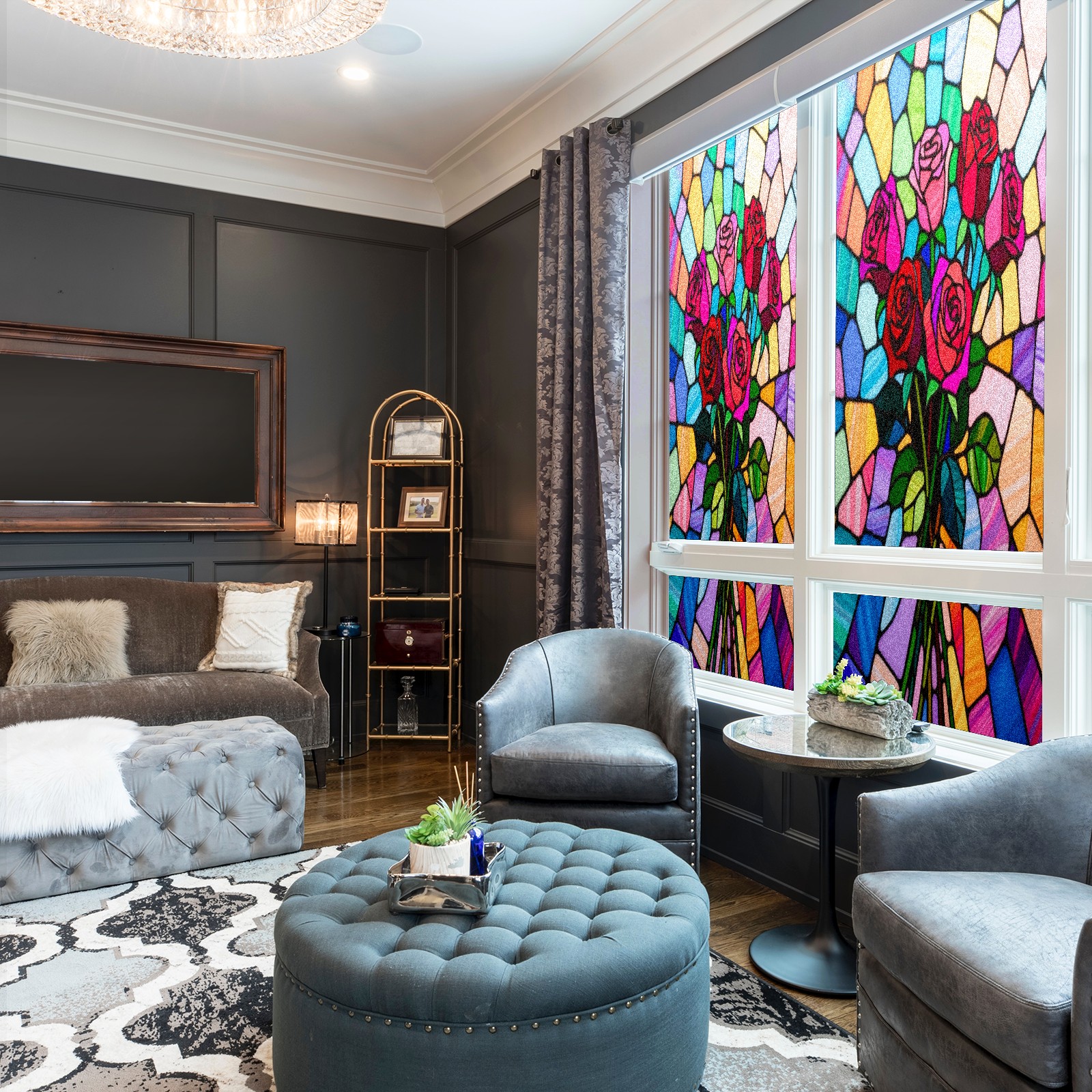 • <p>Our film is made of food-grade PET material, safe and odorless, mother and baby families can rest assured that the use of explosion-proof impact resistance more peace of mind. High-definition full-sheet printing, delicate pattern does not fade, easy to enhance the tone of the home, suitable for a variety of decorative styles. Single-sided frosted design, effective protection of privacy, clear view during the day, night anti-peeping without embarrassment. Electrostatic adsorption installation, glue-free without leaving marks, can be repeatedly adjusted for use. It can also block ultraviolet rays, sunscreen insulation, protect furniture from fading, energy saving and more comfortable!&nbsp;&nbsp;</p>