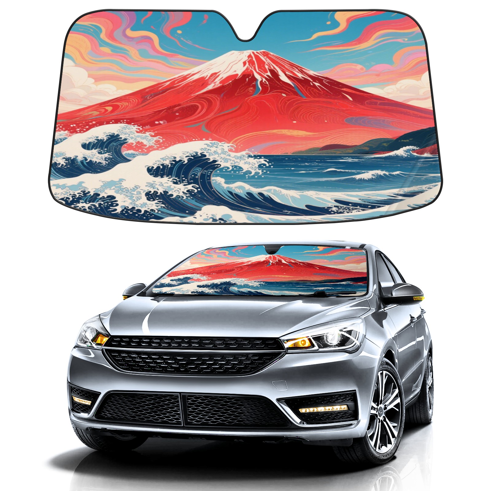 Foldable Aluminum Foil Polyester Car Sunshade Pad | 99% Heat Insulation & Sun Protection | Transparent Number Pocket | Lightweight & Portable | Fits Cars/SUVs/Trucks 13392975020224440