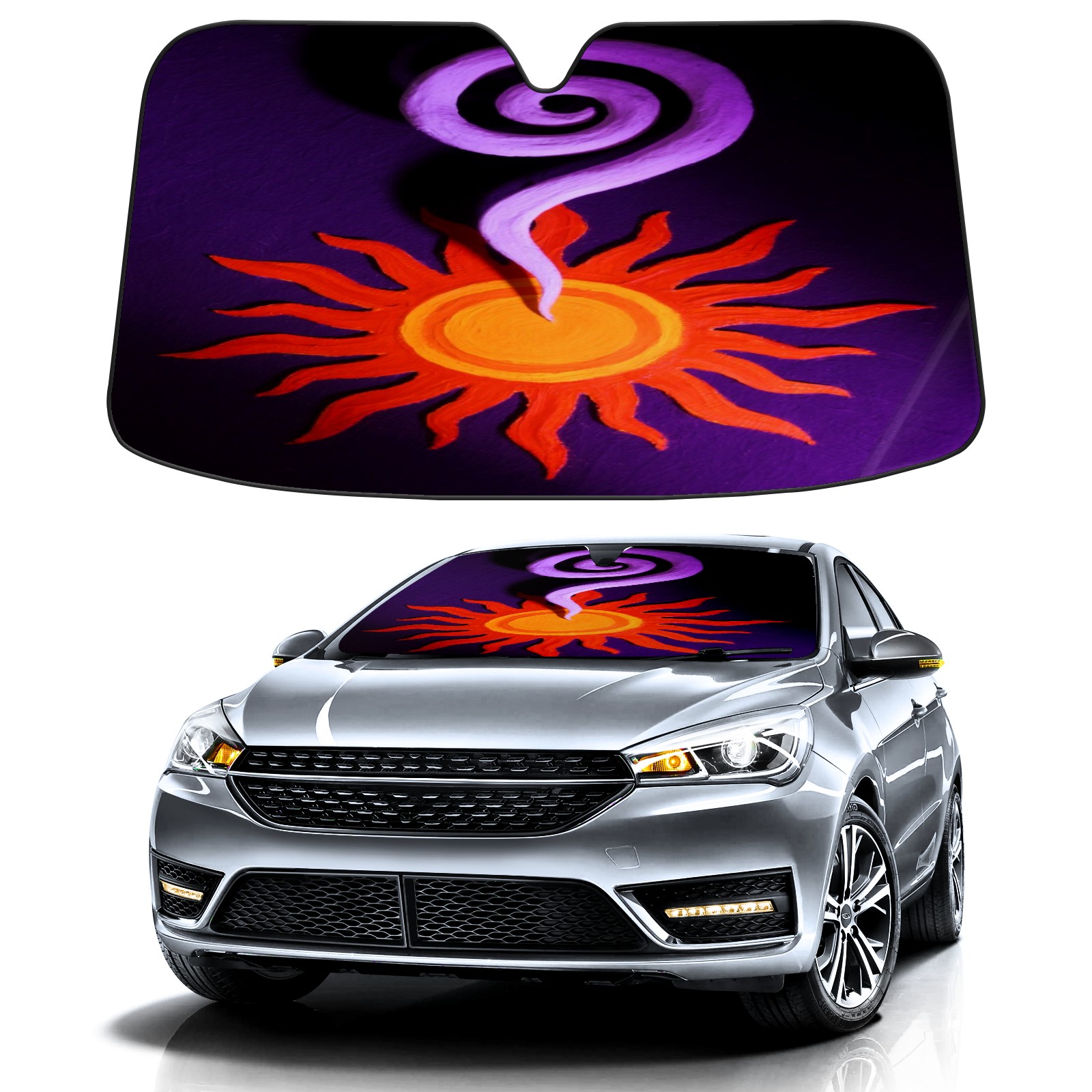 Foldable Aluminum Foil Polyester Car Sunshade Pad | 99% Heat Insulation & Sun Protection | Transparent Number Pocket | Lightweight & Portable | Fits Cars/SUVs/Trucks 13392973805349486