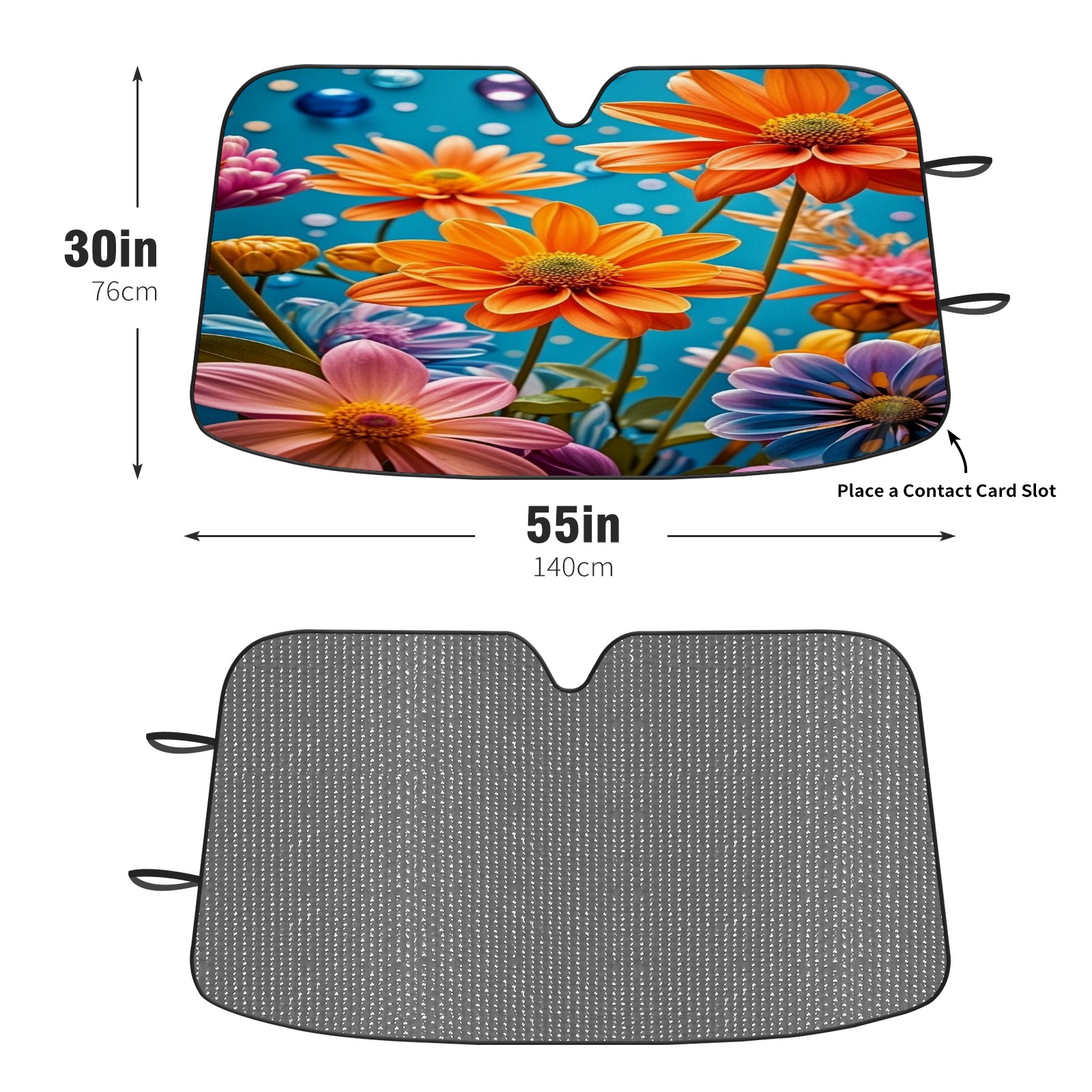 Foldable Aluminum Foil Polyester Car Sunshade Pad | 99% Heat Insulation & Sun Protection | Transparent Number Pocket | Lightweight & Portable | Fits Cars/SUVs/Trucks 13392973556257458
