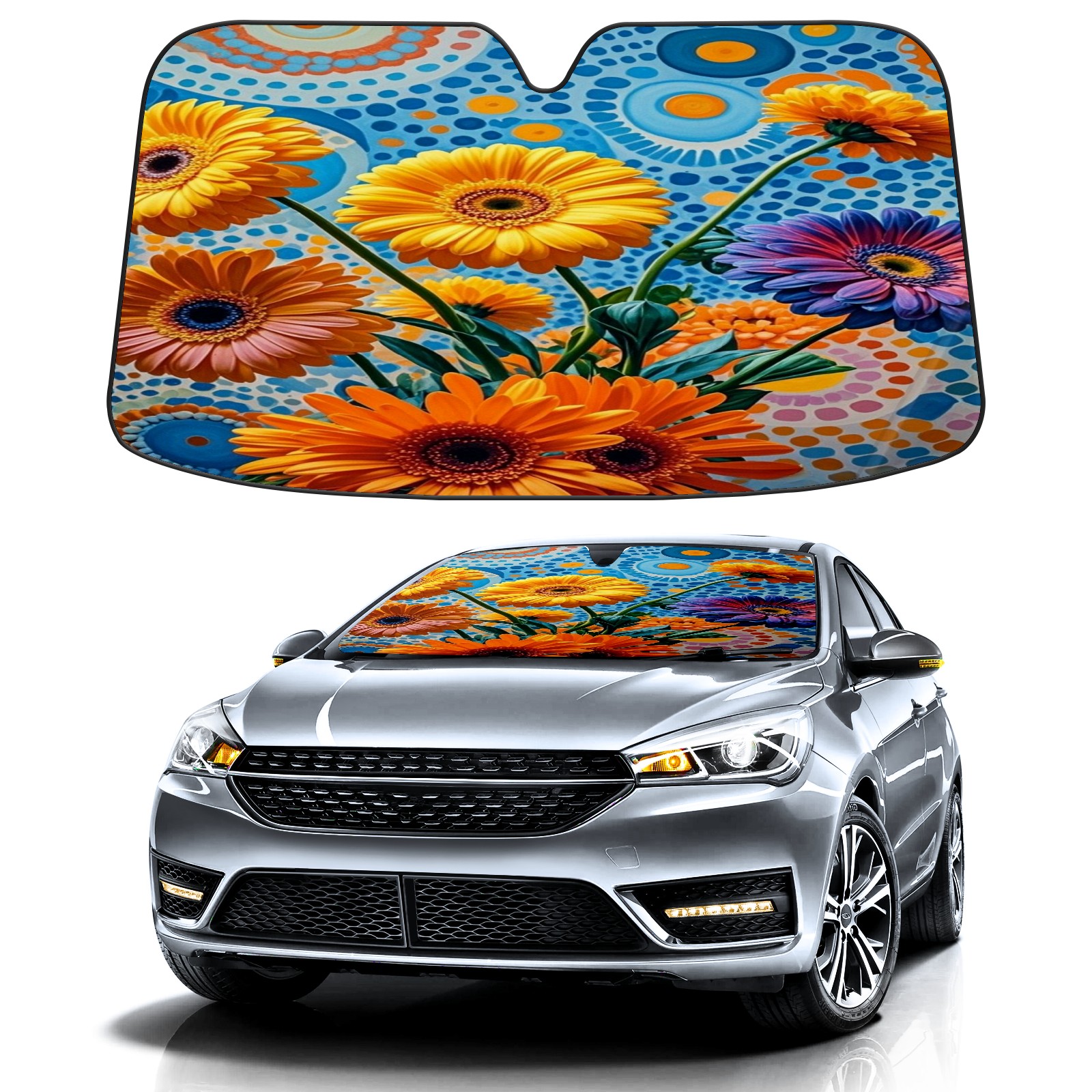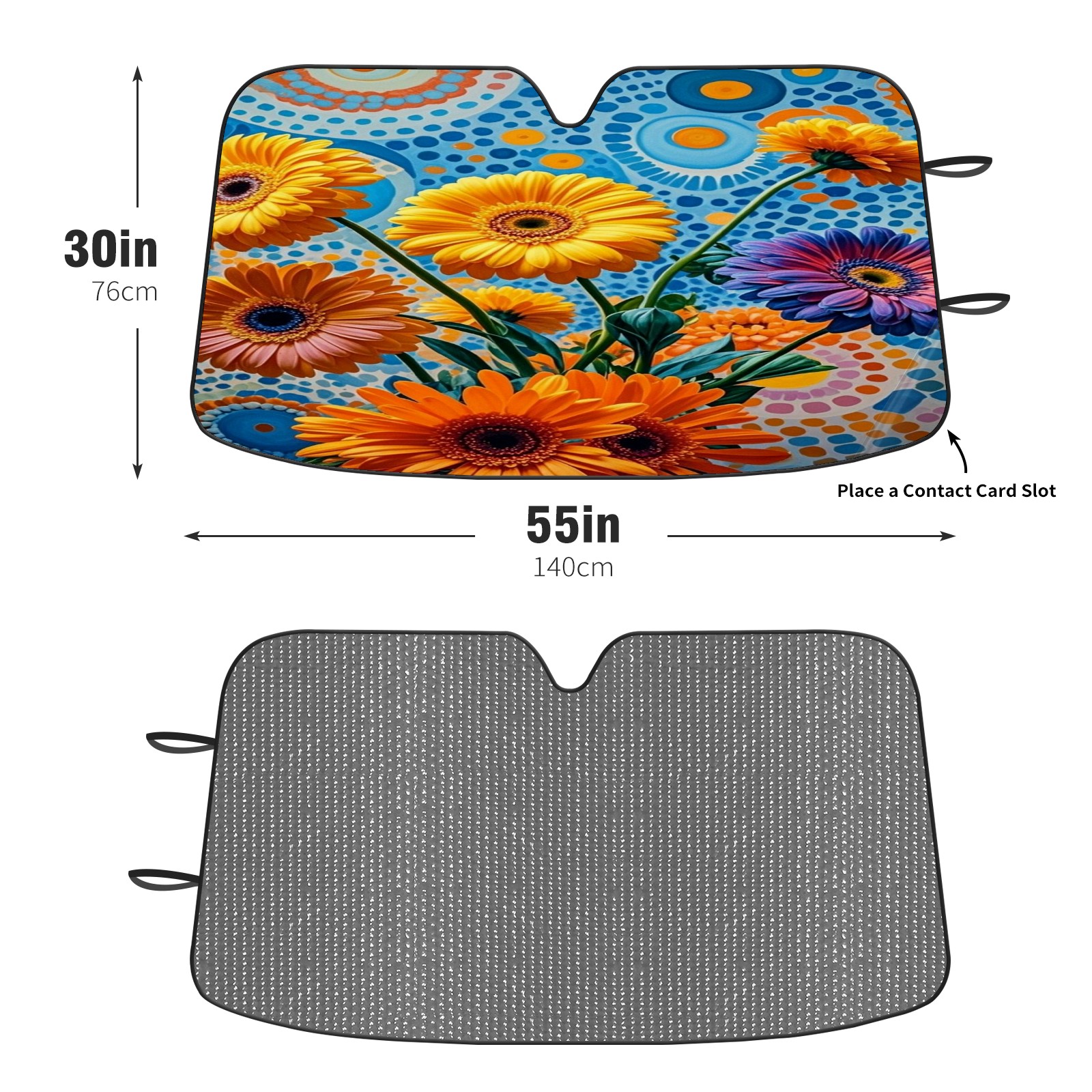 Foldable Aluminum Foil Polyester Car Sunshade Pad | 99% Heat Insulation & Sun Protection | Transparent Number Pocket | Lightweight & Portable | Fits Cars/SUVs/Trucks 13392973526459698