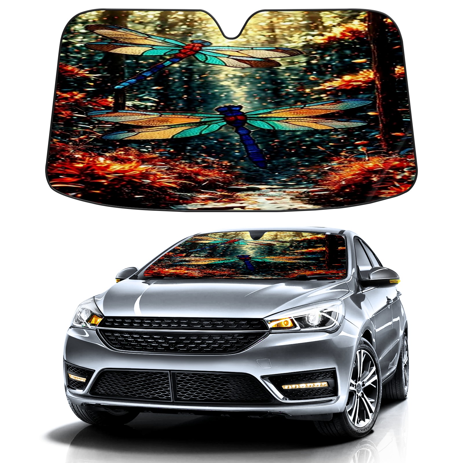 Foldable Aluminum Foil Polyester Car Sunshade Pad | 99% Heat Insulation & Sun Protection | Transparent Number Pocket | Lightweight & Portable | Fits Cars/SUVs/Trucks 13392973462275537