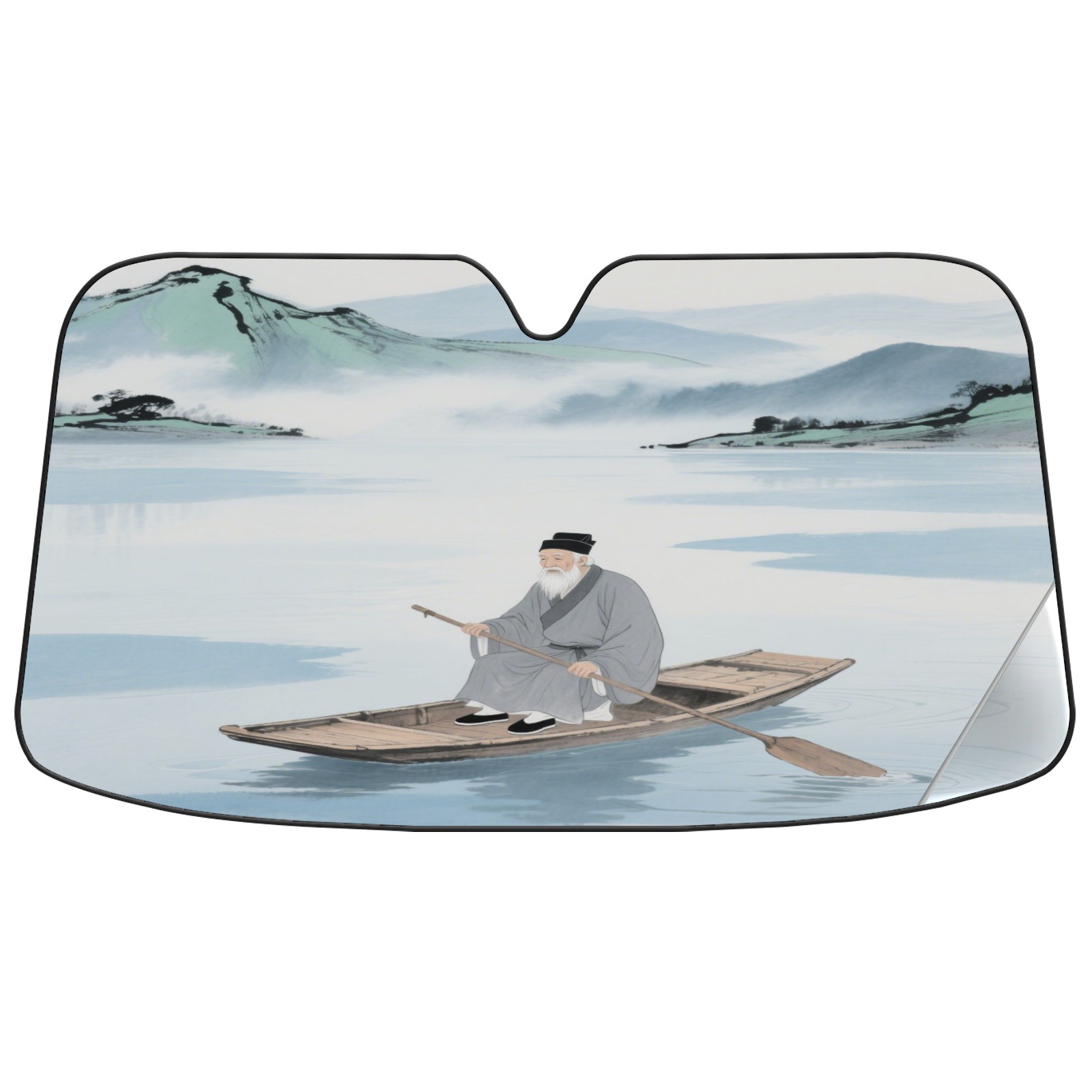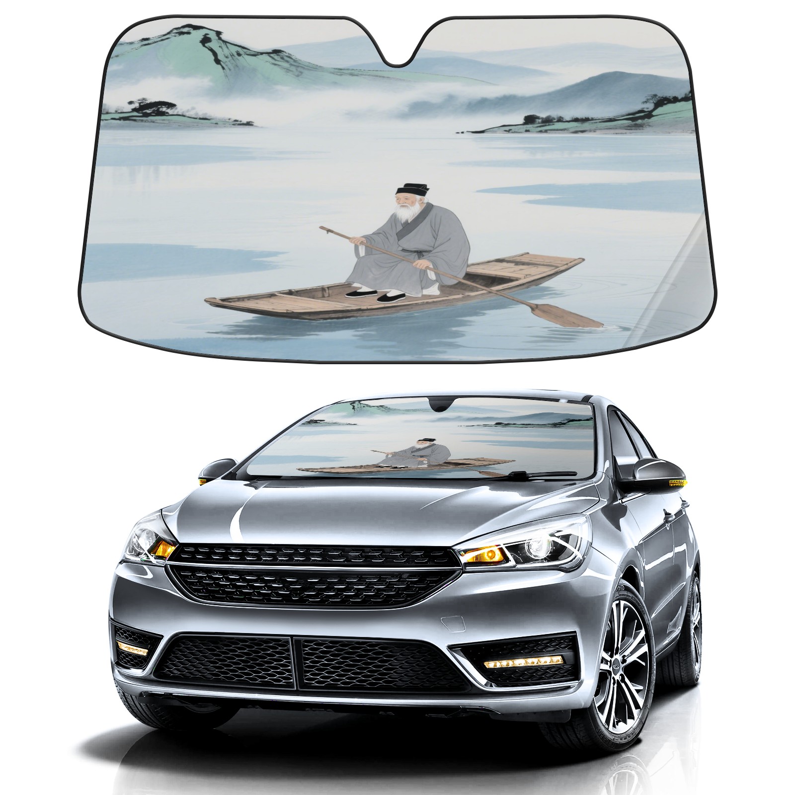 Foldable Aluminum Foil Polyester Car Sunshade Pad | 99% Heat Insulation & Sun Protection | Transparent Number Pocket | Lightweight & Portable | Fits Cars/SUVs/Trucks Old Man