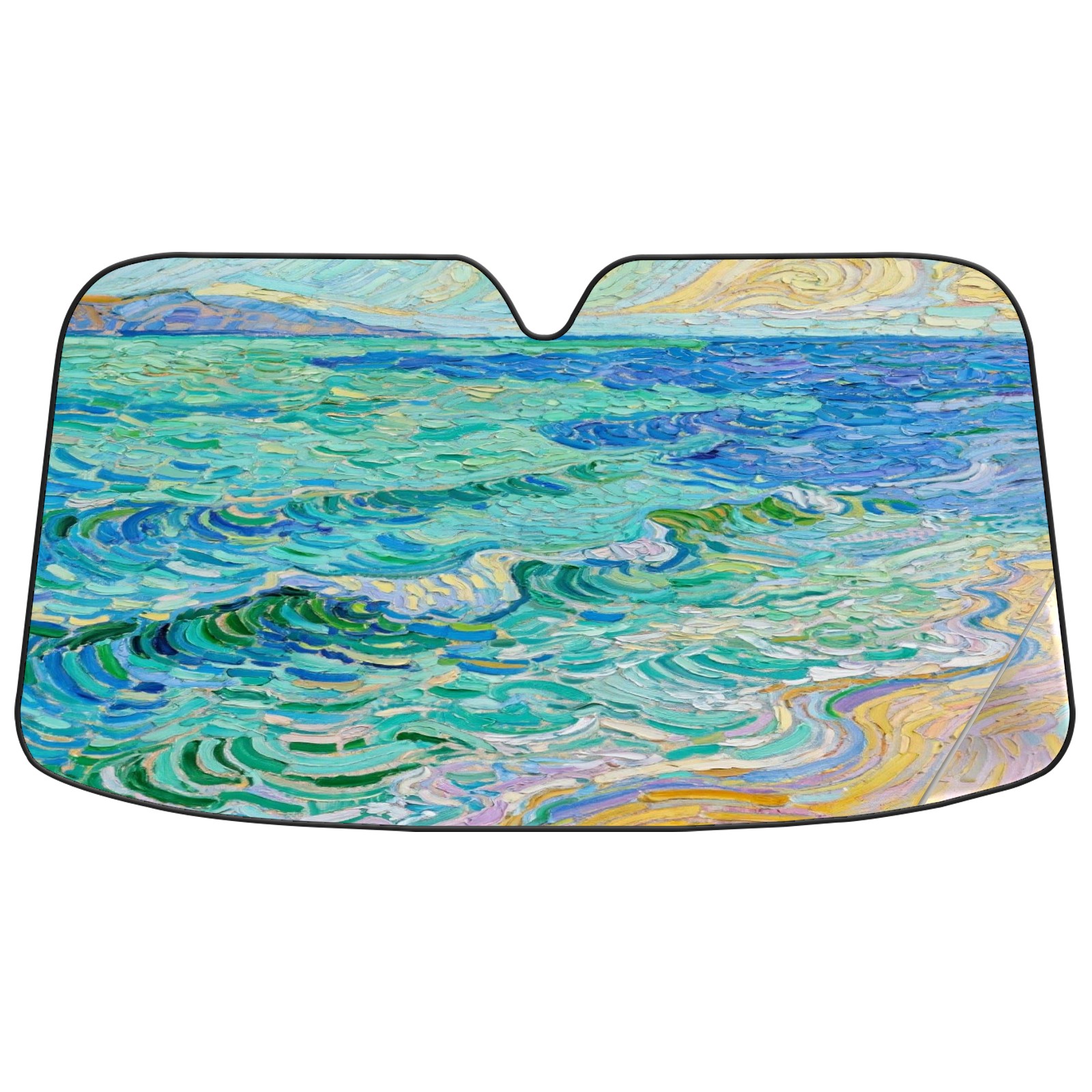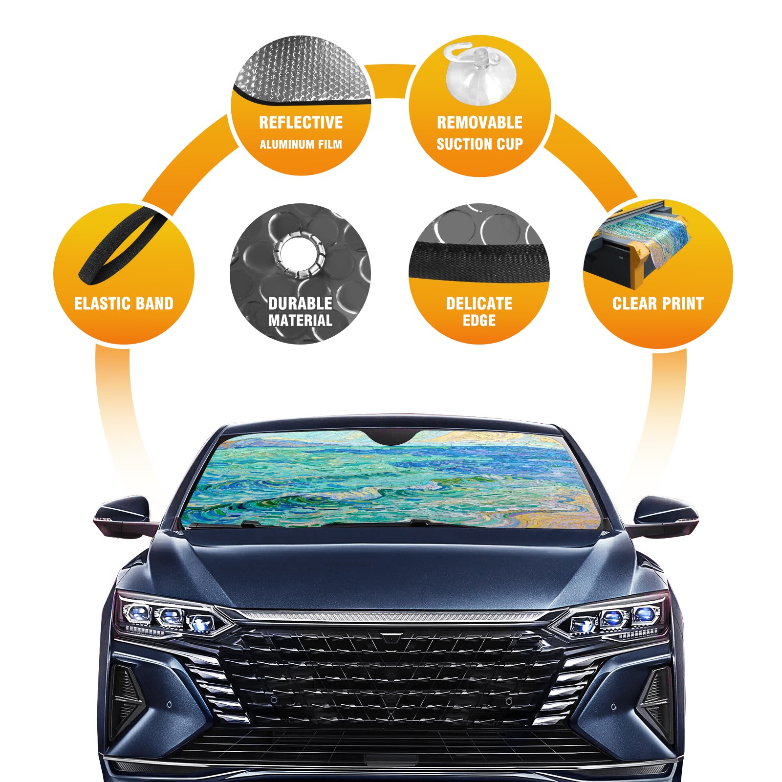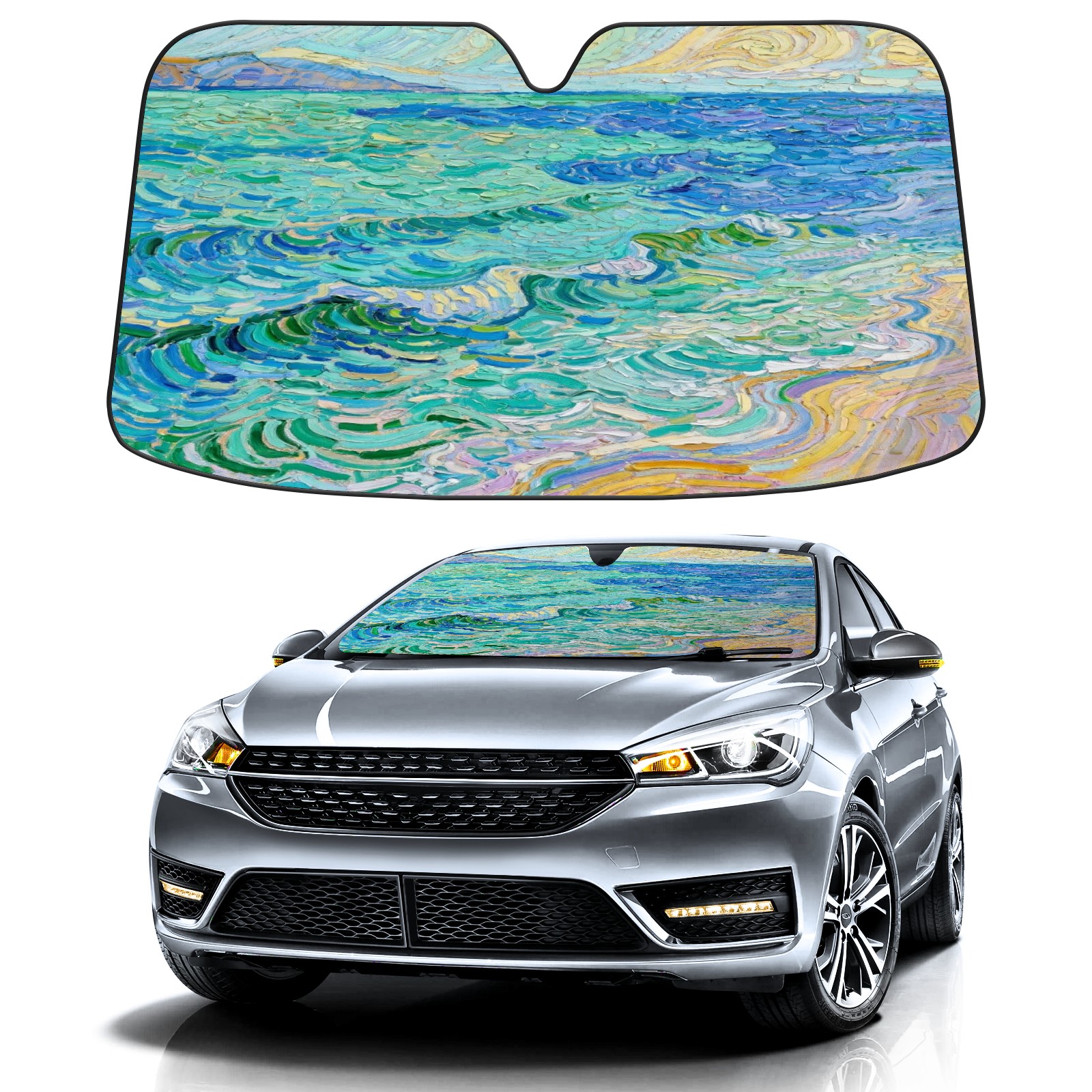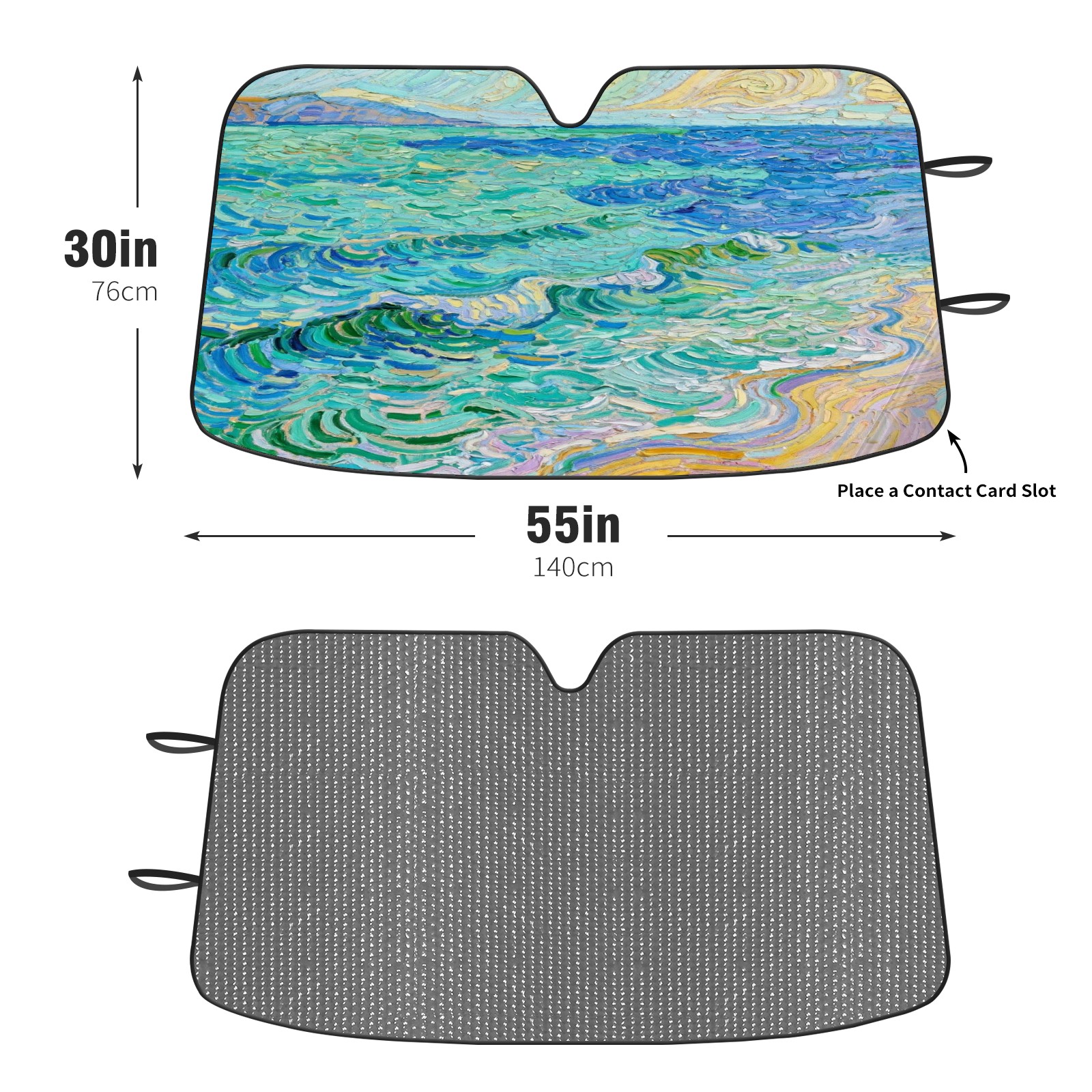 Foldable Aluminum Foil Polyester Car Sunshade Pad | 99% Heat Insulation & Sun Protection | Transparent Number Pocket | Lightweight & Portable | Fits Cars/SUVs/Trucks Sea