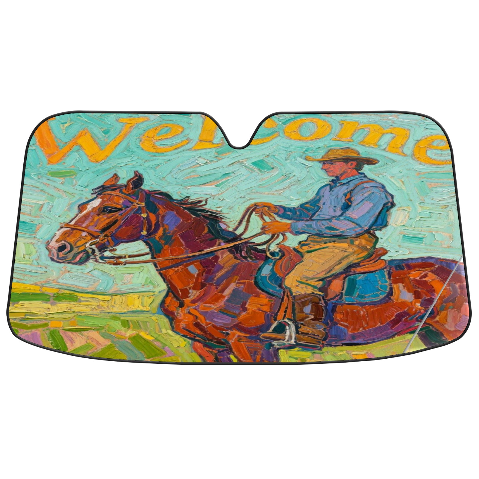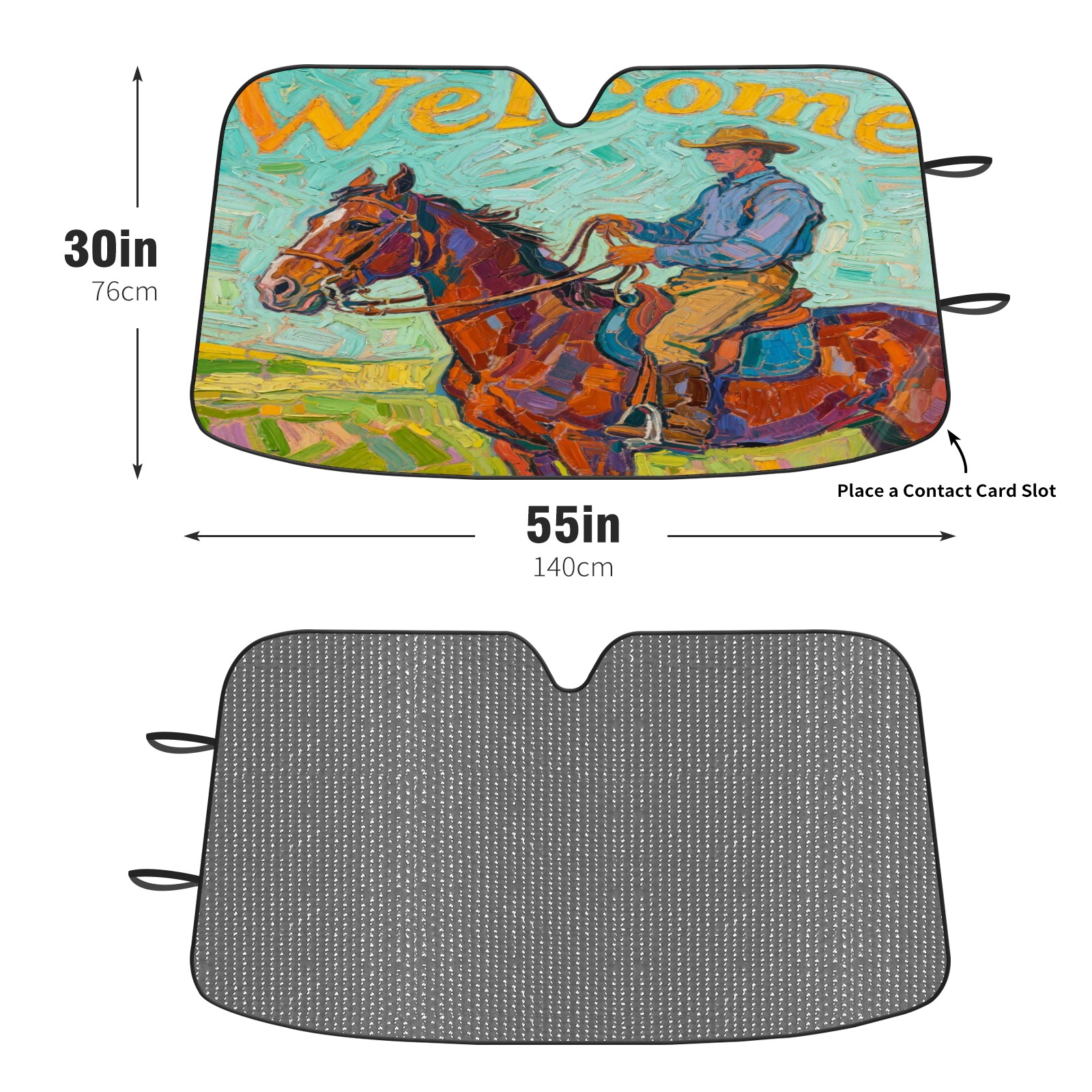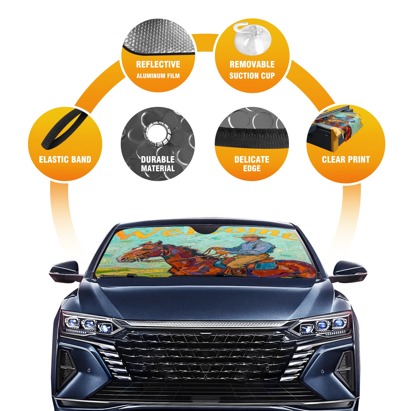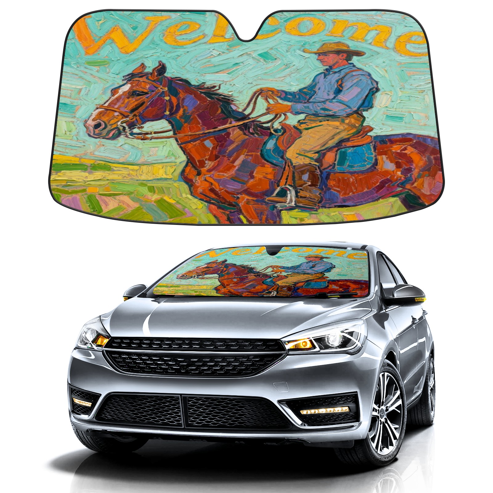 Foldable Aluminum Foil Polyester Car Sunshade Pad | 99% Heat Insulation & Sun Protection | Transparent Number Pocket | Lightweight & Portable | Fits Cars/SUVs/Trucks Horse