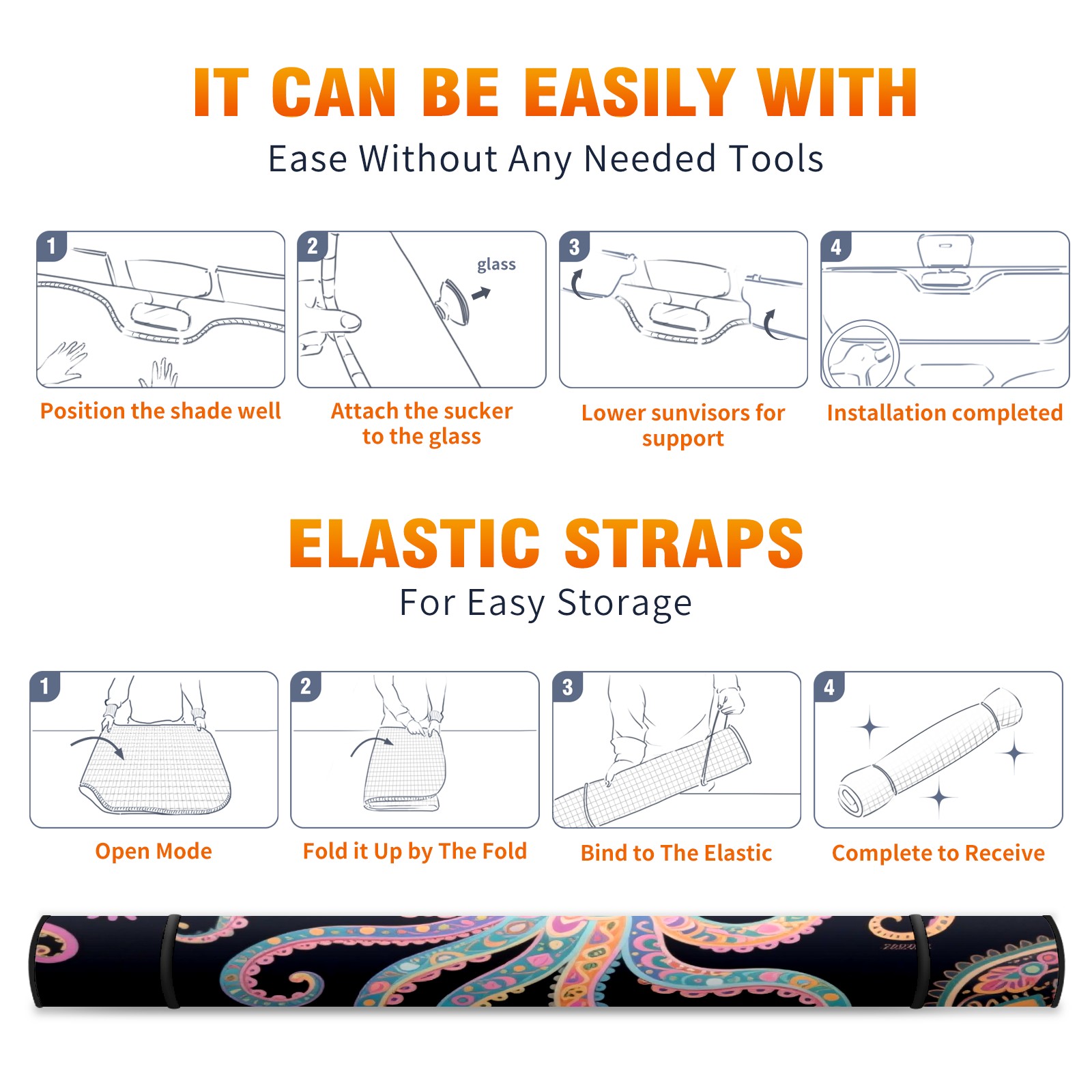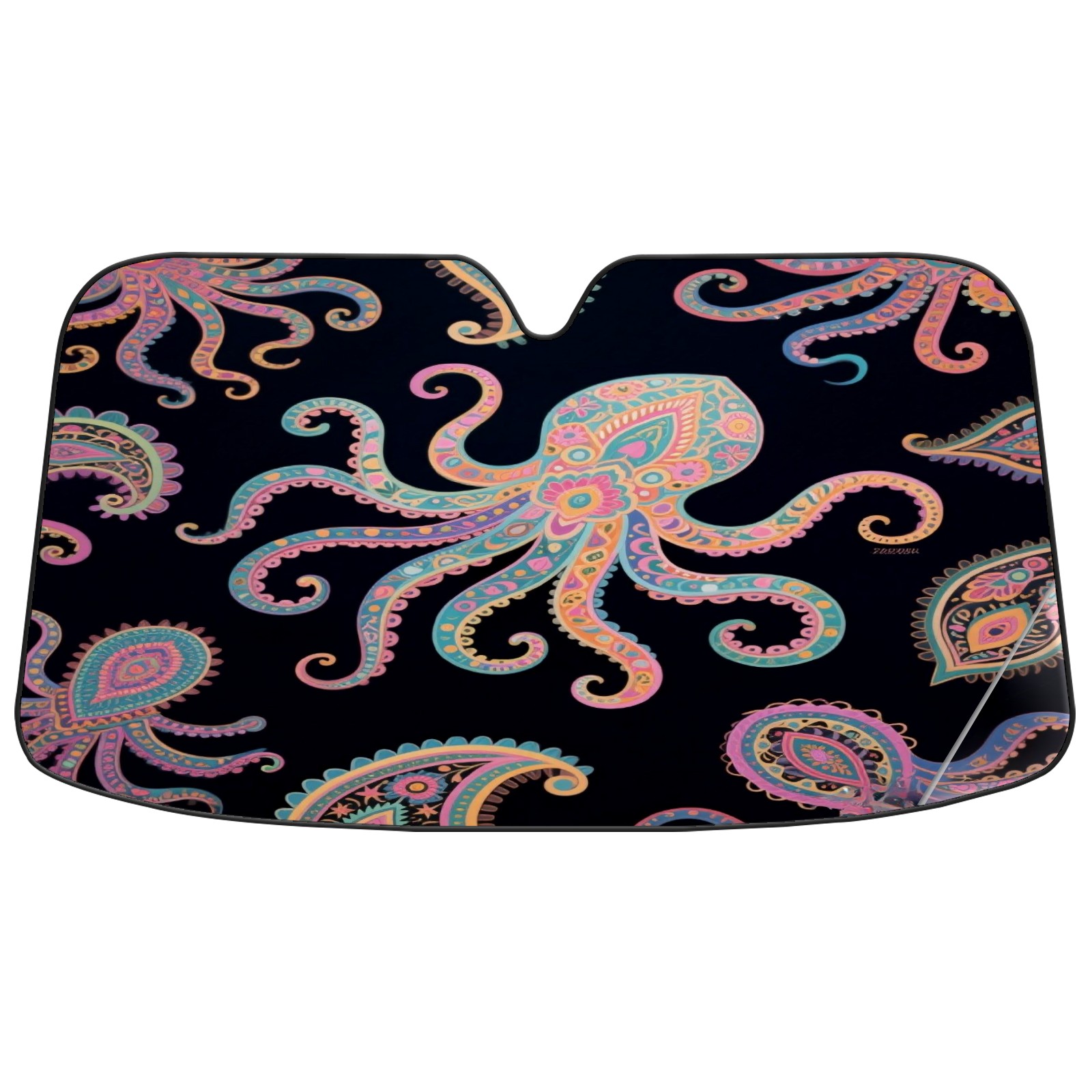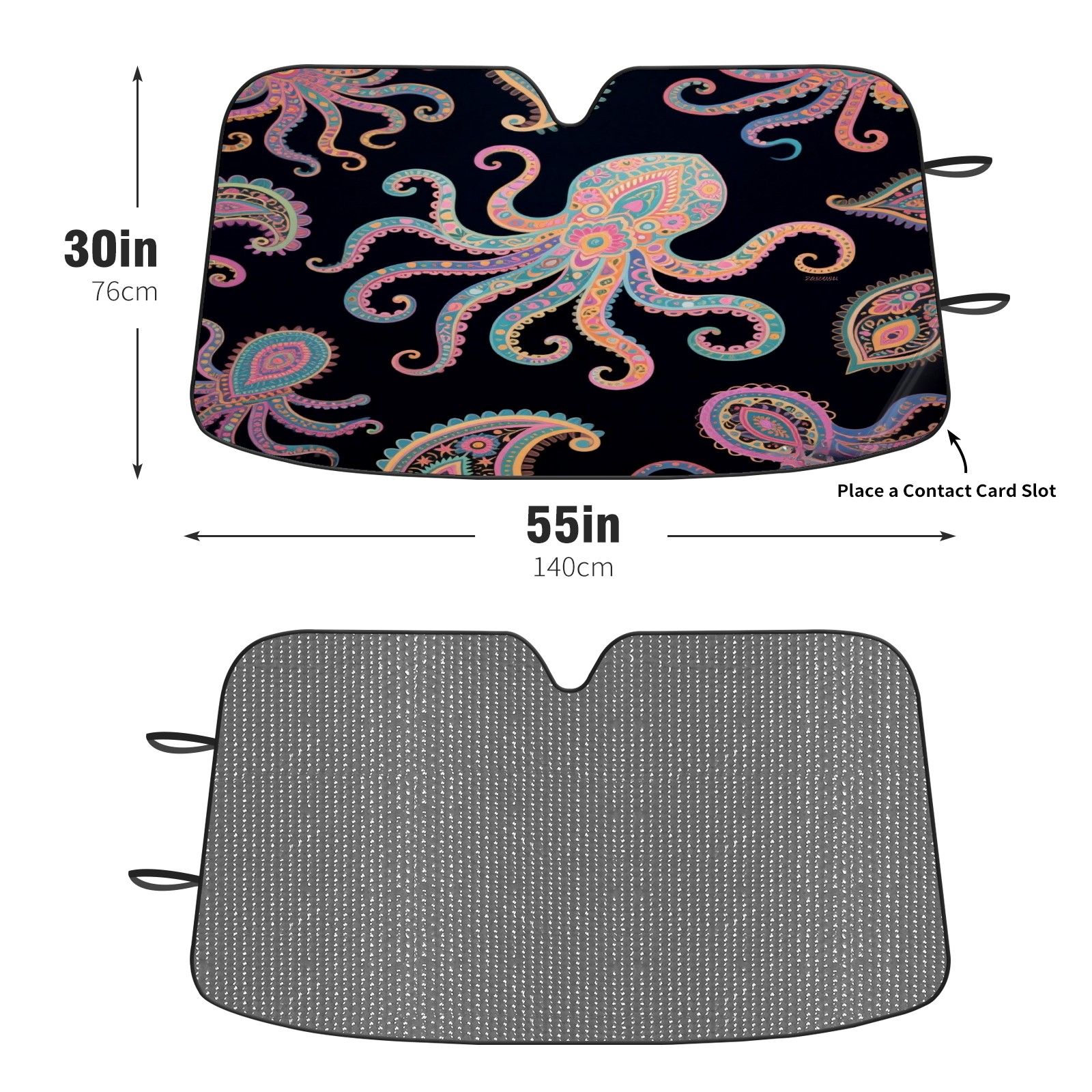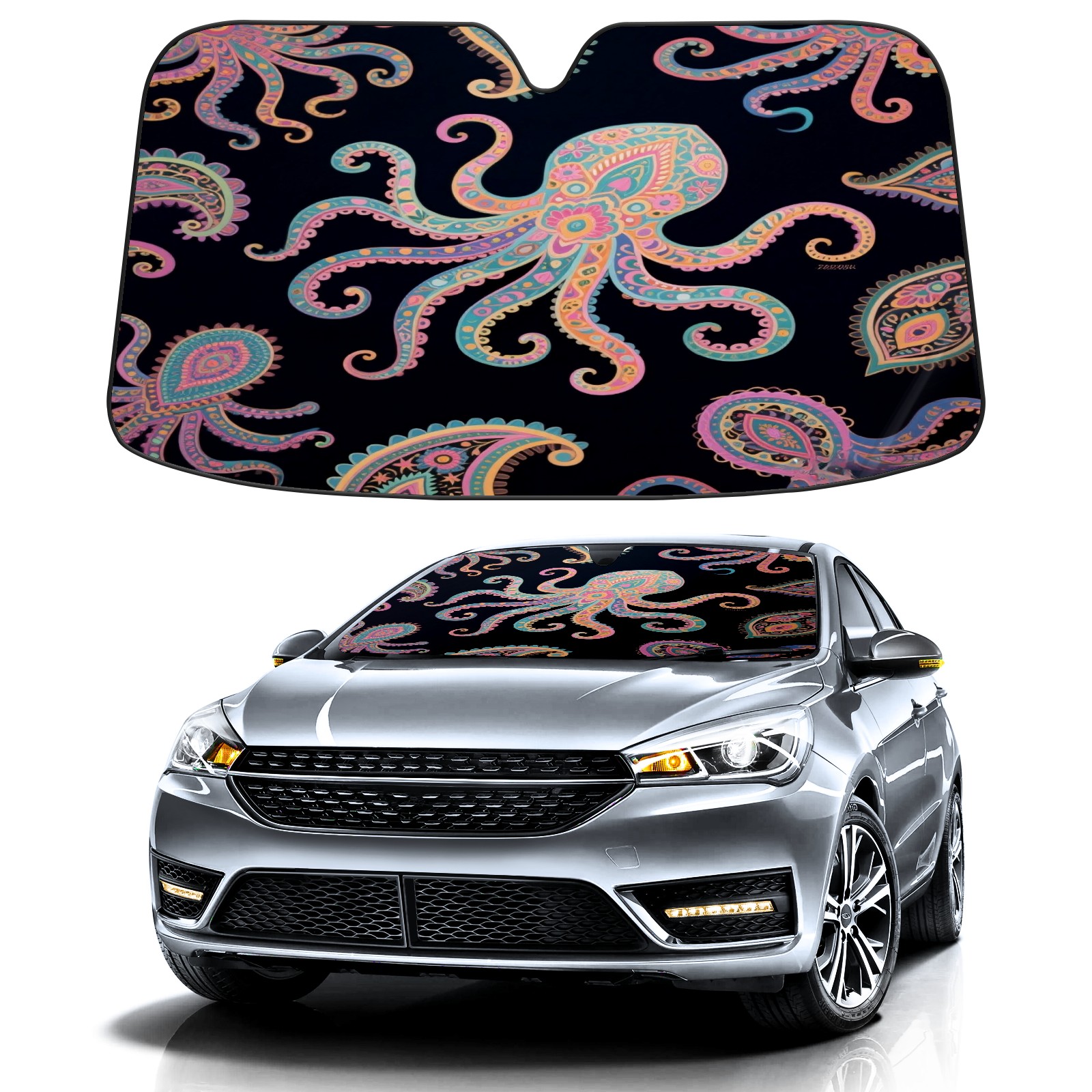Foldable Aluminum Foil Polyester Car Sunshade Pad | 99% Heat Insulation & Sun Protection | Transparent Number Pocket | Lightweight & Portable | Fits Cars/SUVs/Trucks Octopus