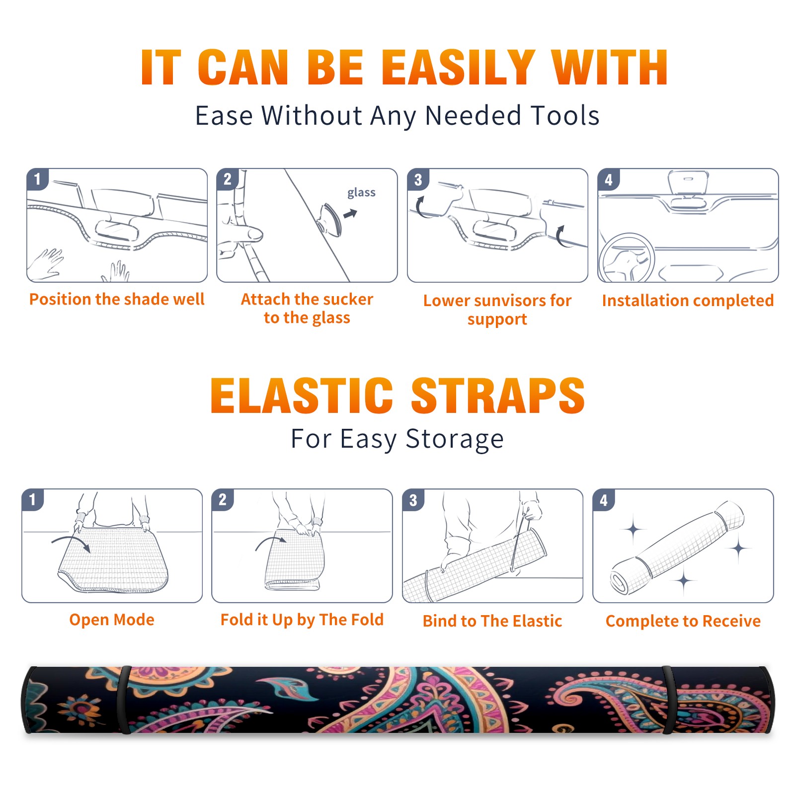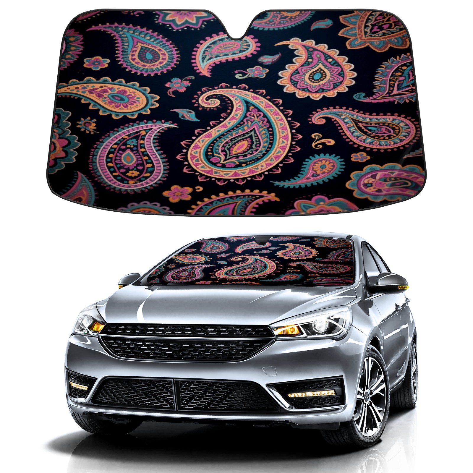Foldable Aluminum Foil Polyester Car Sunshade Pad | 99% Heat Insulation & Sun Protection | Transparent Number Pocket | Lightweight & Portable | Fits Cars/SUVs/Trucks Decorative Design