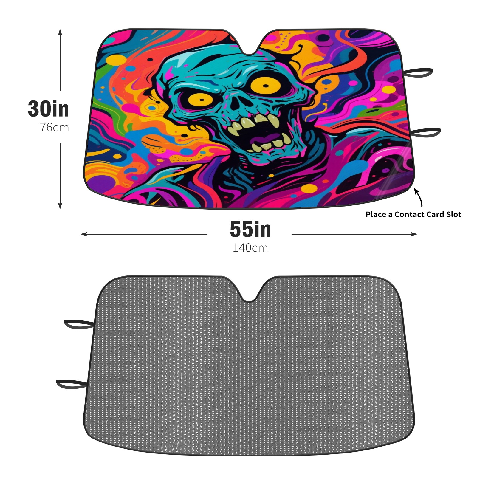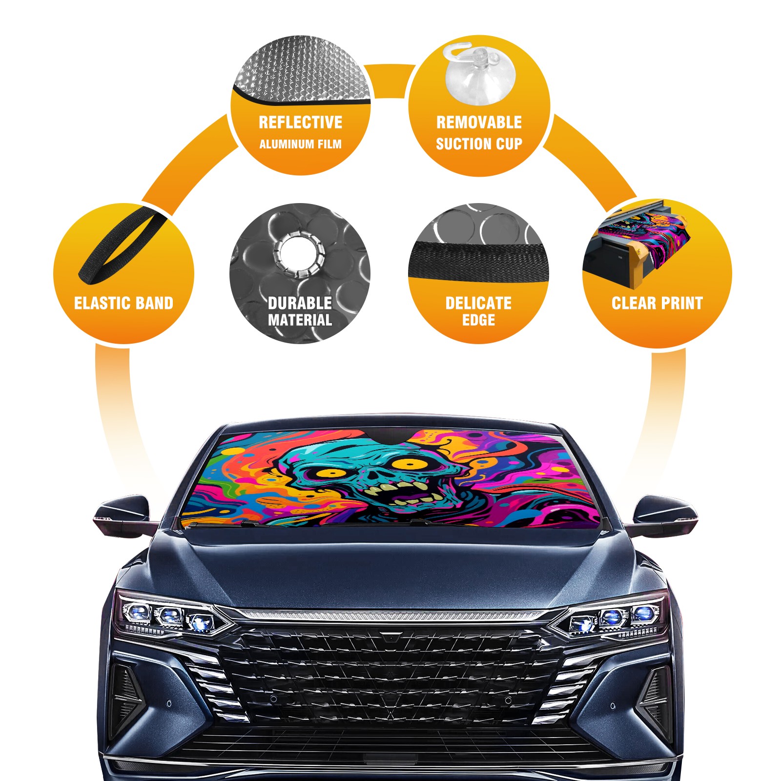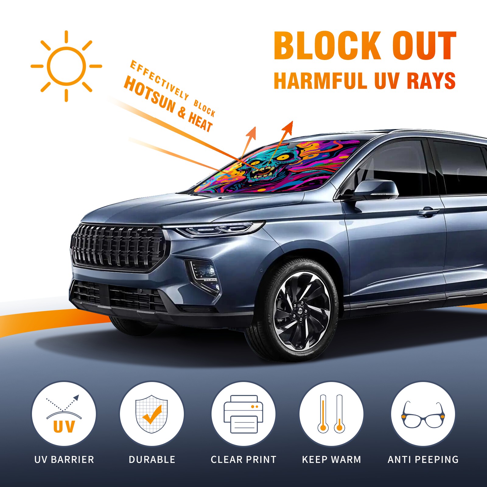 Foldable Aluminum Foil Polyester Car Sunshade Pad | 99% Heat Insulation & Sun Protection | Transparent Number Pocket | Lightweight & Portable | Fits Cars/SUVs/Trucks Devil