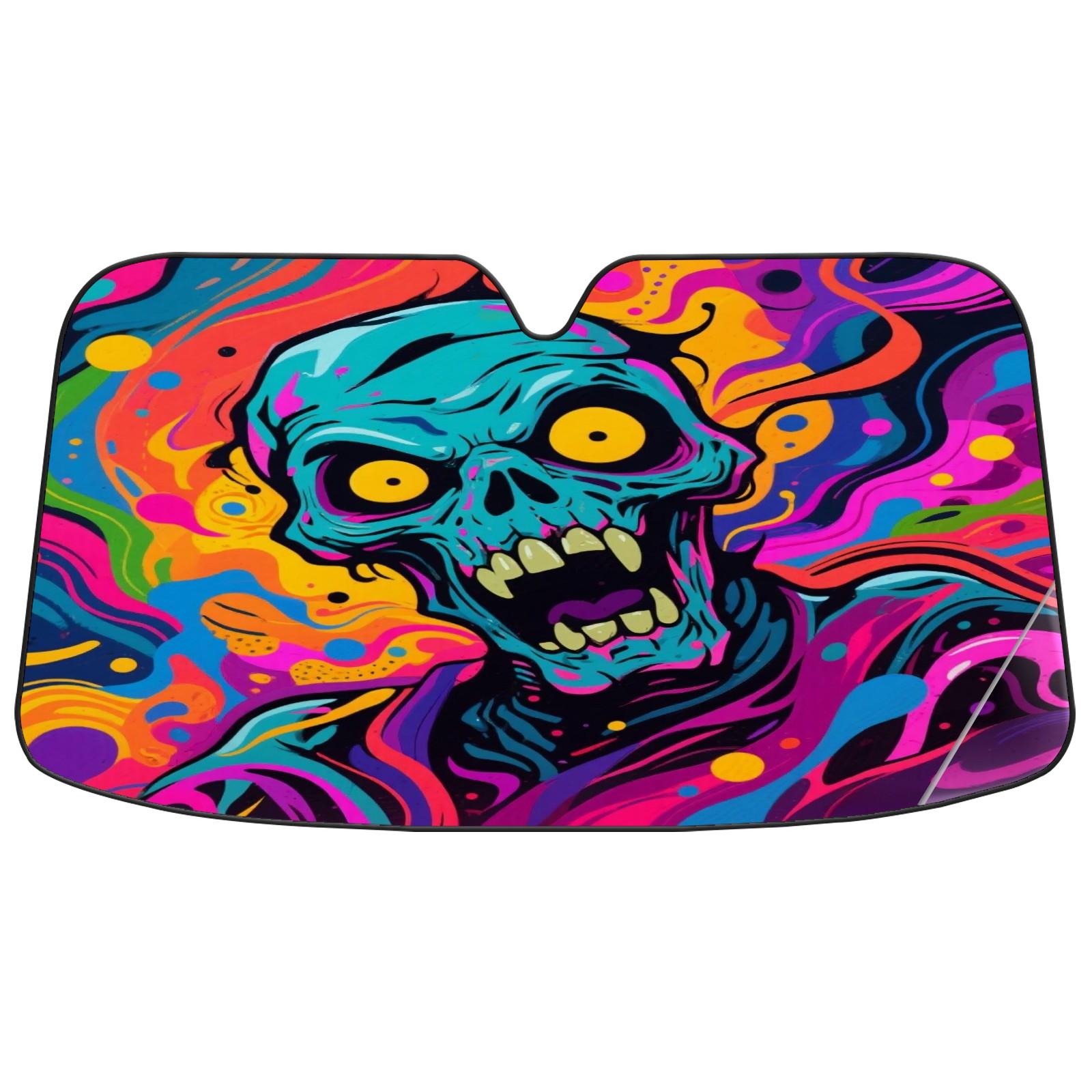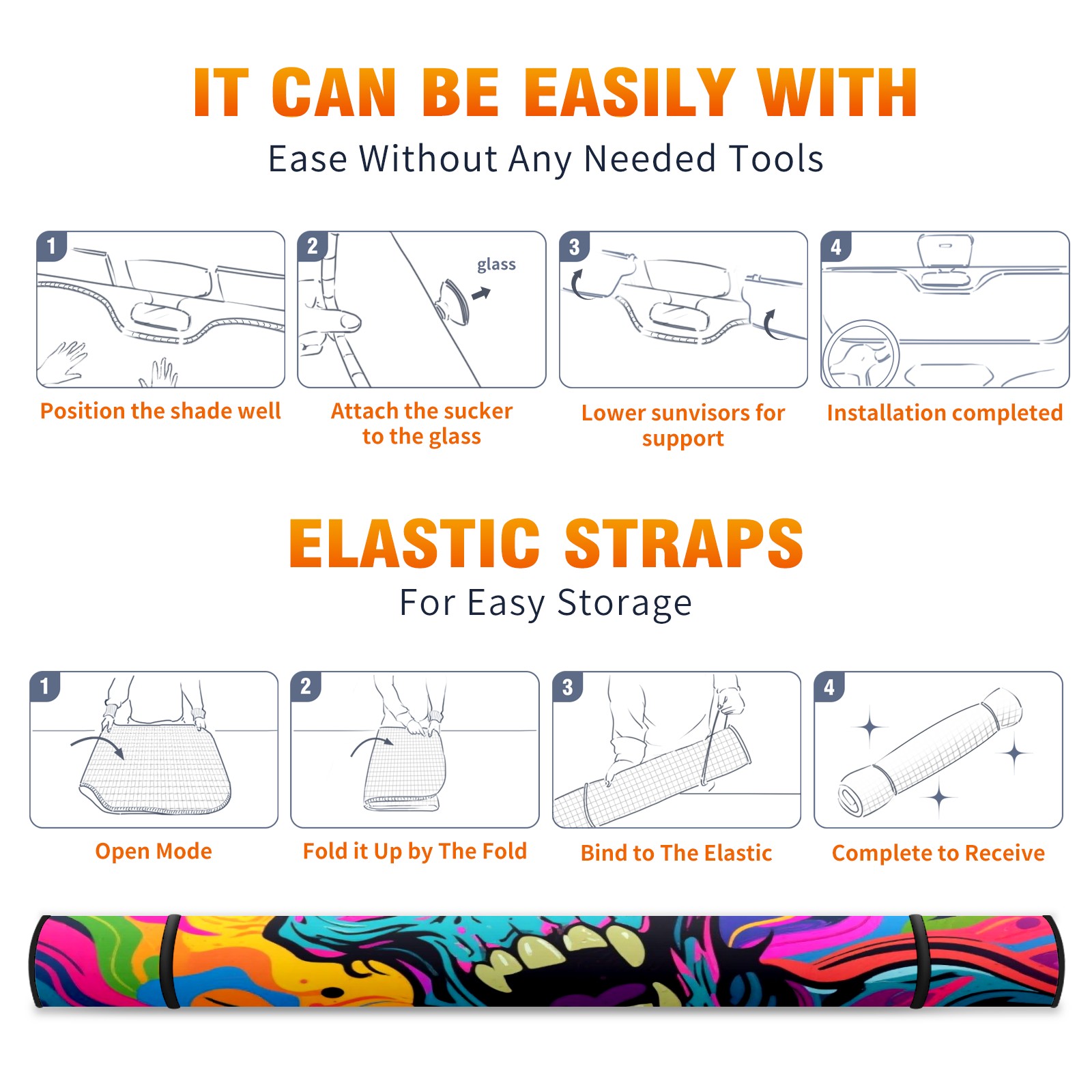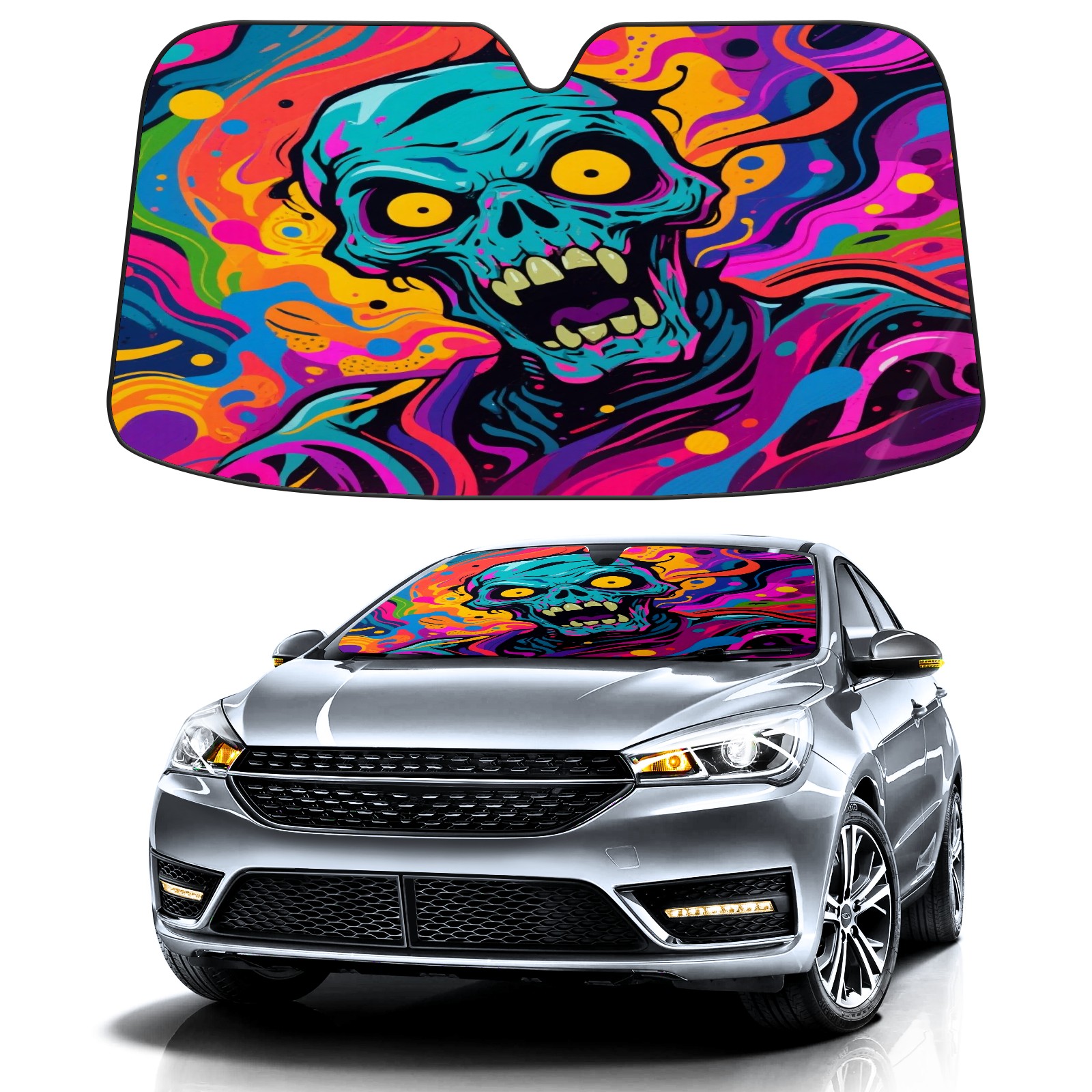 Foldable Aluminum Foil Polyester Car Sunshade Pad | 99% Heat Insulation & Sun Protection | Transparent Number Pocket | Lightweight & Portable | Fits Cars/SUVs/Trucks Devil