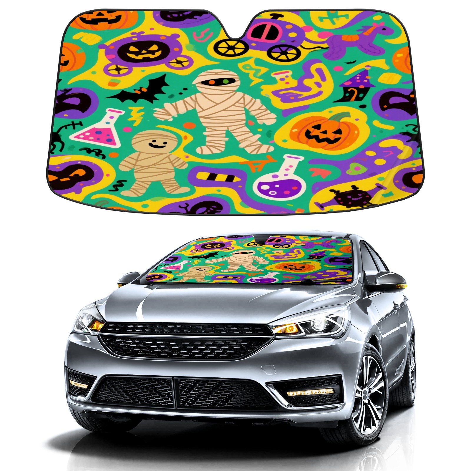 Foldable Aluminum Foil Polyester Car Sunshade Pad | 99% Heat Insulation & Sun Protection | Transparent Number Pocket | Lightweight & Portable | Fits Cars/SUVs/Trucks 13392791061300290