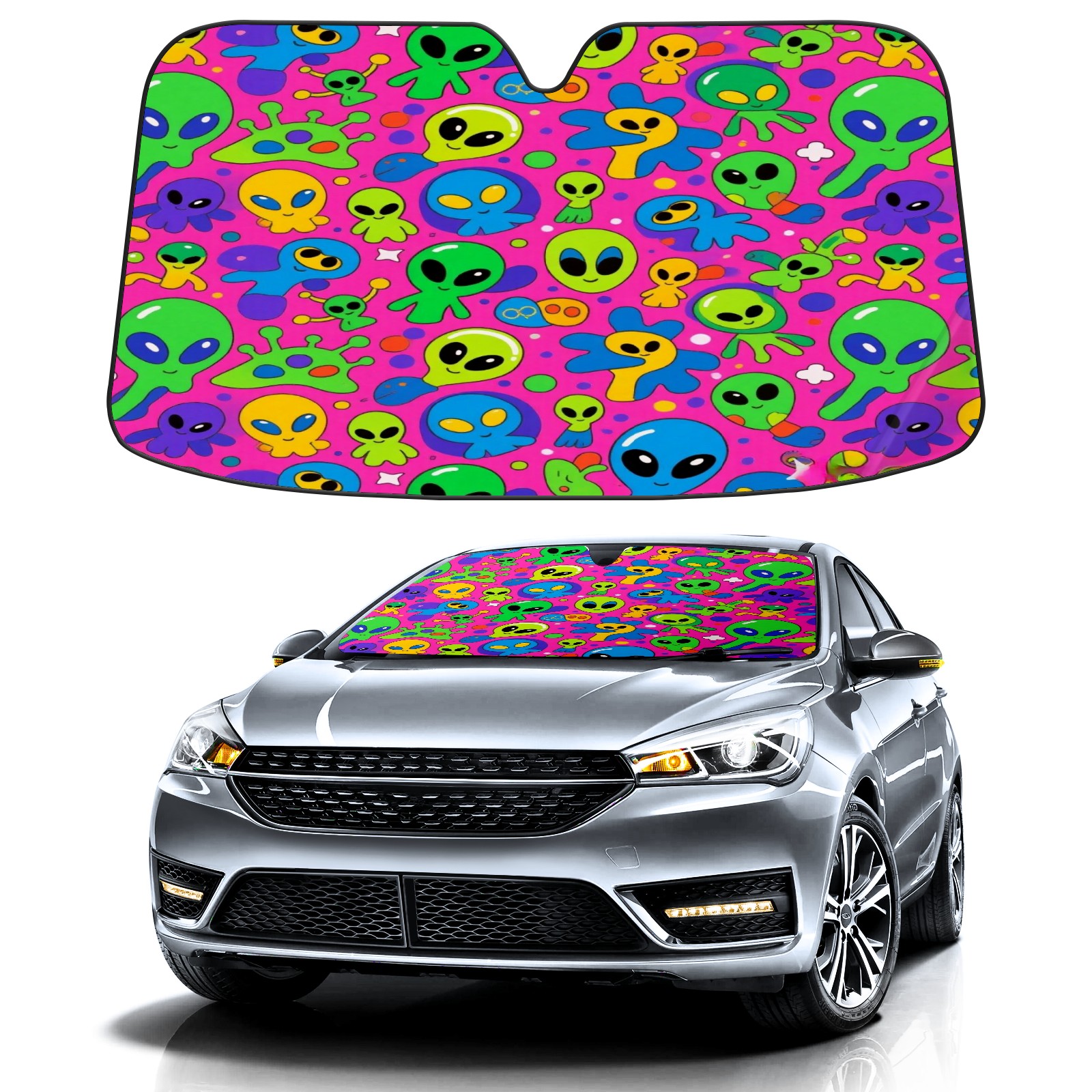Foldable Aluminum Foil Polyester Car Sunshade Pad | 99% Heat Insulation & Sun Protection | Transparent Number Pocket | Lightweight & Portable | Fits Cars/SUVs/Trucks 13392790900713194