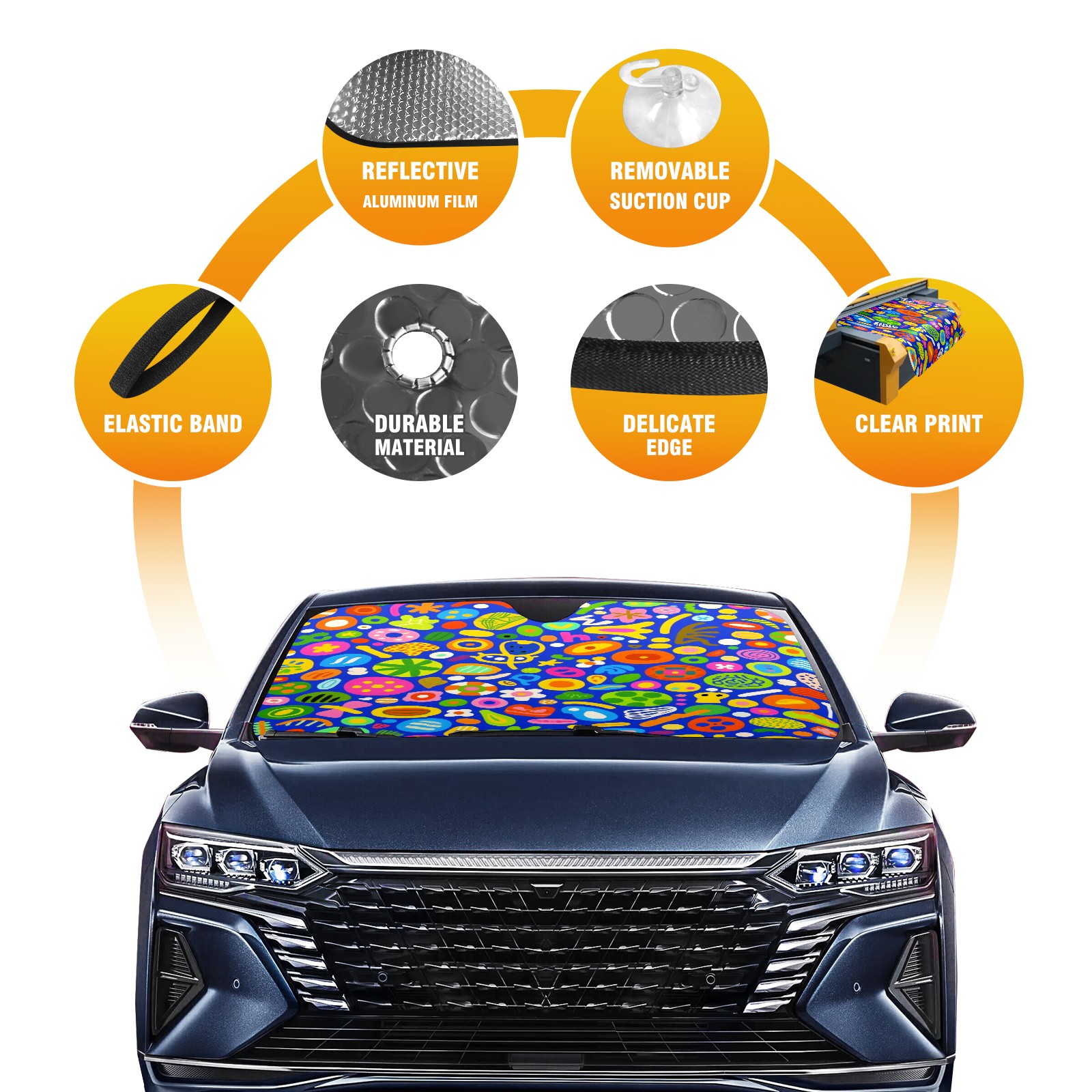 • <p>This sunshade pad is made of aluminum foil and polyester material, paired with high-quality aluminum foil bubbles, which can efficiently block ultraviolet rays, provide strong insulation and cooling, easily reduce the temperature inside the car, and save fuel when turning on the air conditioning, keeping the car cool at all times. Processed with transparent adhesive technology, the material is sturdy and durable, capable of long-term protection of the car dashboard, steering wheel, and seats, and is not afraid of sunlight erosion. The transparent pocket in the bottom right corner of the front is convenient for placing contact phone cards, and temporary parking with a number is no longer a hassle. Foldable design combined with compact size, lightweight and portable, does not take up interior space after storage, making it easy to carry for daily commuting or outdoor travel. There is no need to worry about cleaning, it is recommended to wash by hand. Regular cleaning can keep the sunshade pad clean as new and provide long-lasting protection.</p>
