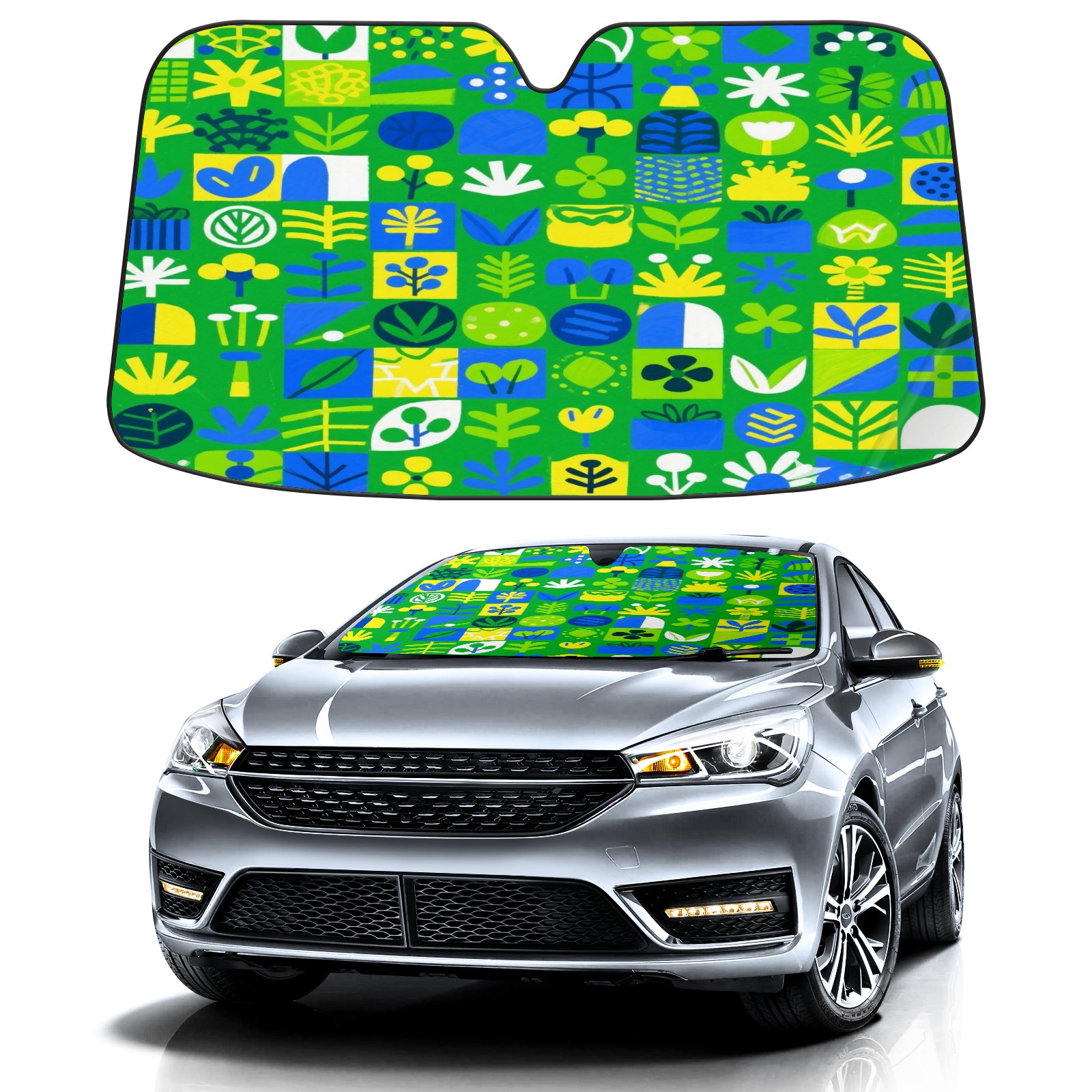 Foldable Aluminum Foil Polyester Car Sunshade Pad | 99% Heat Insulation & Sun Protection | Transparent Number Pocket | Lightweight & Portable | Fits Cars/SUVs/Trucks 13392790674121160