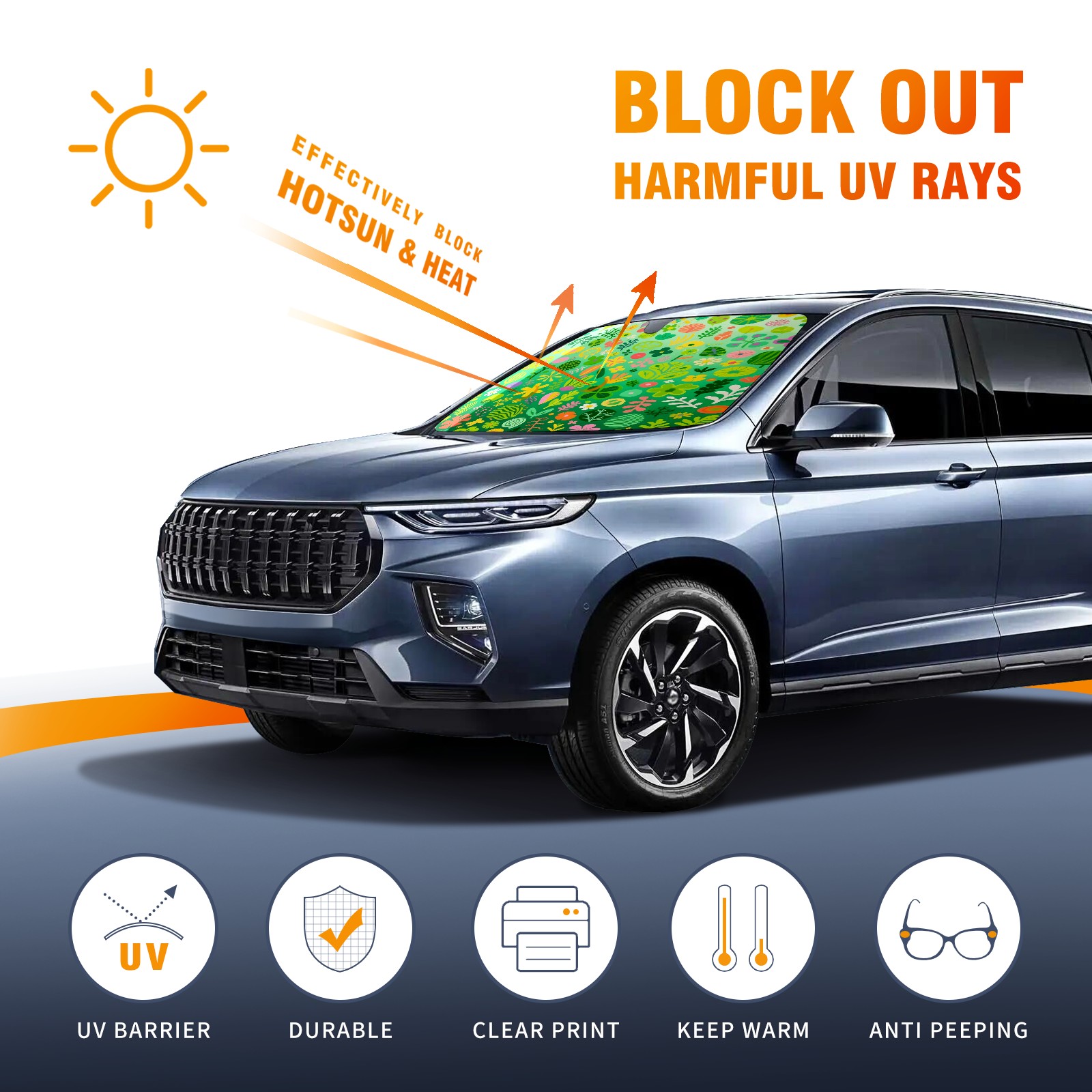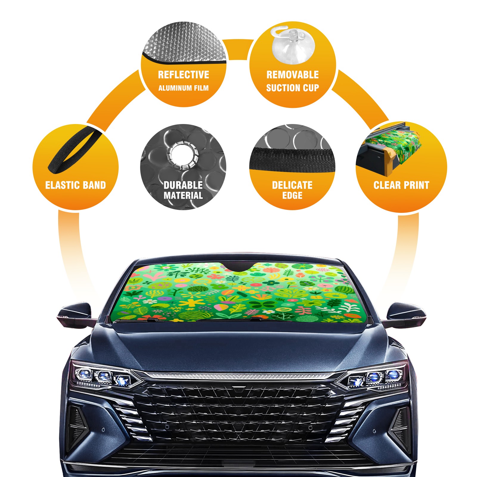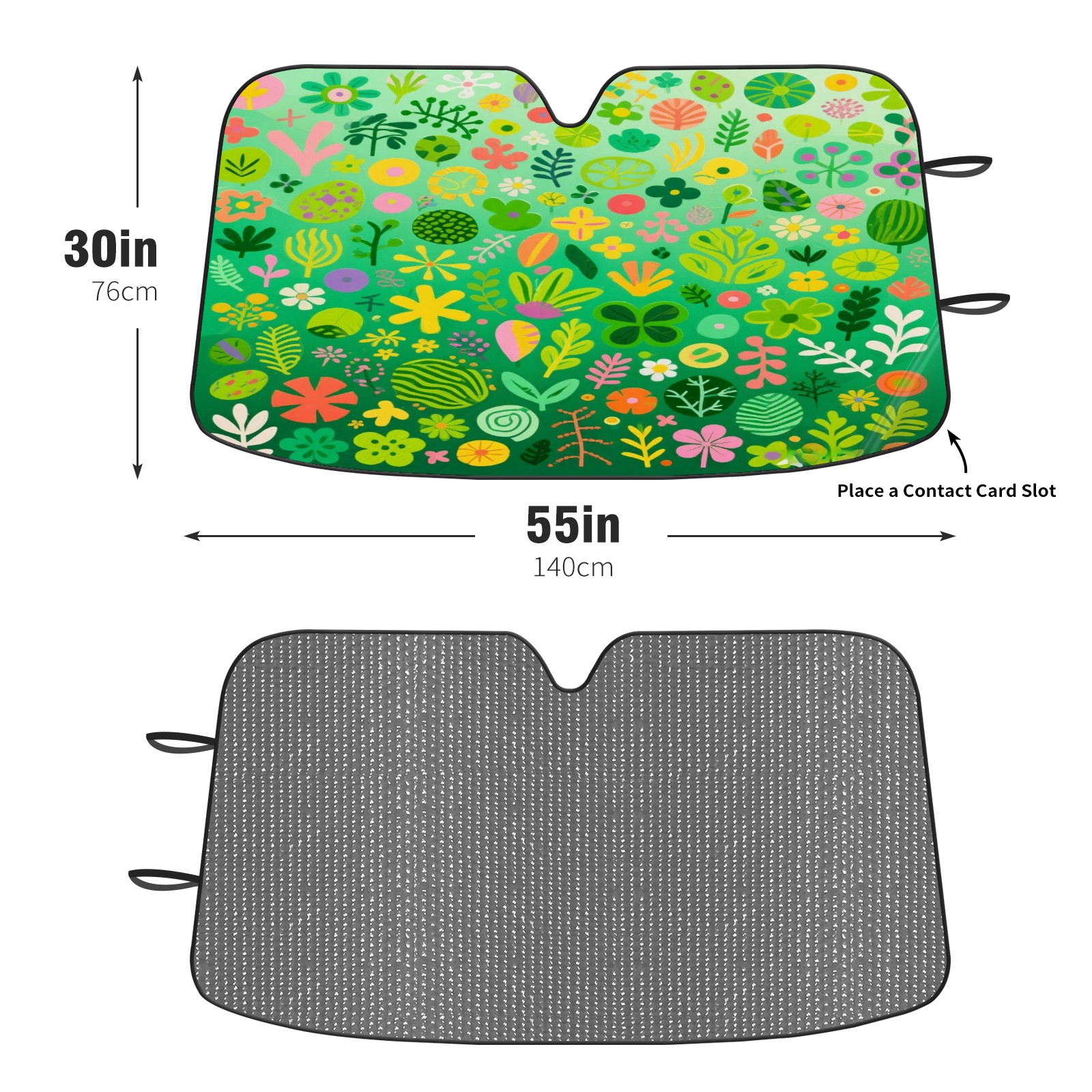 Foldable Aluminum Foil Polyester Car Sunshade Pad | 99% Heat Insulation & Sun Protection | Transparent Number Pocket | Lightweight & Portable | Fits Cars/SUVs/Trucks 13392790444670038